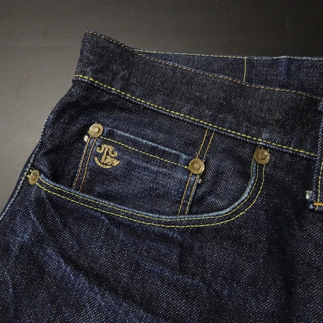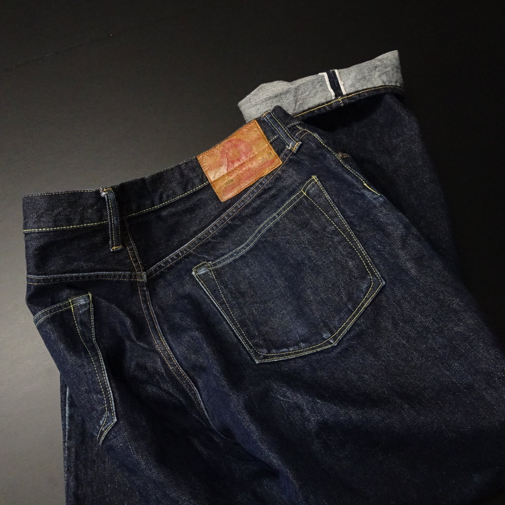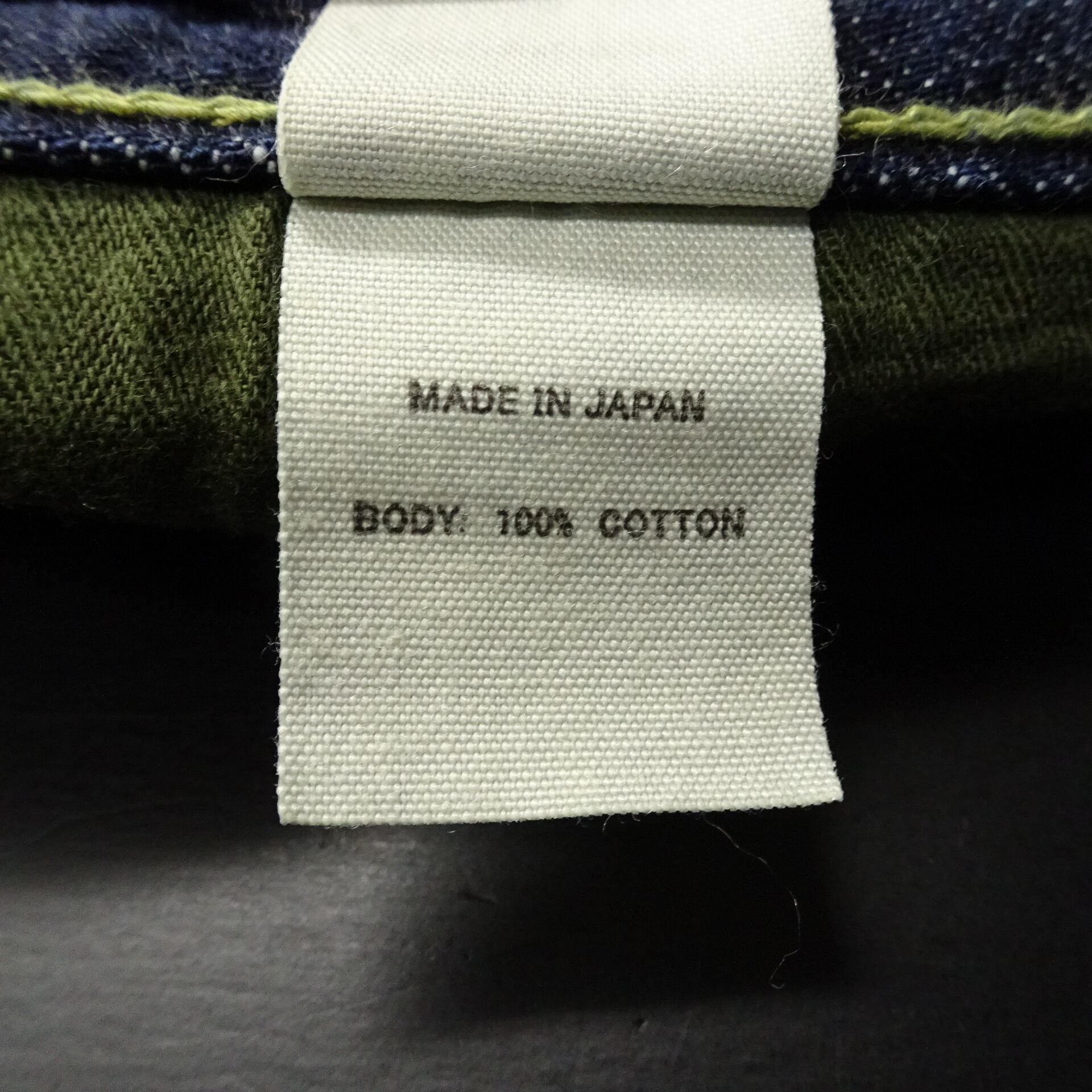 赤耳・Vステッチ・月桂樹ボタンなどスペックにも拘りのある一本。