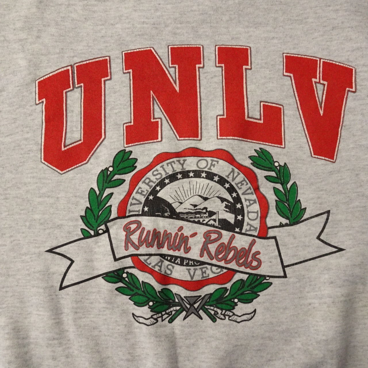 アメリカ製で、ネバダ大学ラスベガス校(UNLV)のランニング レベルズのプリントが入ったデザイン。