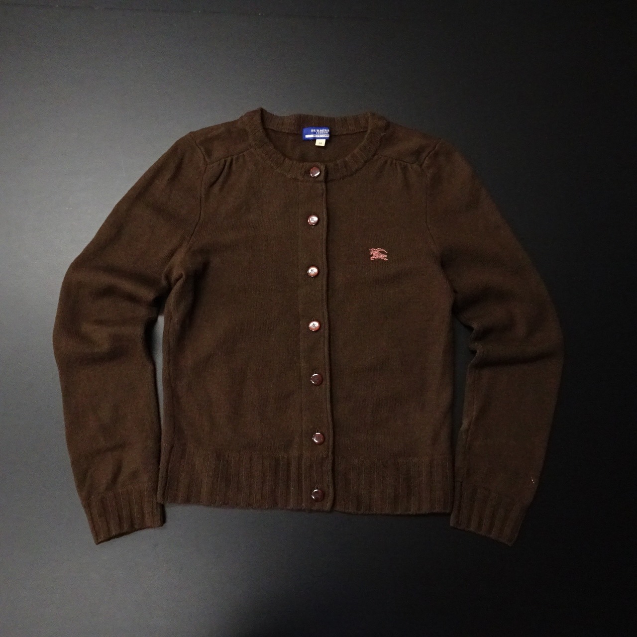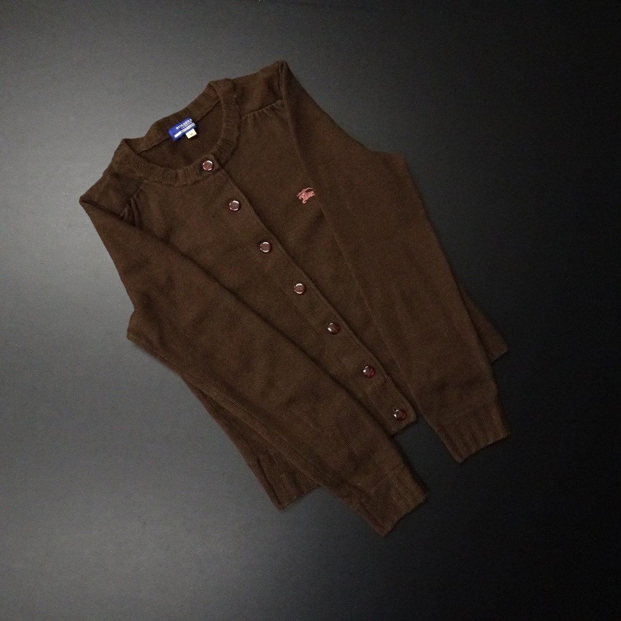 90s- BURBERRY バーバリー 長袖カーディガン ブルーレーベル 三陽商会 ロゴ刺繡 90年代~ ブラウン