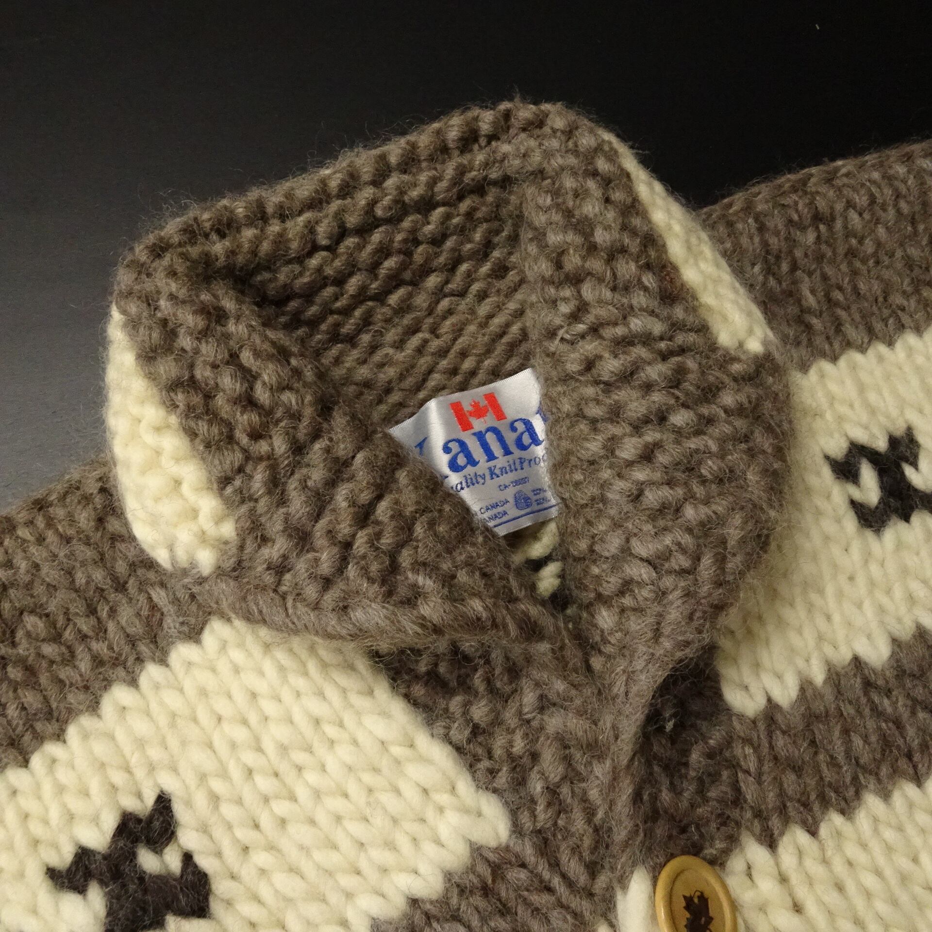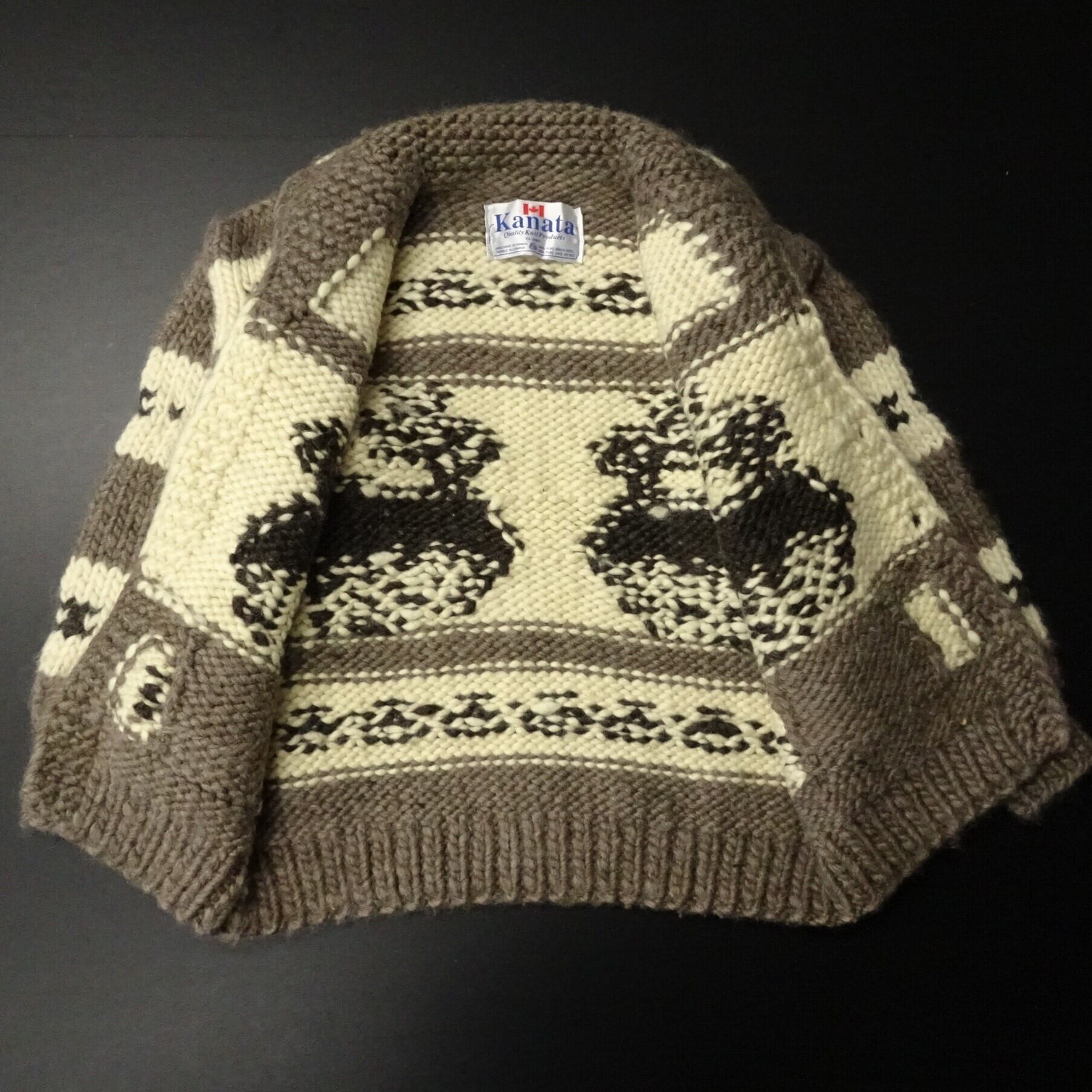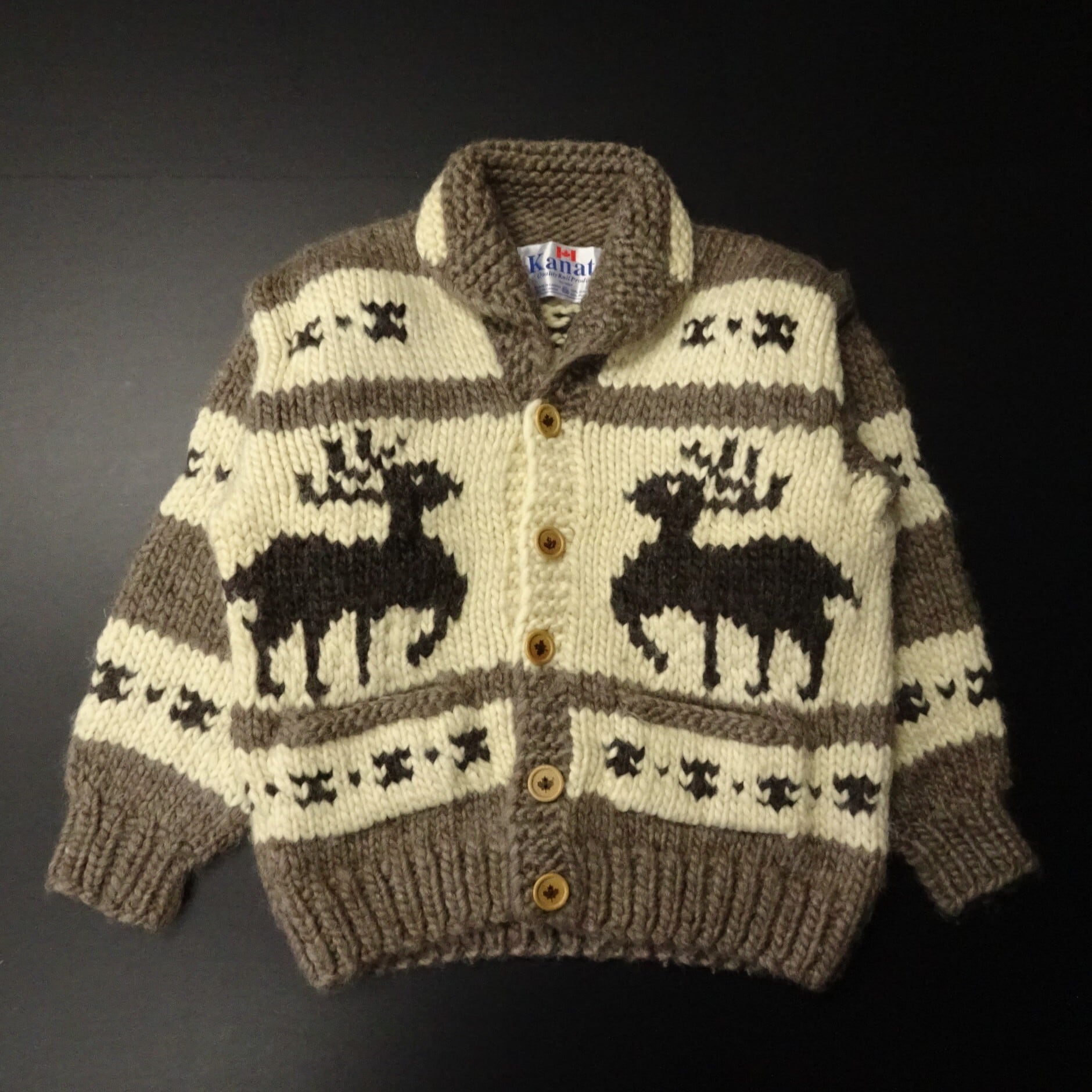 90s- カナダ製 Kabata カナタ カウチンセータージャケット トナカイ メープルリーフボタン 90年代~ ブラウン系