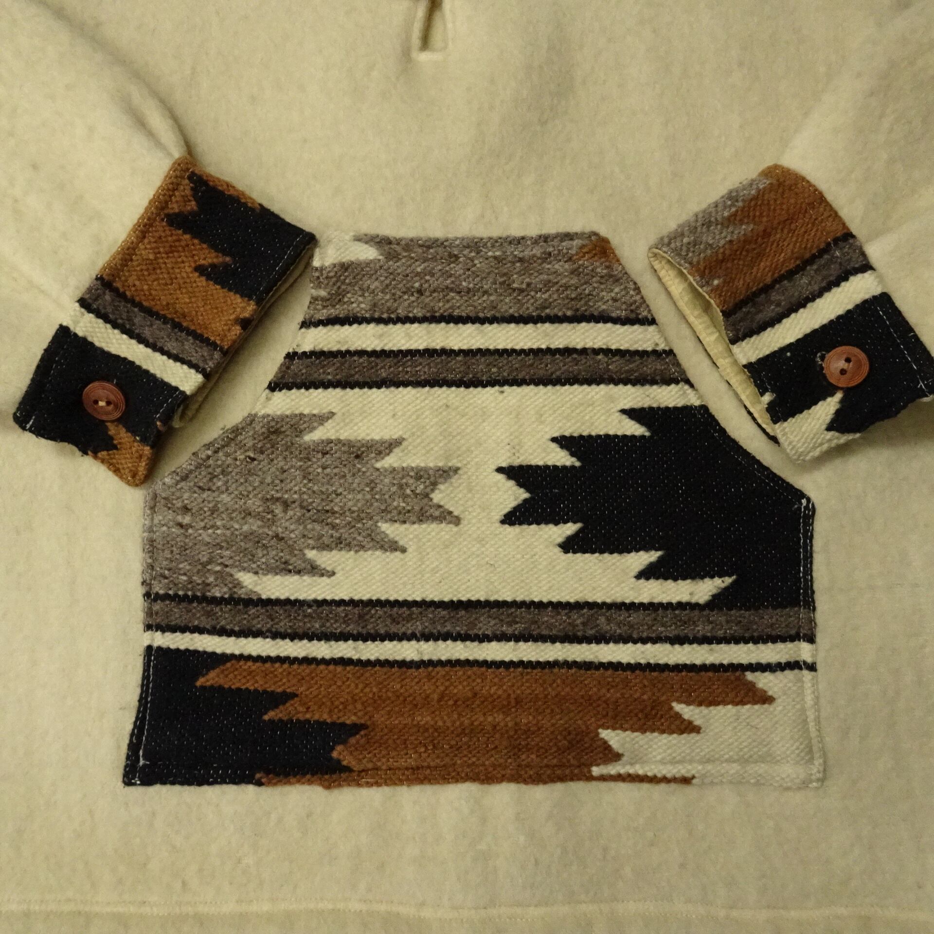 90s エクアドル製 ARTEsanias ブランケットプルオーバー チマヨ ネイティブ柄 ハンドメイド 90年代 アイボリー系