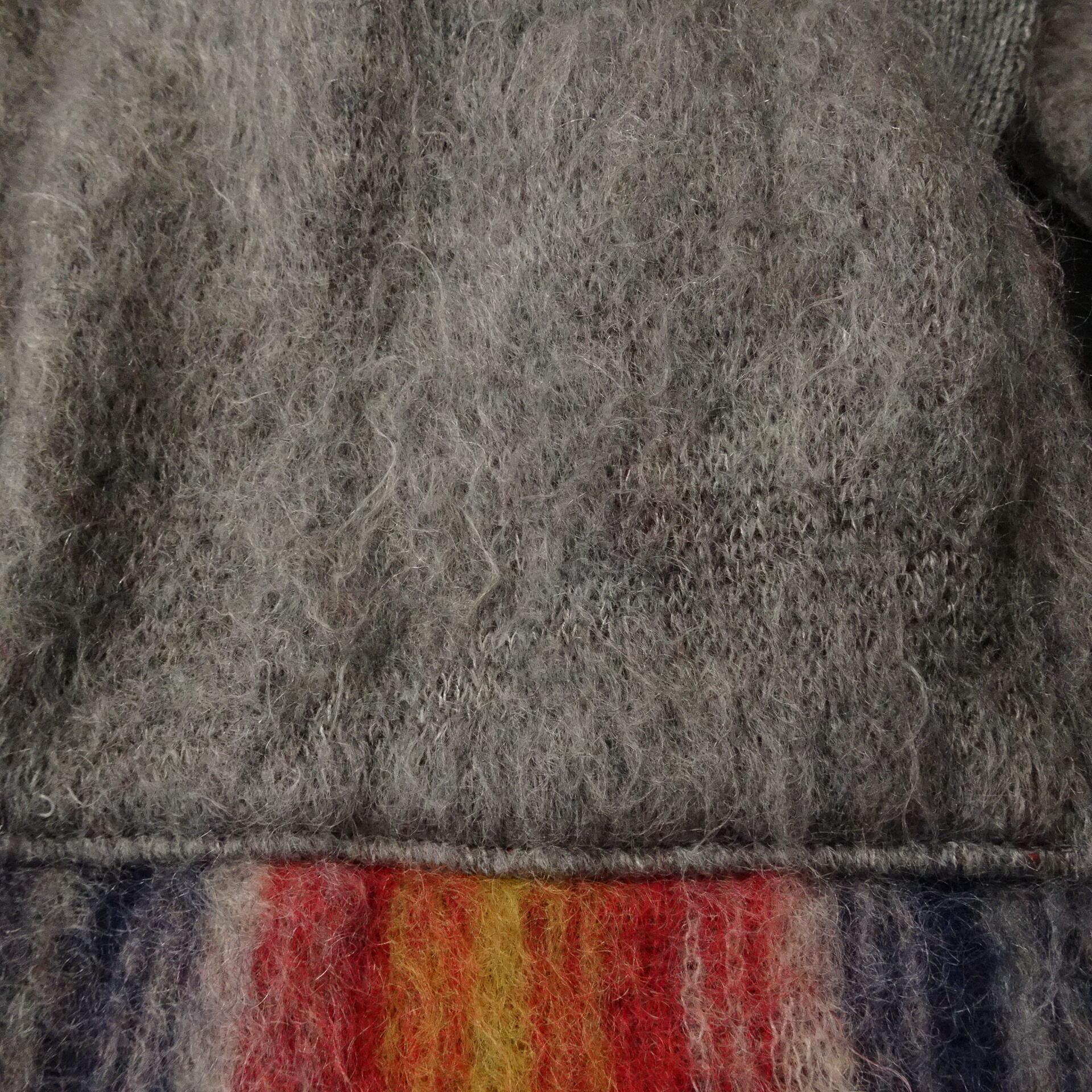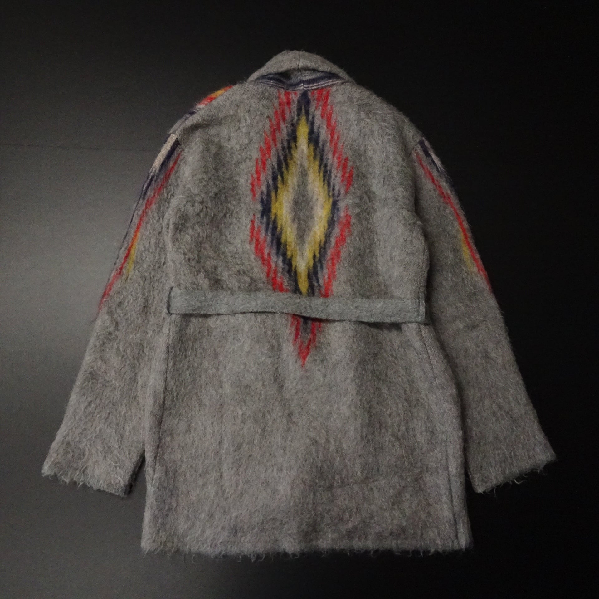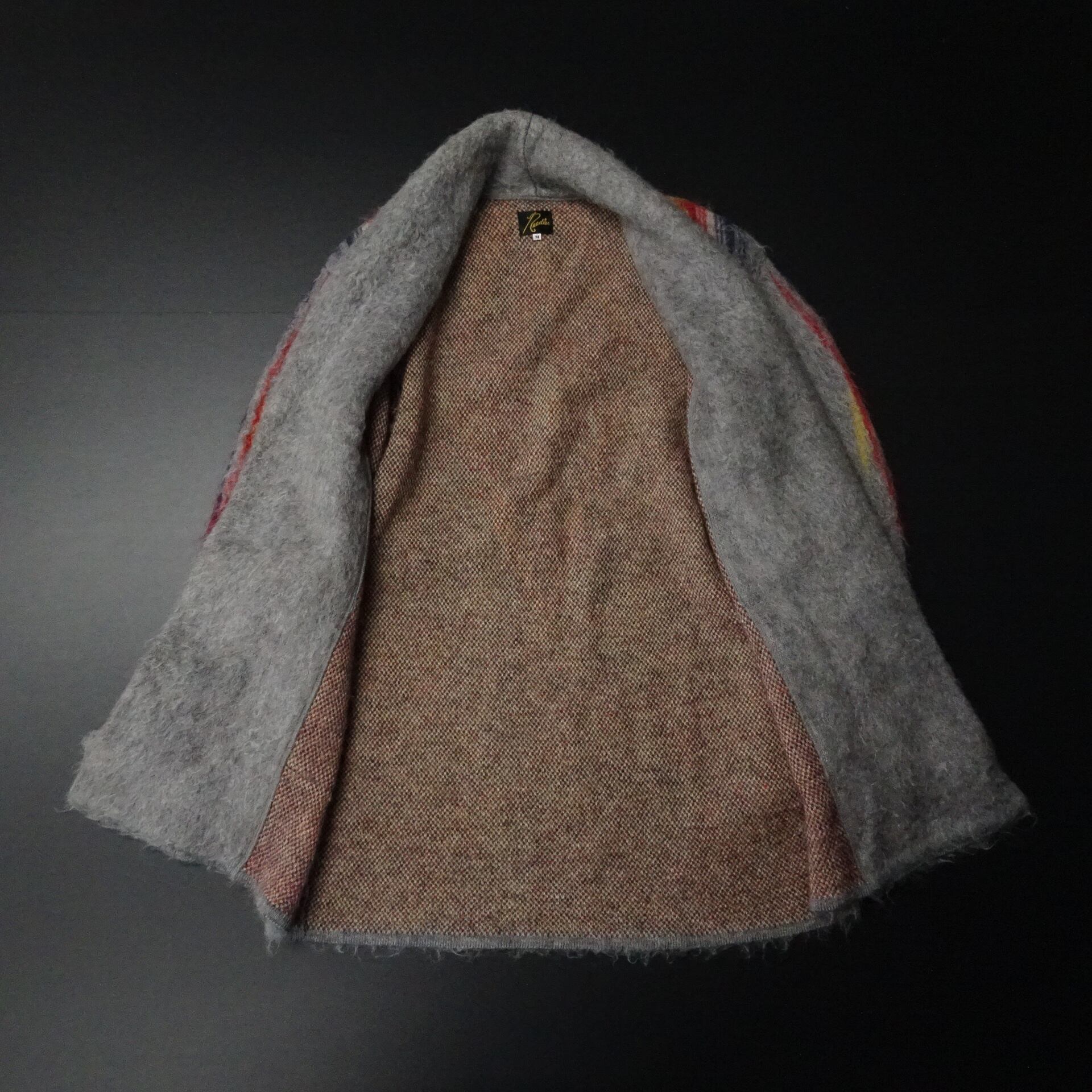 00s- 日本製 Needles ニードルス モヘア ショールカラーカーディガン チマヨ柄 ガウン 00年代~ グレー