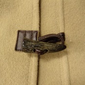 人気のオールドアイテムで、水牛の角を使用したトグルボタン、裏地はノバチェックデザイン。