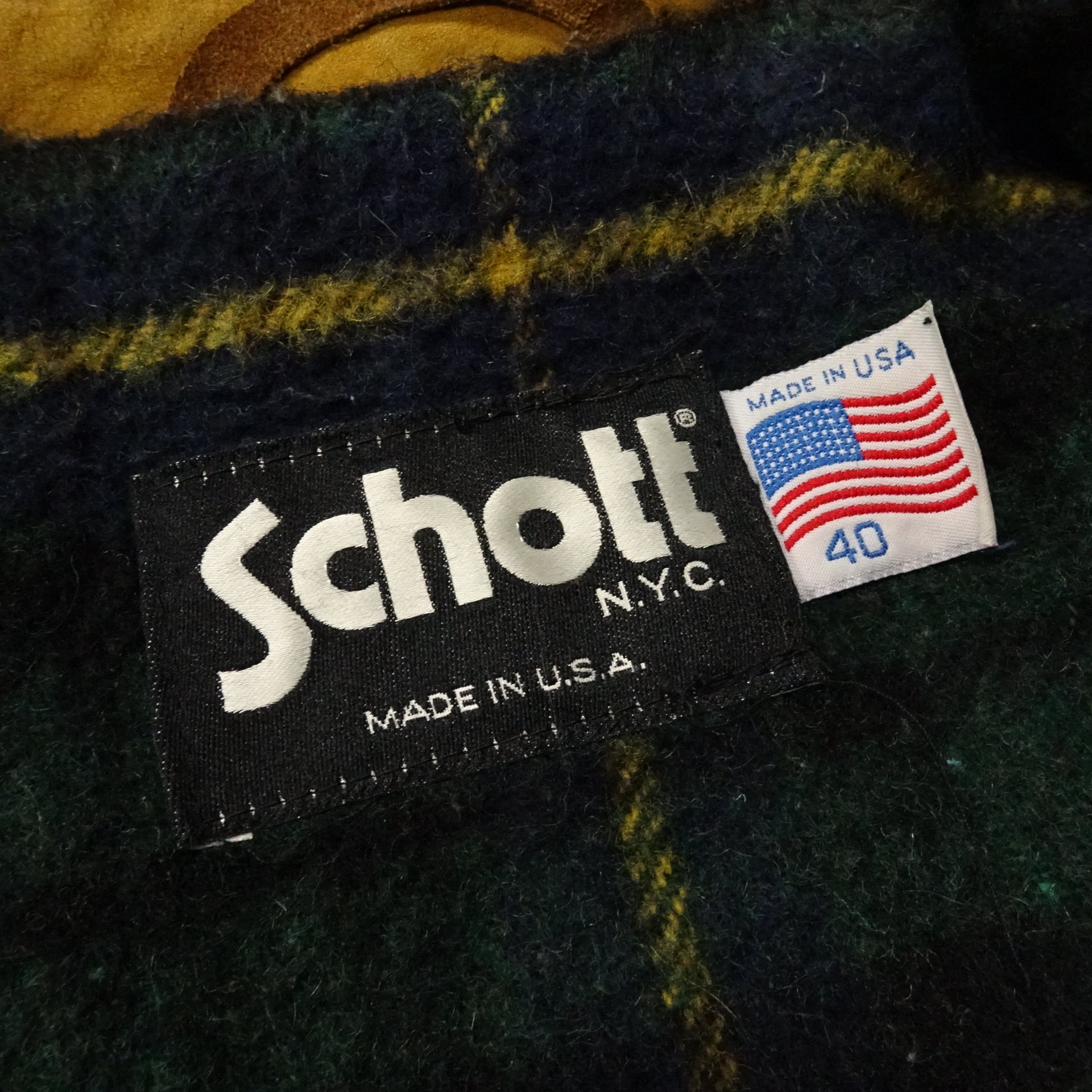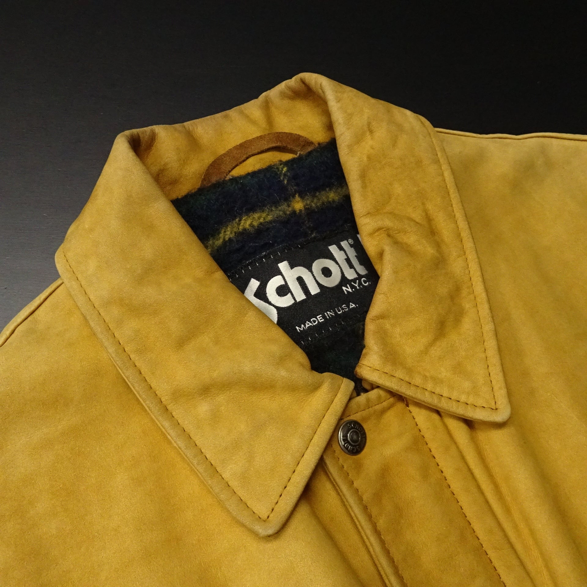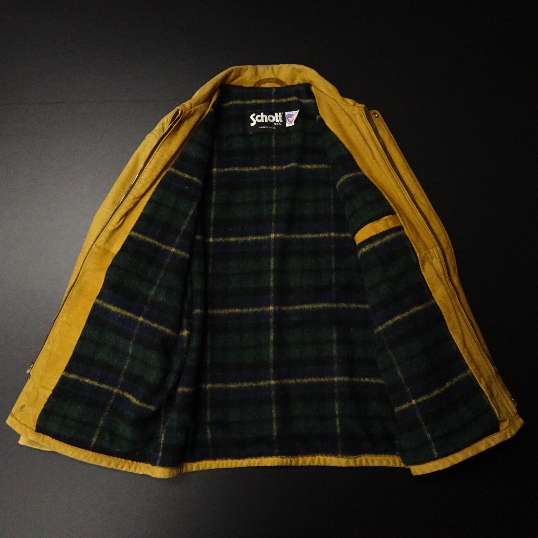80s- USA製 Schott ショット レザージャケット ヌバック ハーフコート 裏地チェック 80年代~ ベージュ系