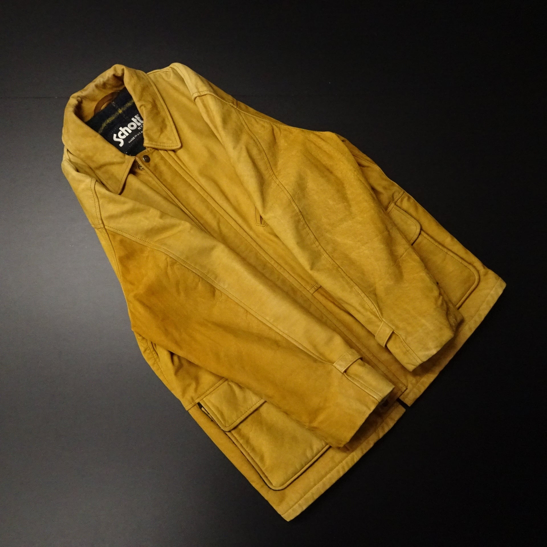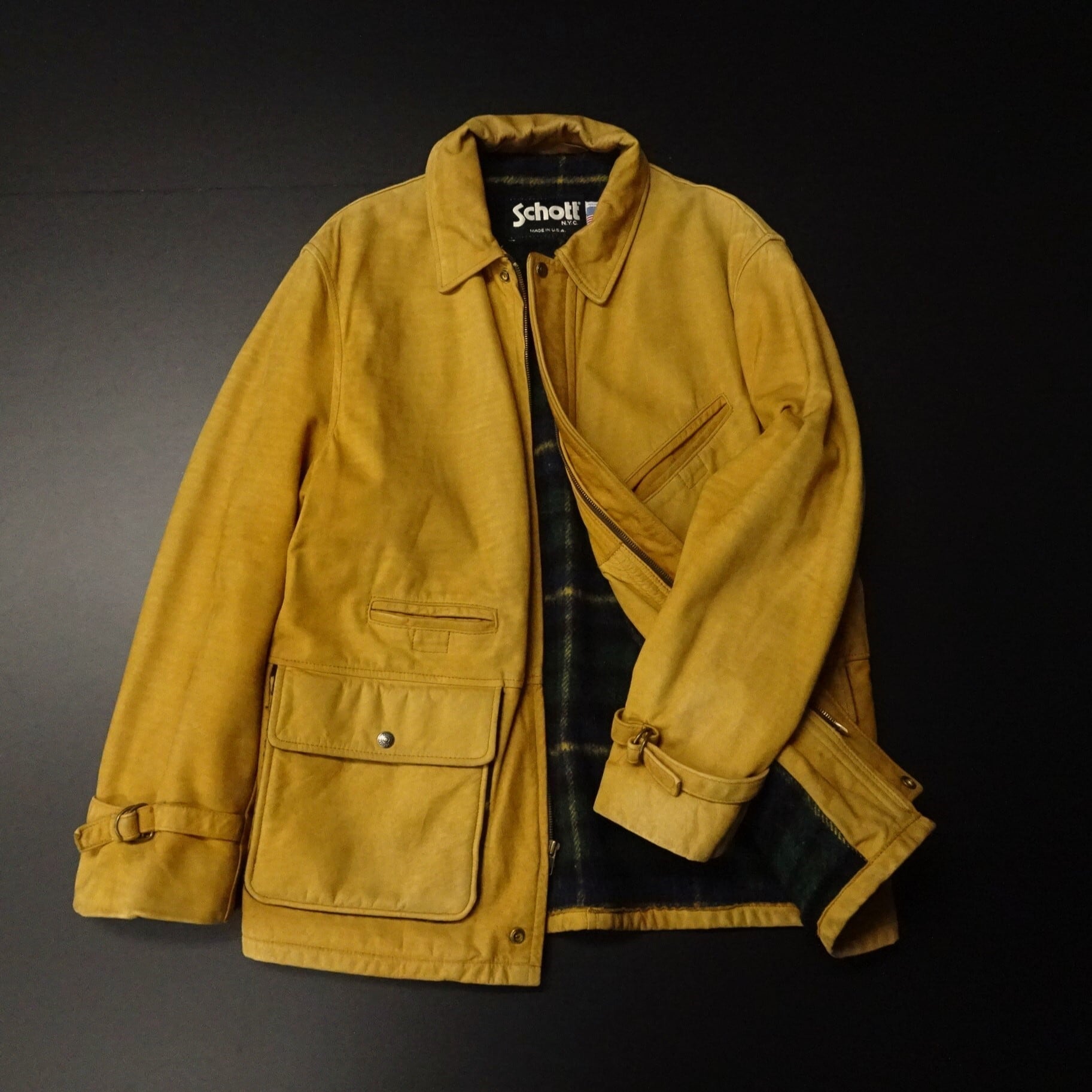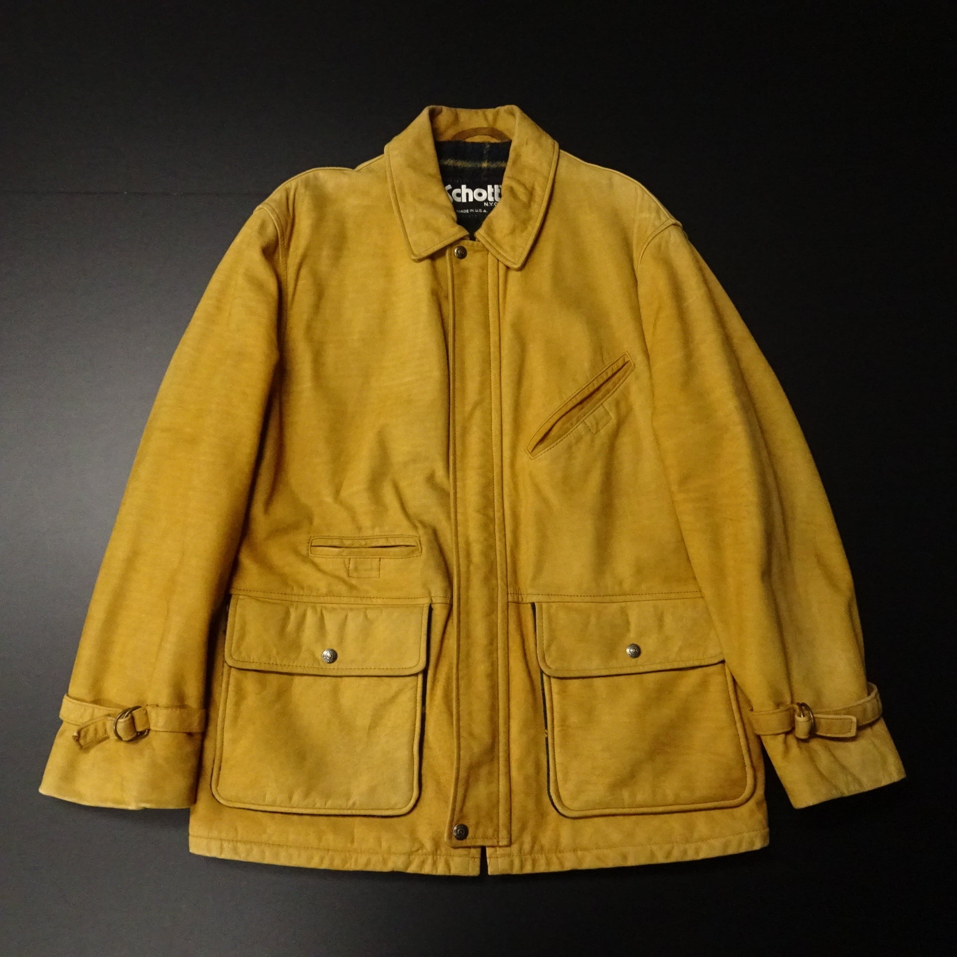 80s- USA製 Schott ショット レザージャケット ヌバック ハーフコート 裏地チェック 80年代~ ベージュ系