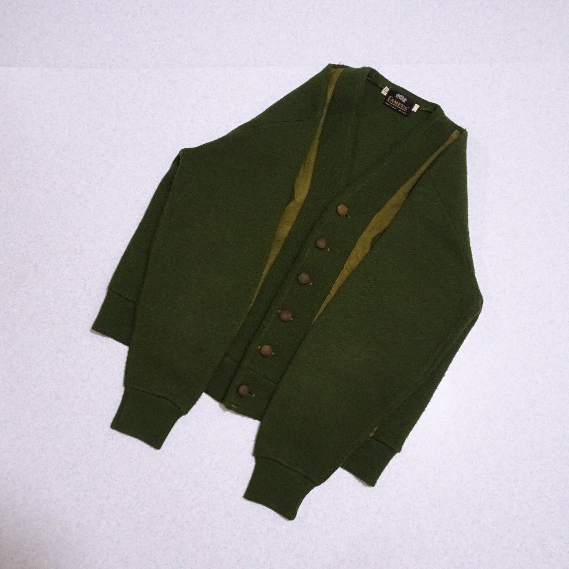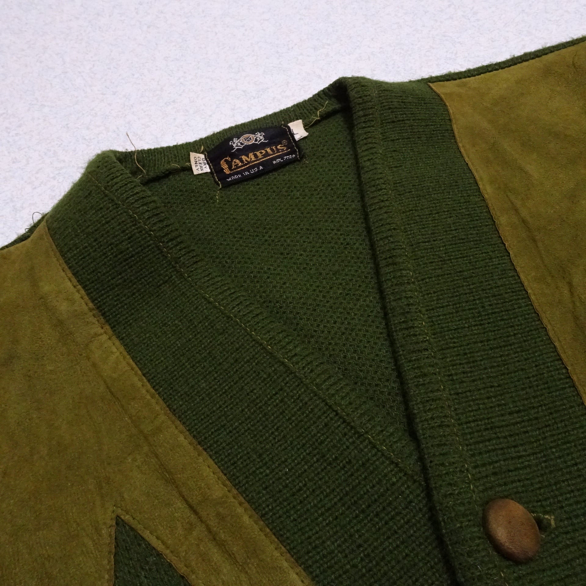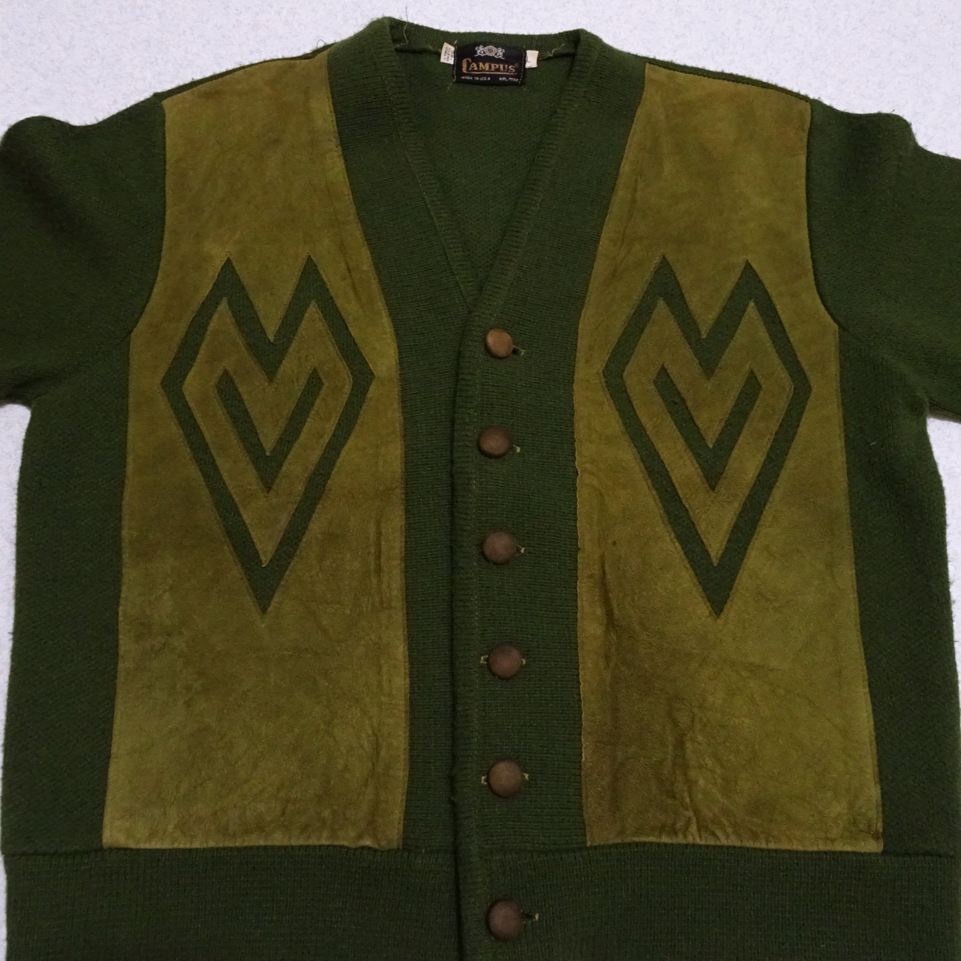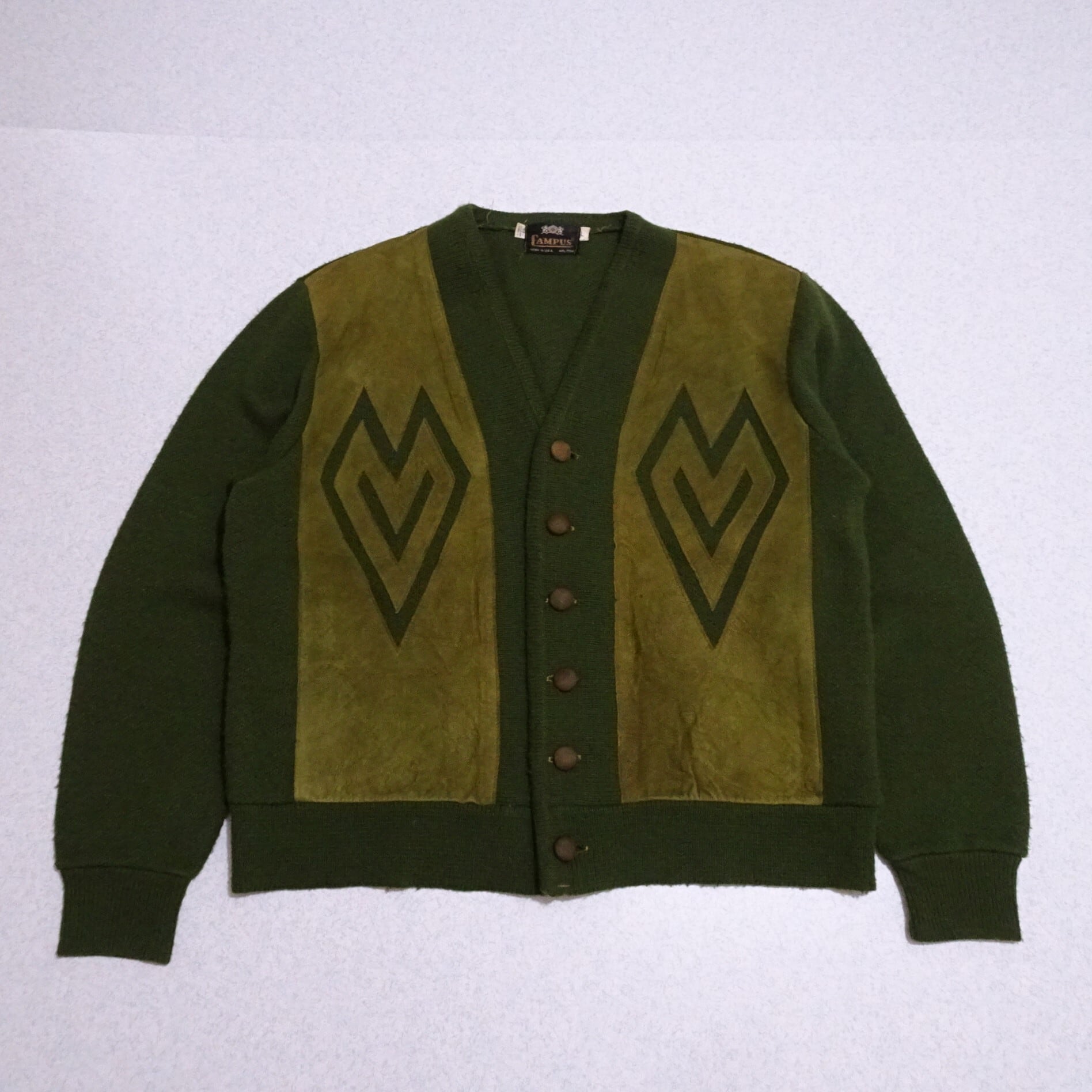 Campus / Ls Cardigan / Suede Leather / Green / 70s / Vintage / Made in USA