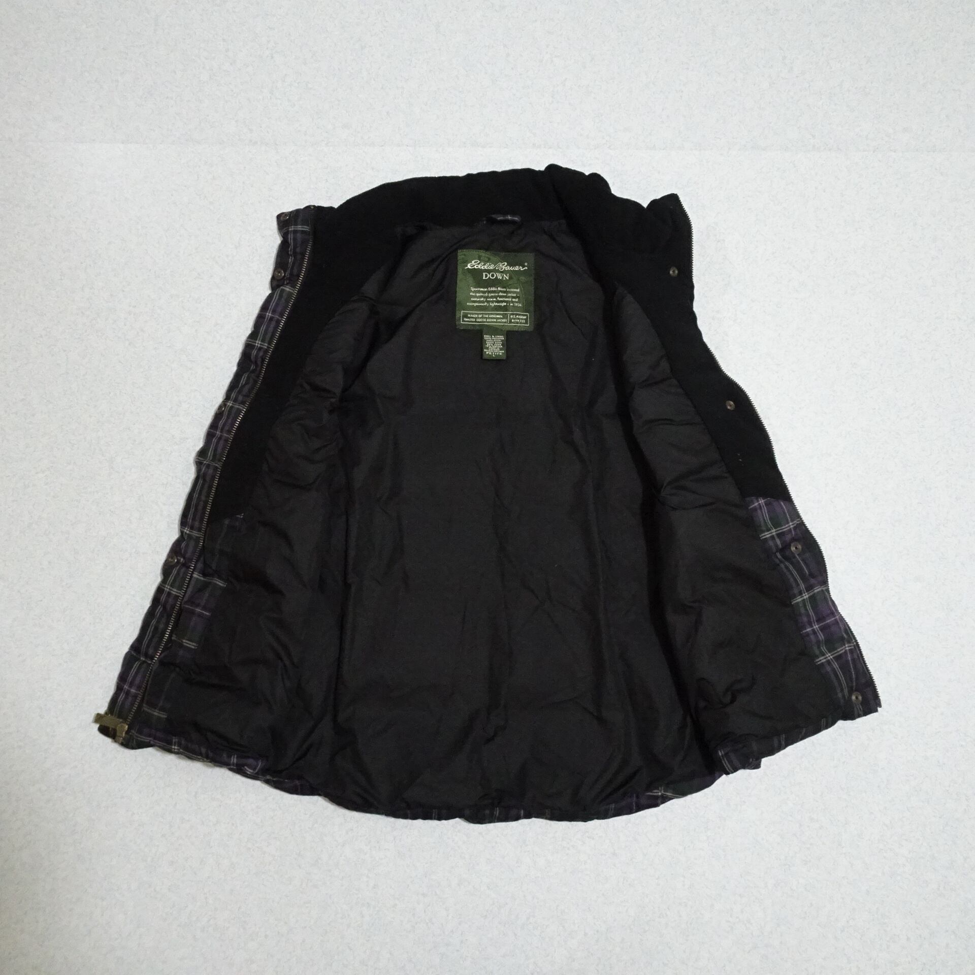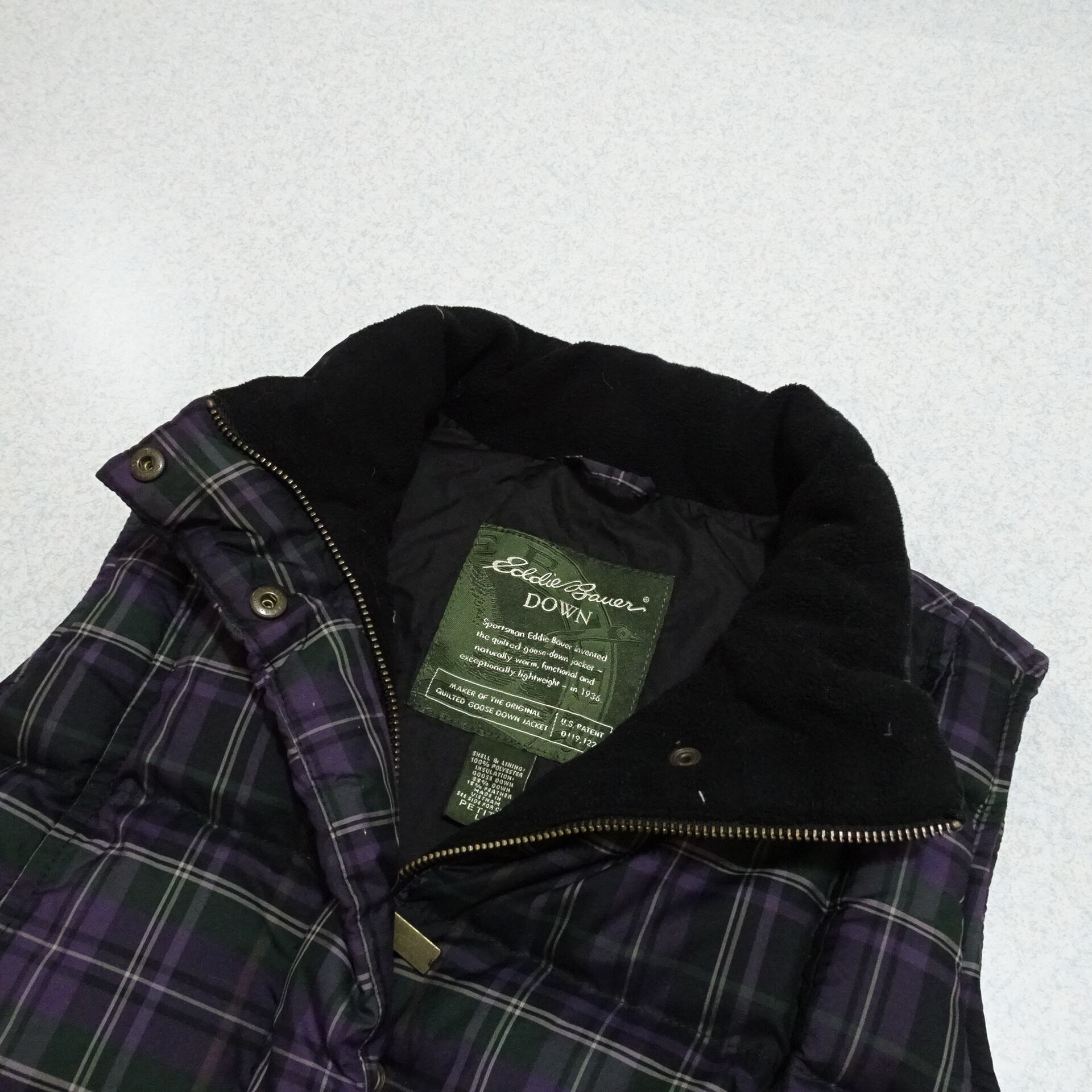 00s Eddie Bauer エディーバウアー ダウンベスト チェック柄 グースダウン 00年代 パープル系