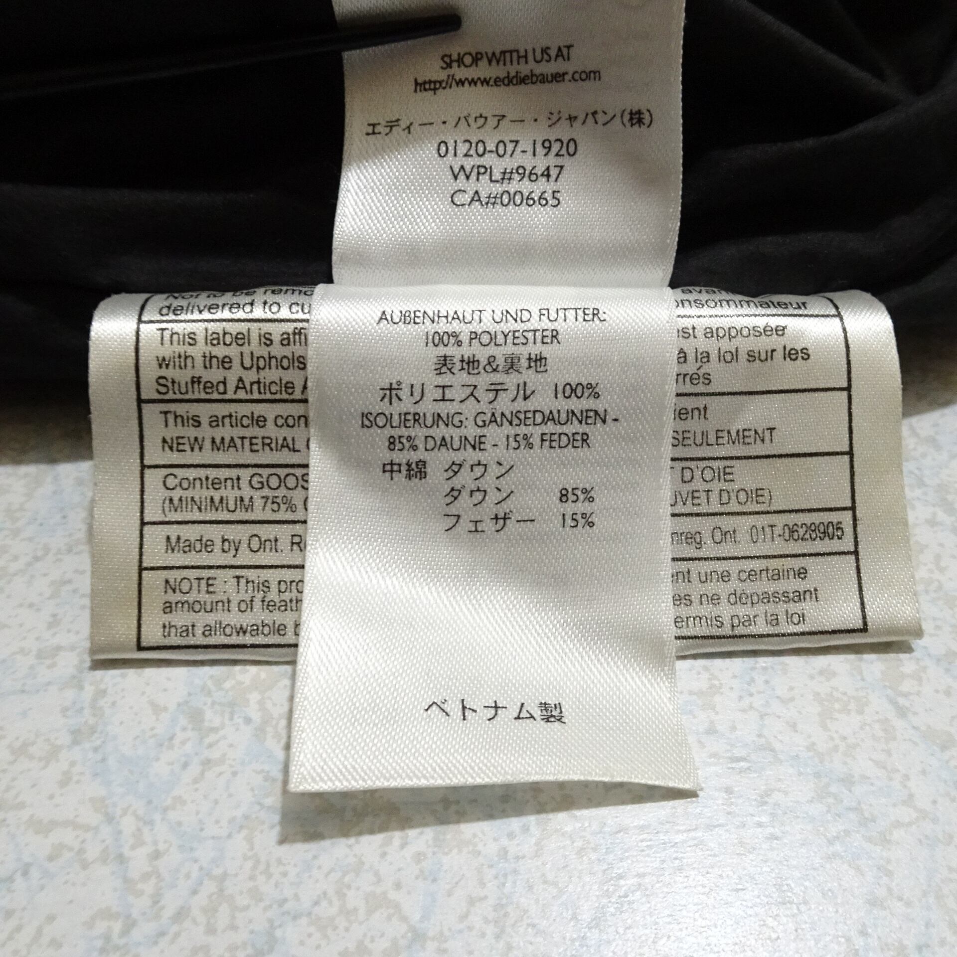 詰物:ダウン 85% フェザー 15%