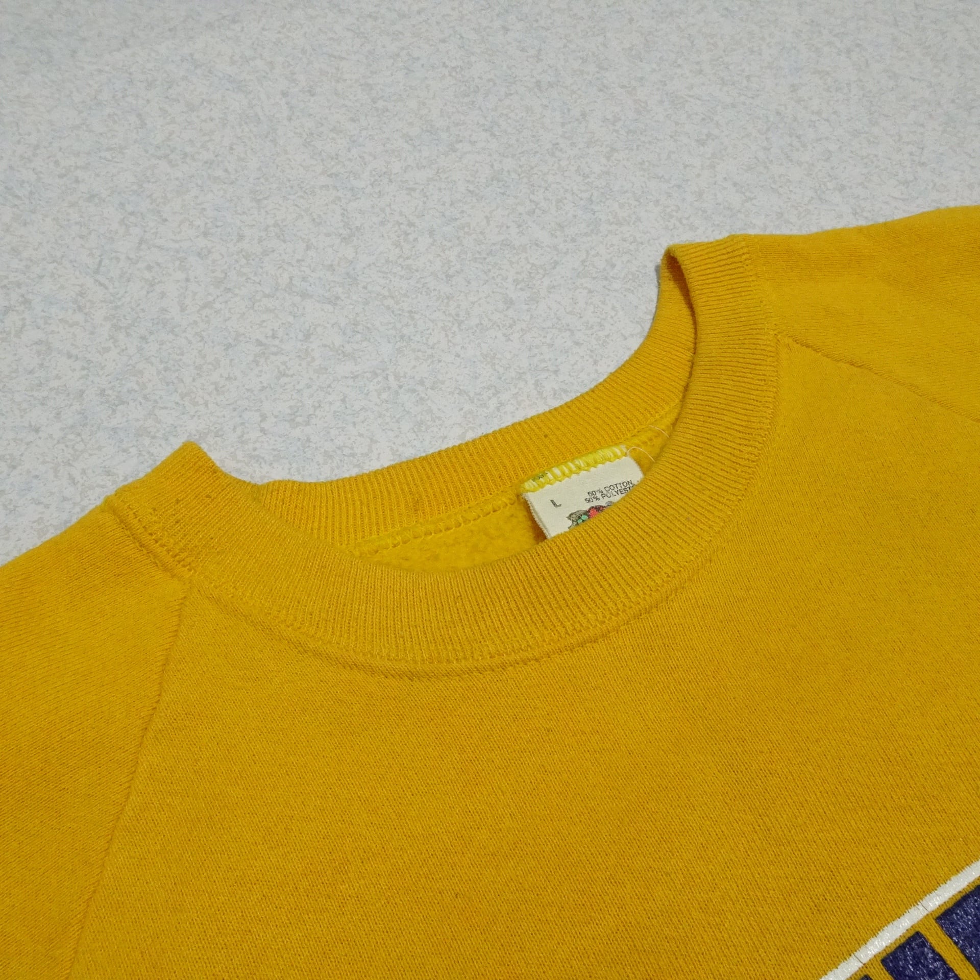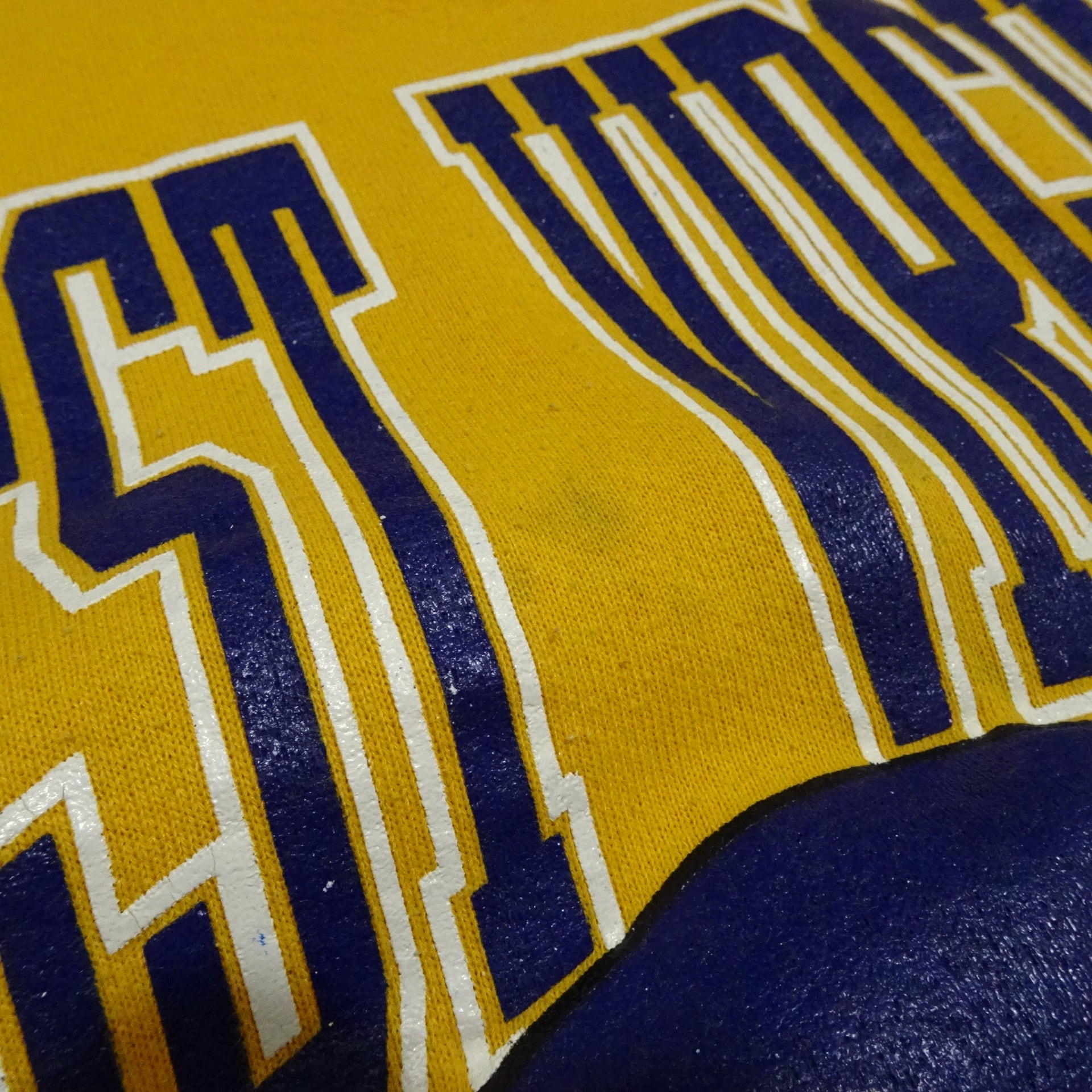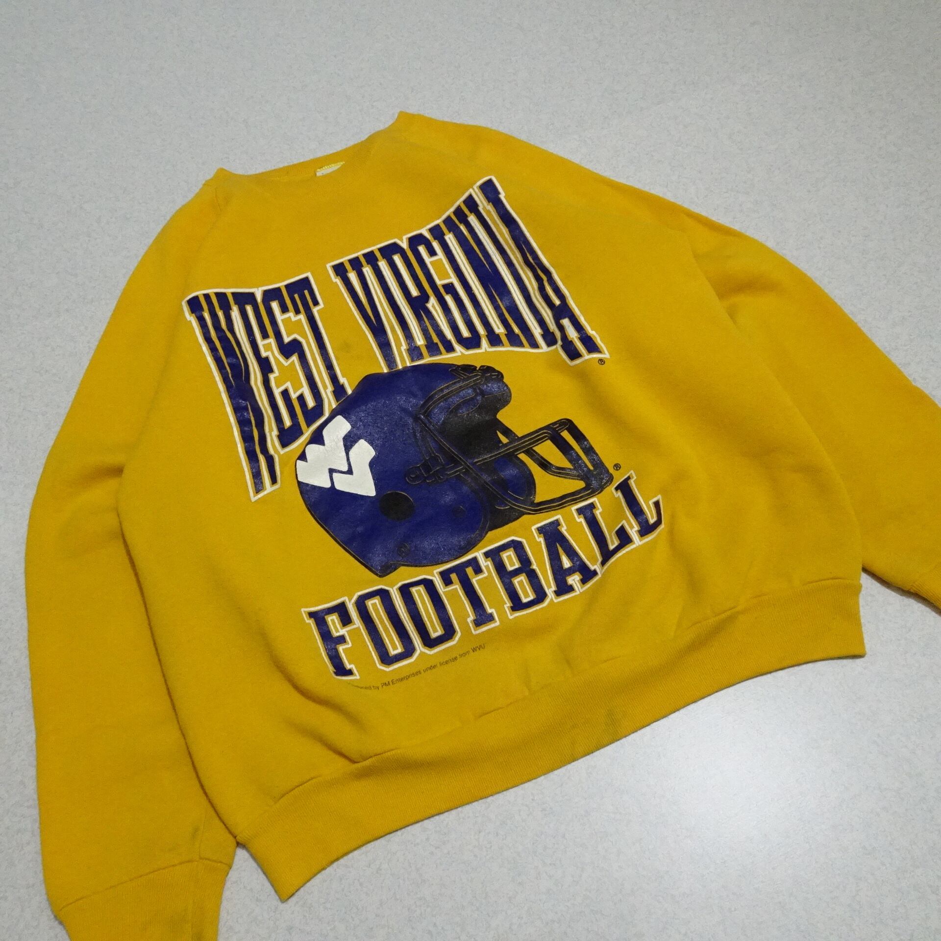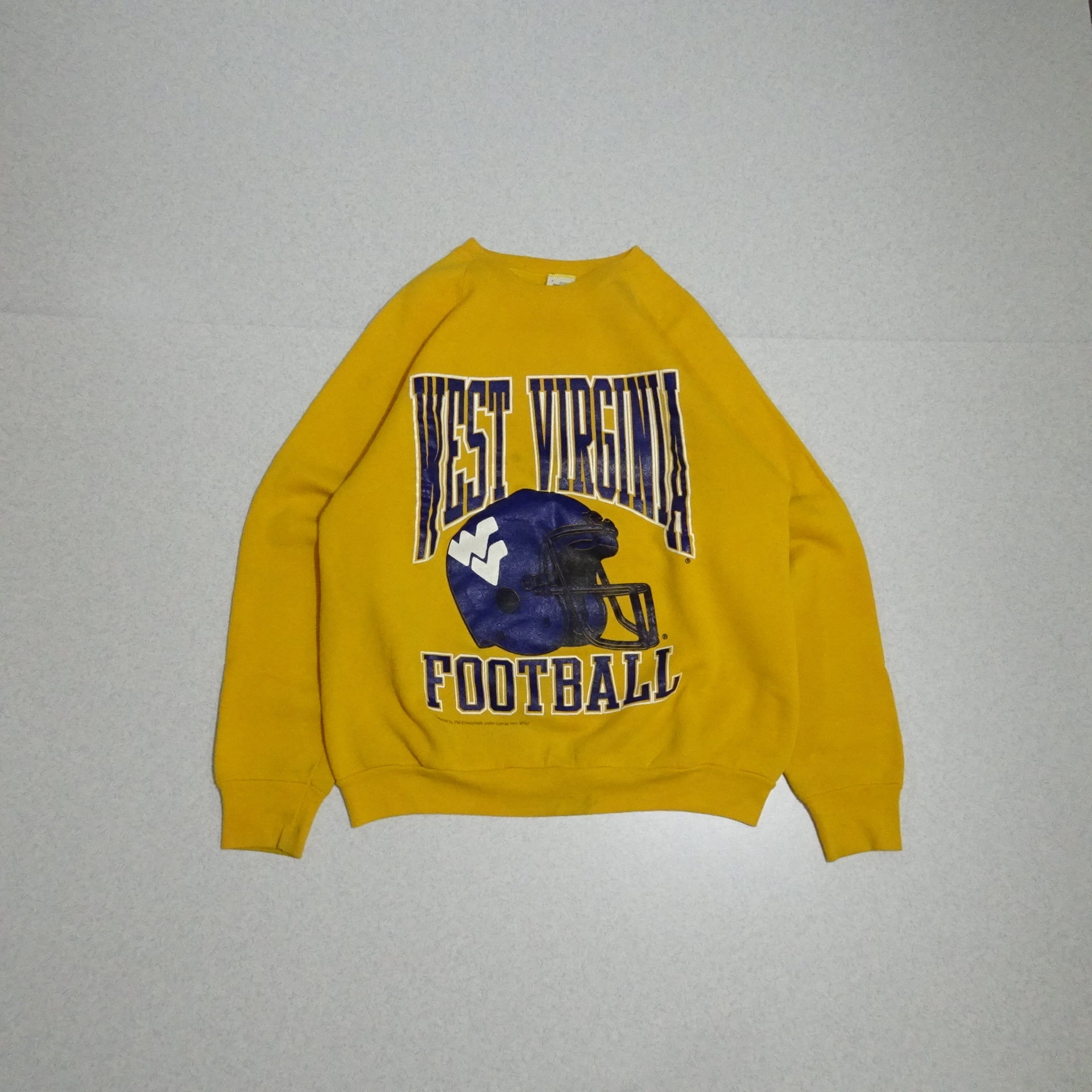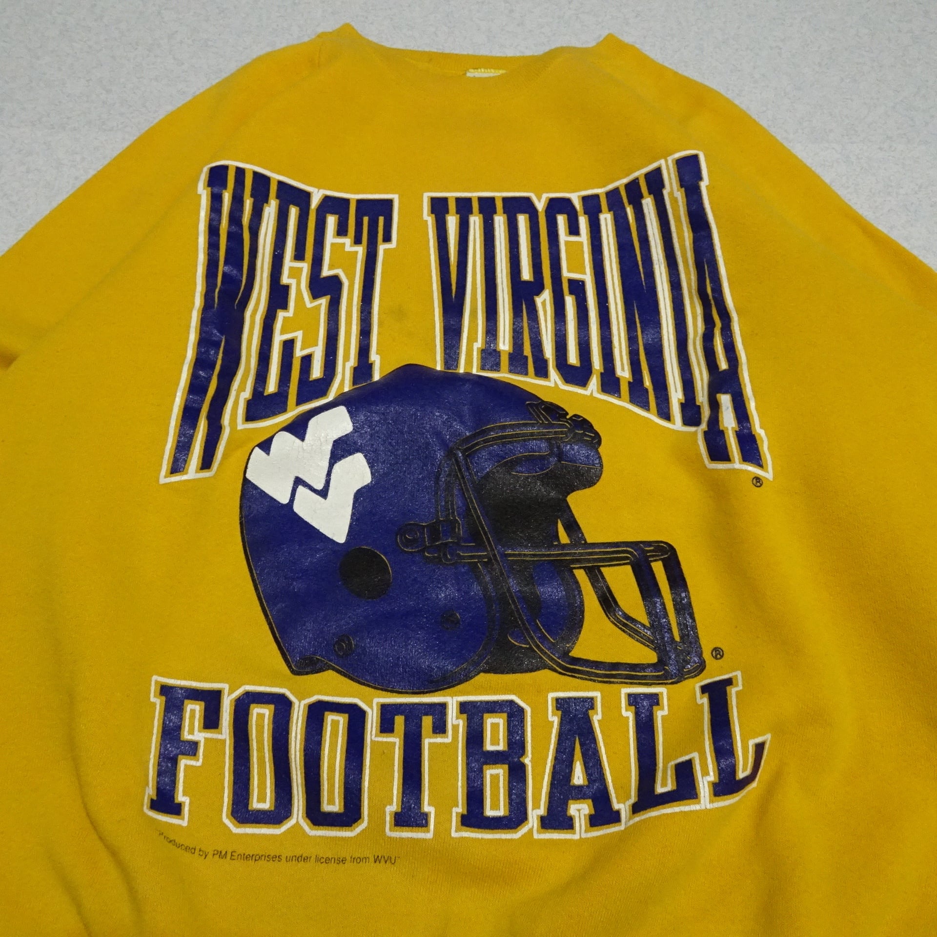 80s USA製 FRUIT OF THE LOOM フルーツオブザルーム カレッジ ウエストバージニア大学 フットボール 長袖スウェット ラバープリント ラグラン 80年代 イエロー