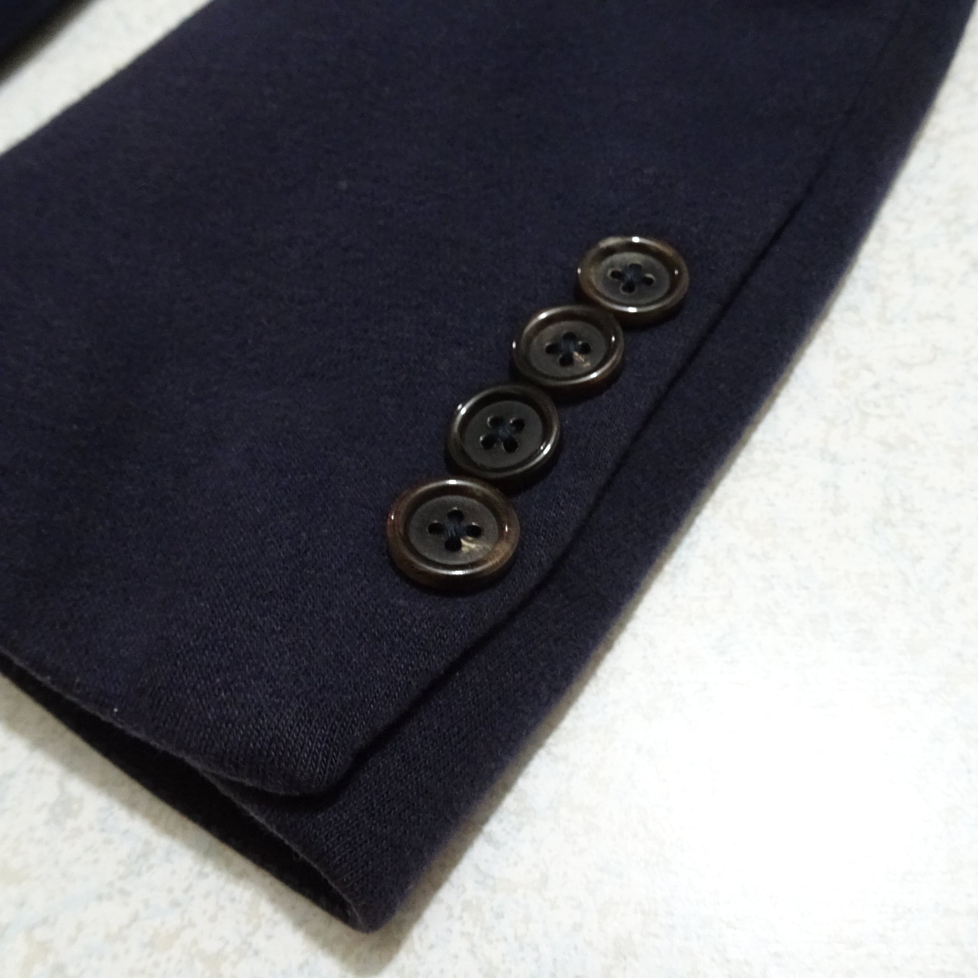 こちらはスウェット生地で、2つボタン・サイドベントのカジュアルデザイン。