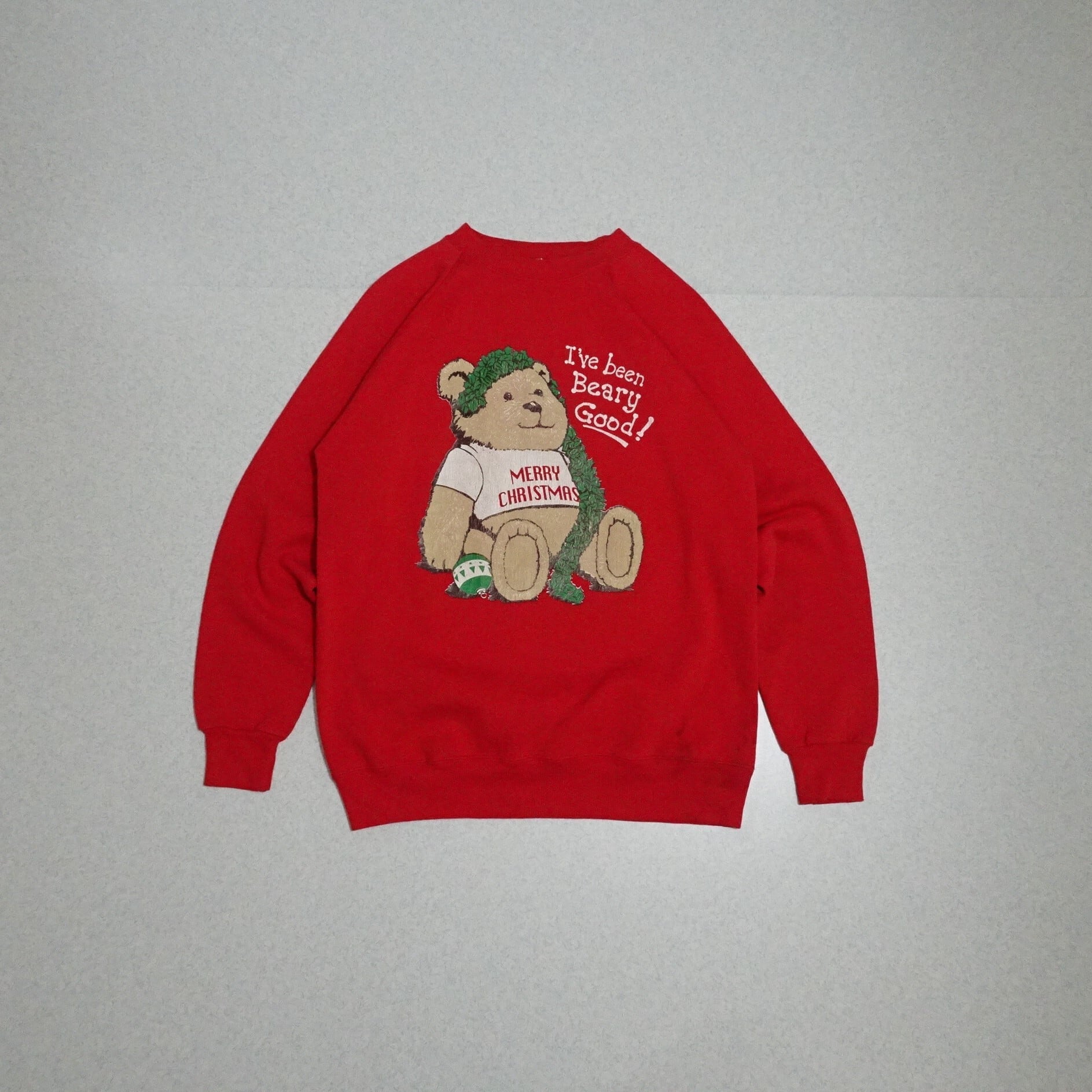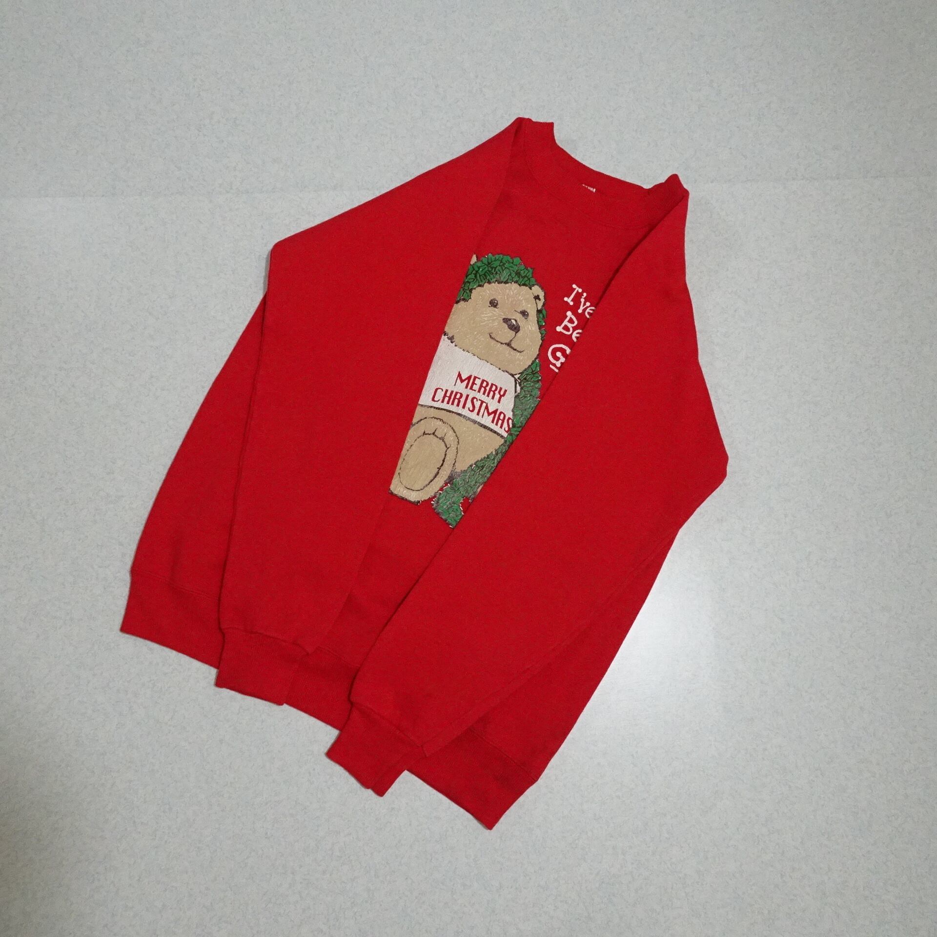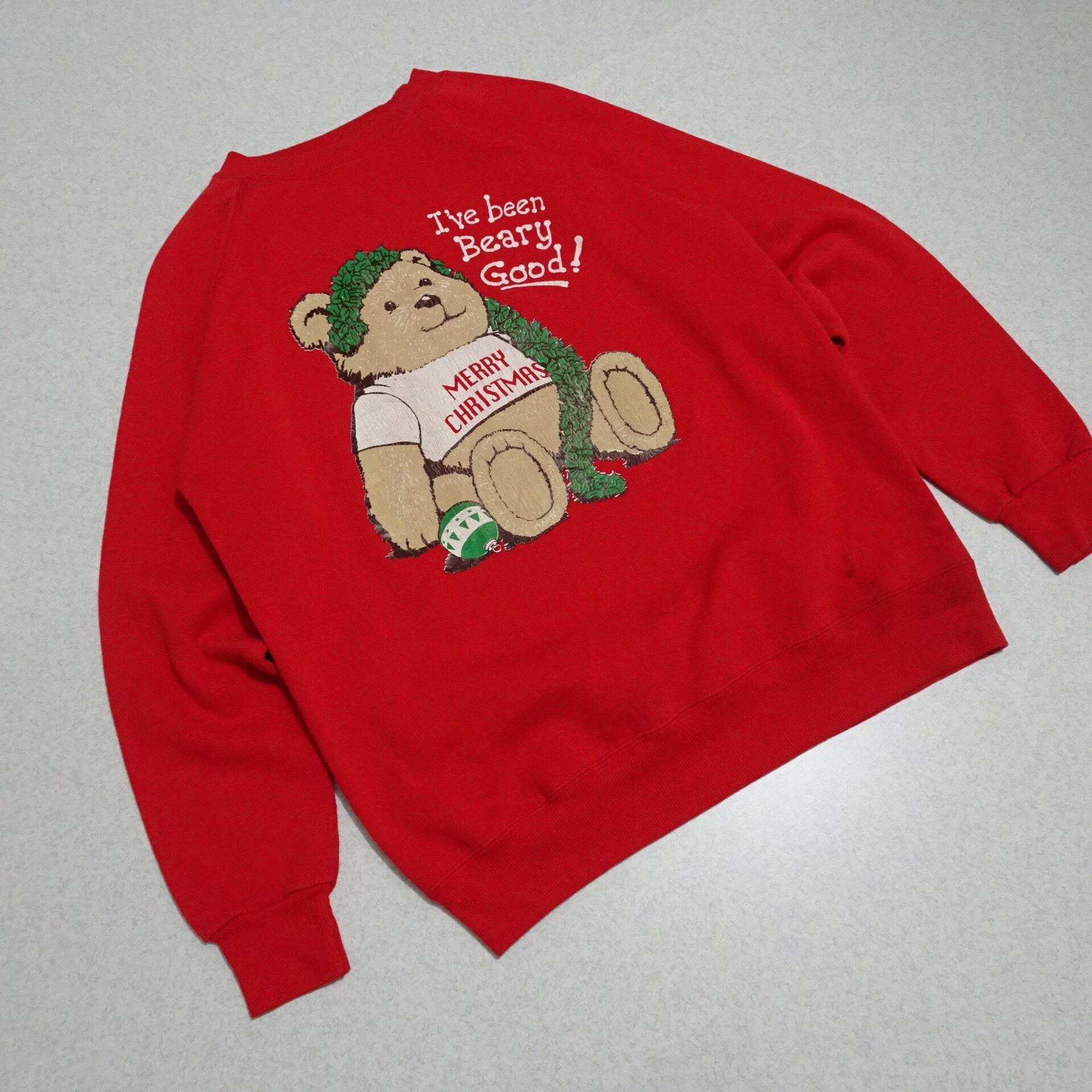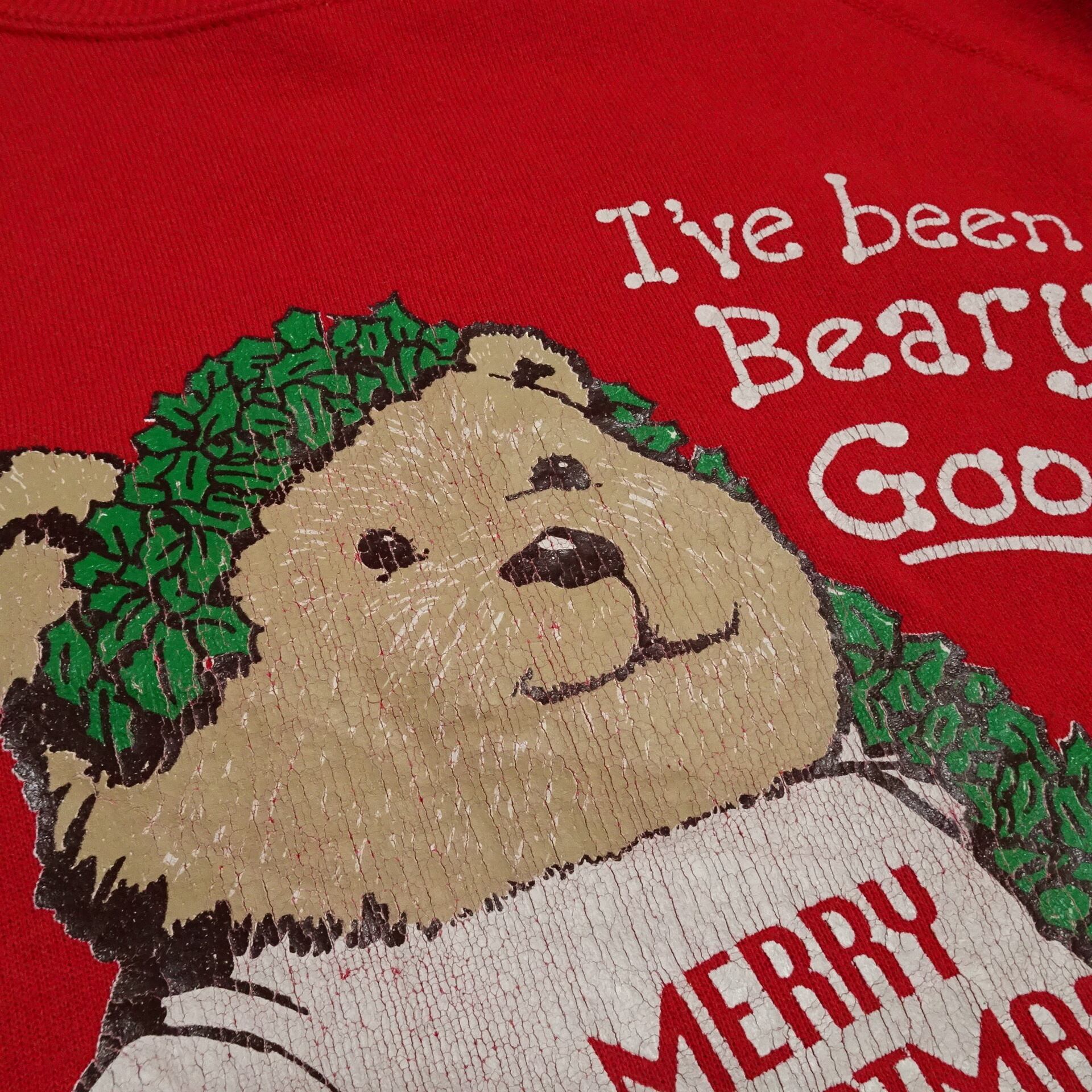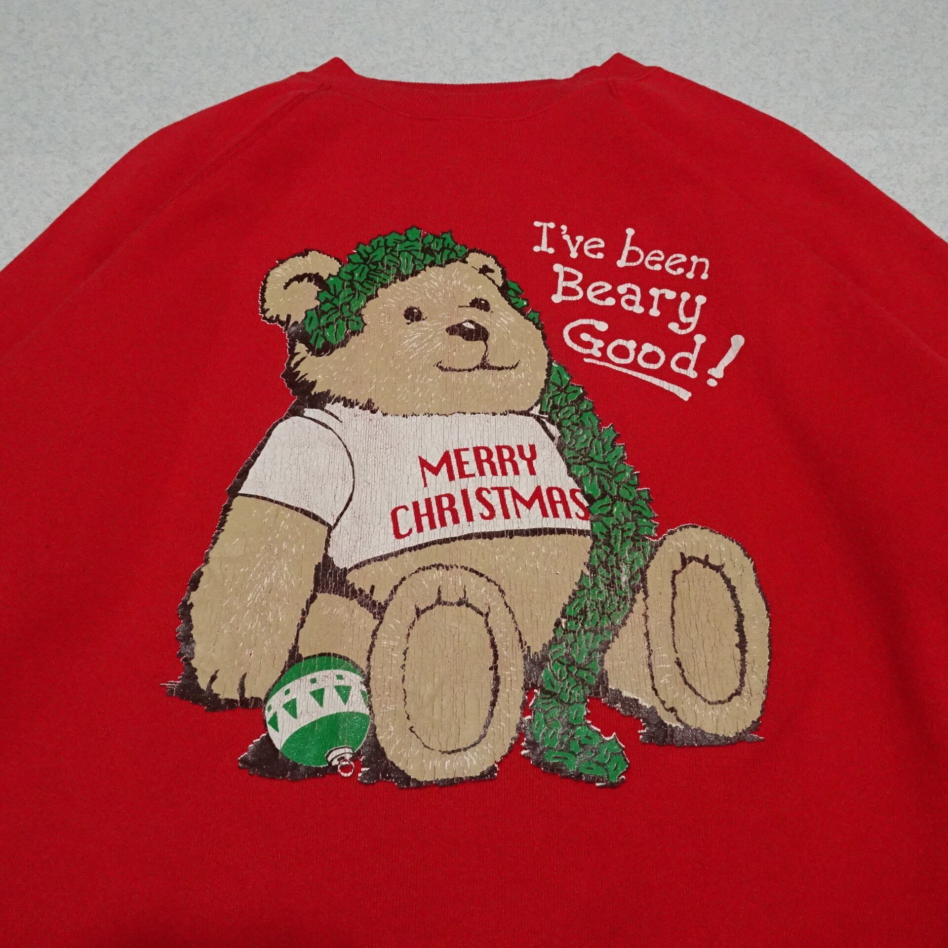 ◆Hanes / Ls Sweat / Christmas / Bear / Print / Red / 90s / Vintage / Made in USA