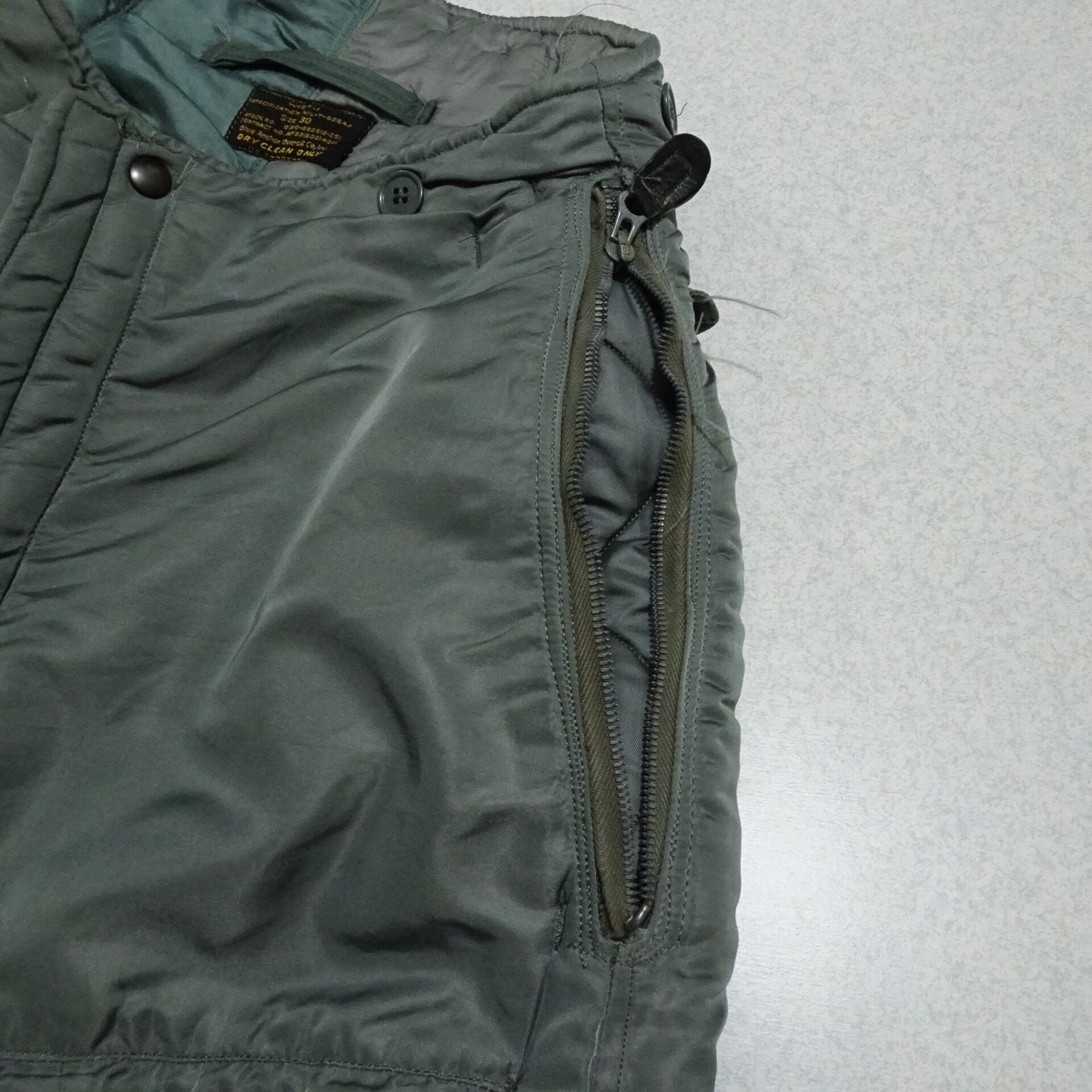 こちらはN-3Bの下に合わせるモデルとしても有名な、米空軍で使用されている防寒パンツです。重量感たっぷりで高い保温力を誇ります。