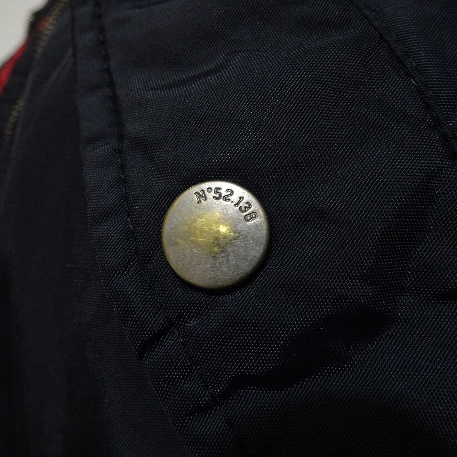 ネイビーカラーで裏地がレッドのキルティングになってます。