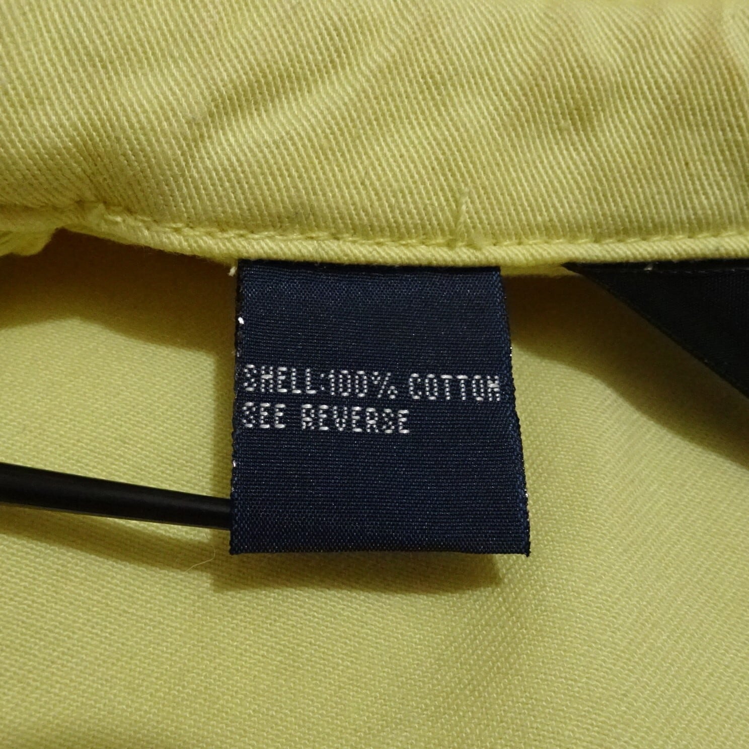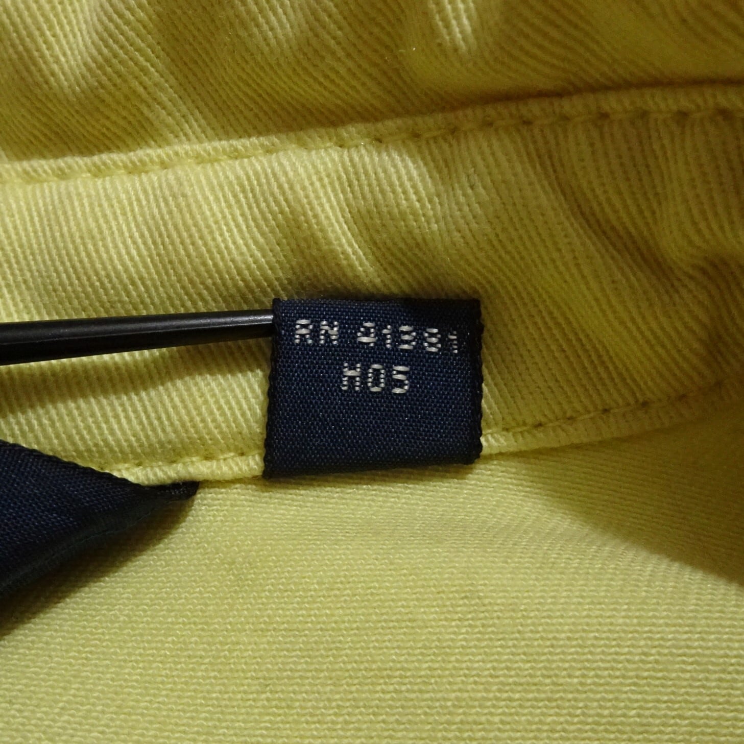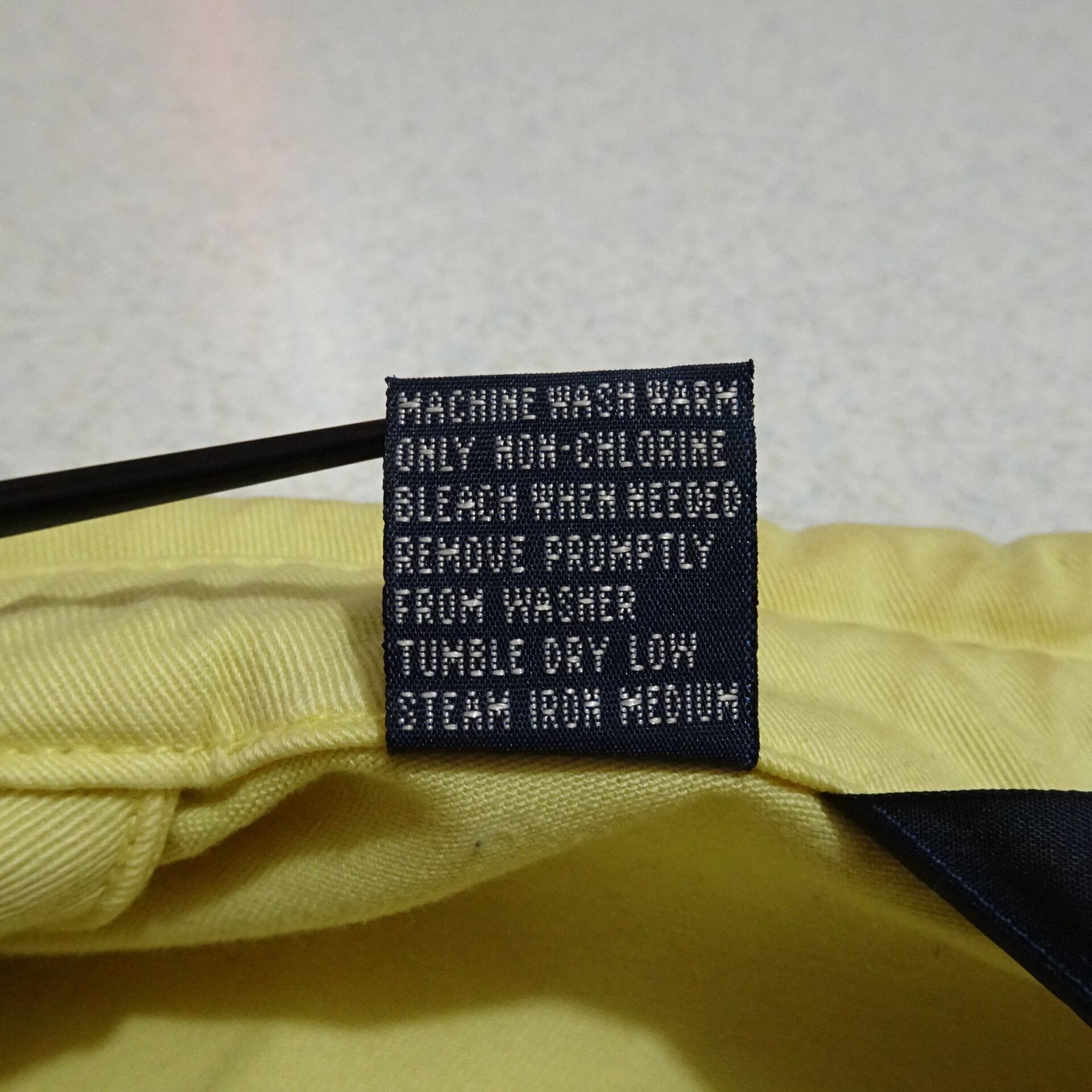 こちらは三角タグで、カラーはイエローベースにネイビーのポニー。