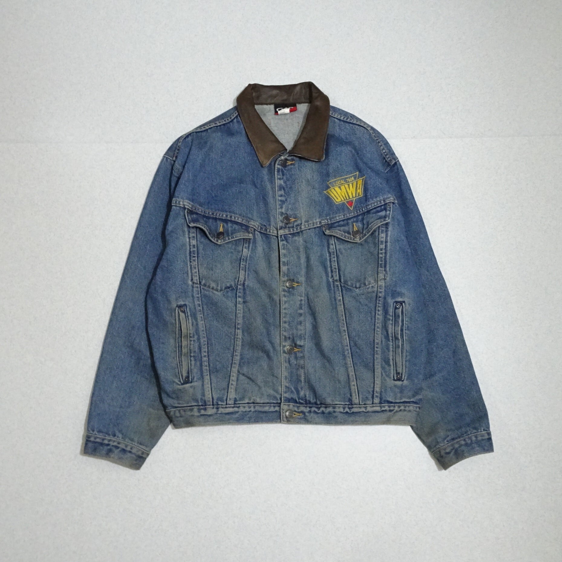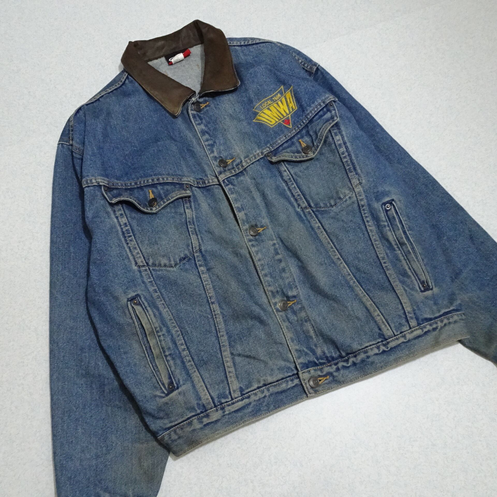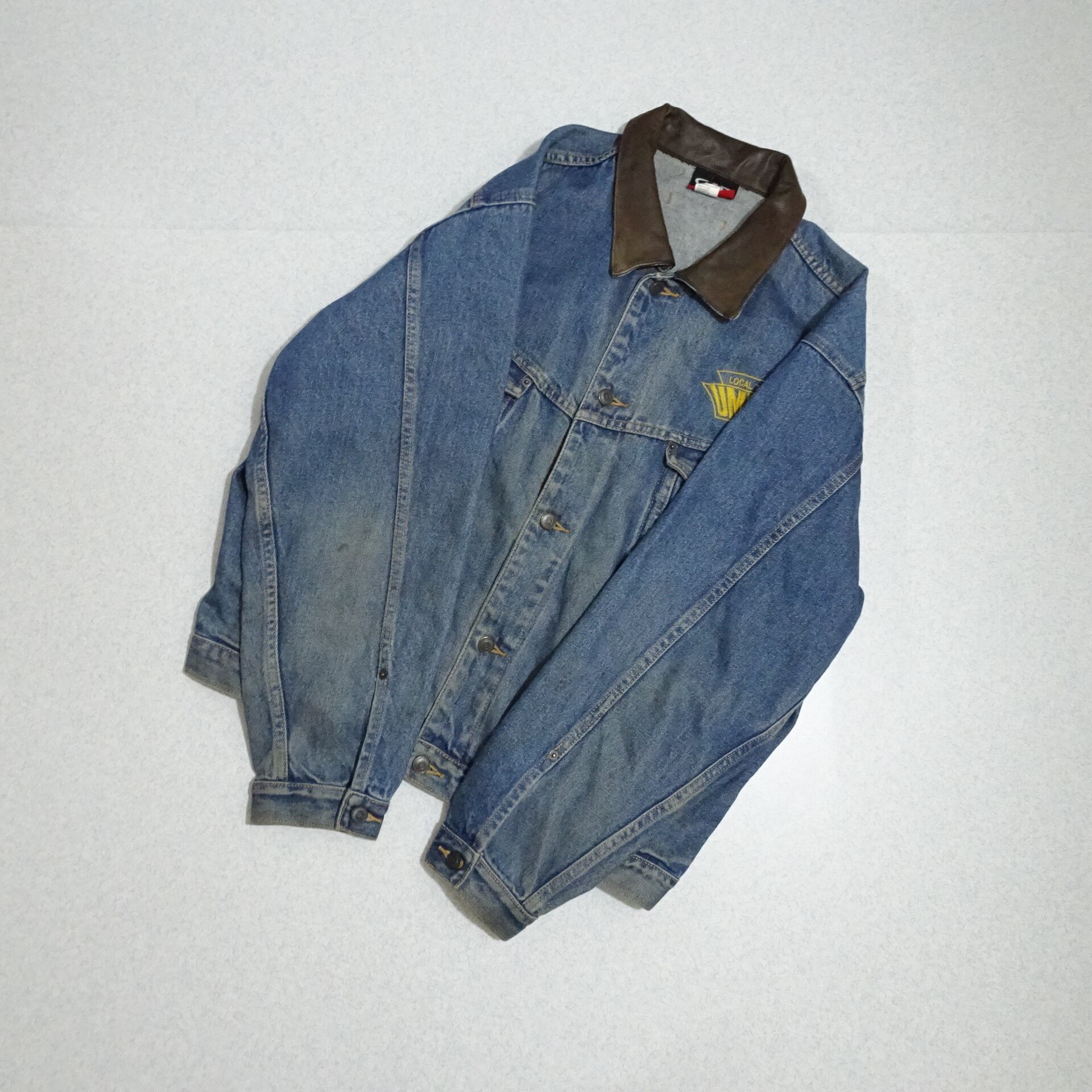 90s カナダ製 id WEAR デニムジャケット UMWA レザー襟 背面刺繍 90年代~ ブルー系