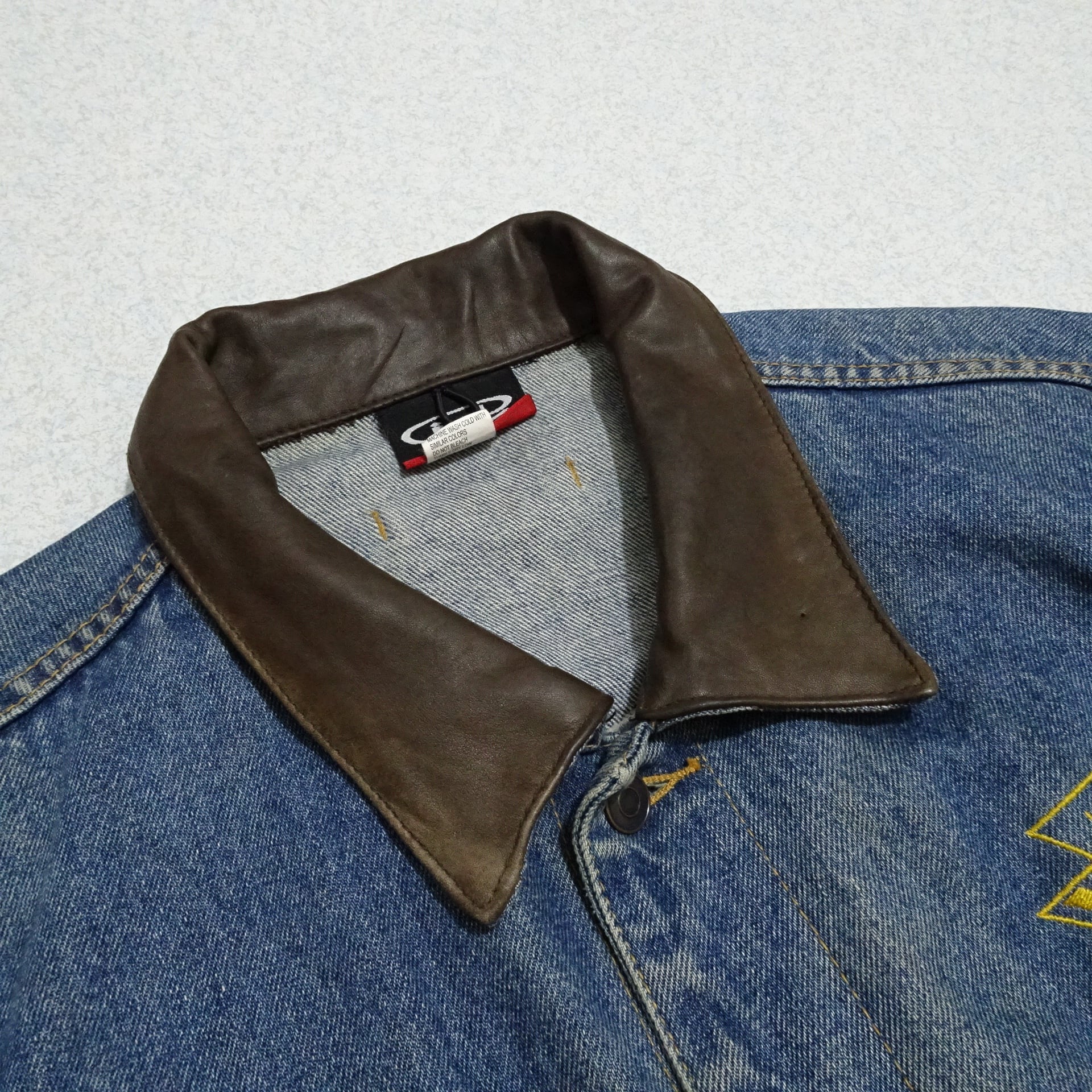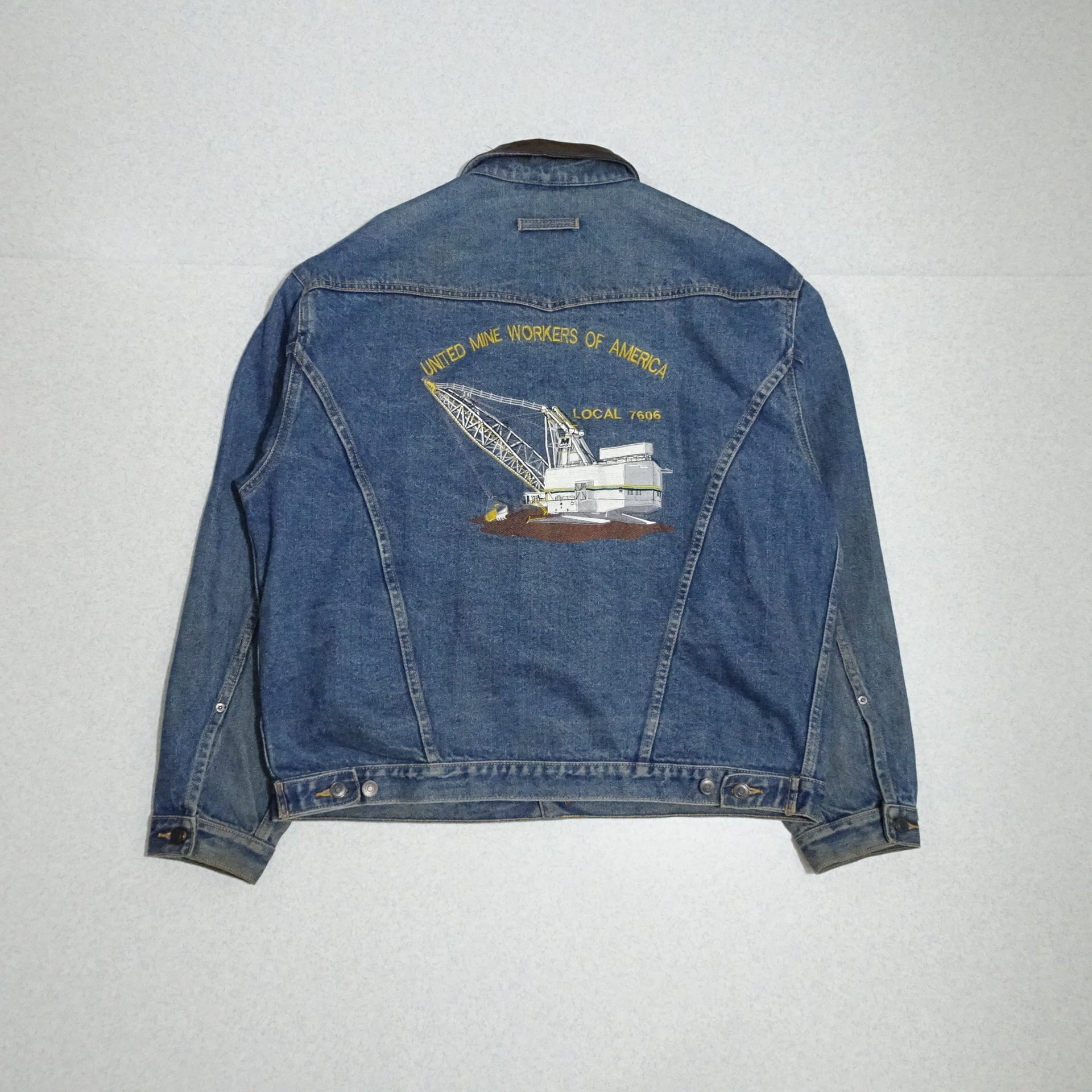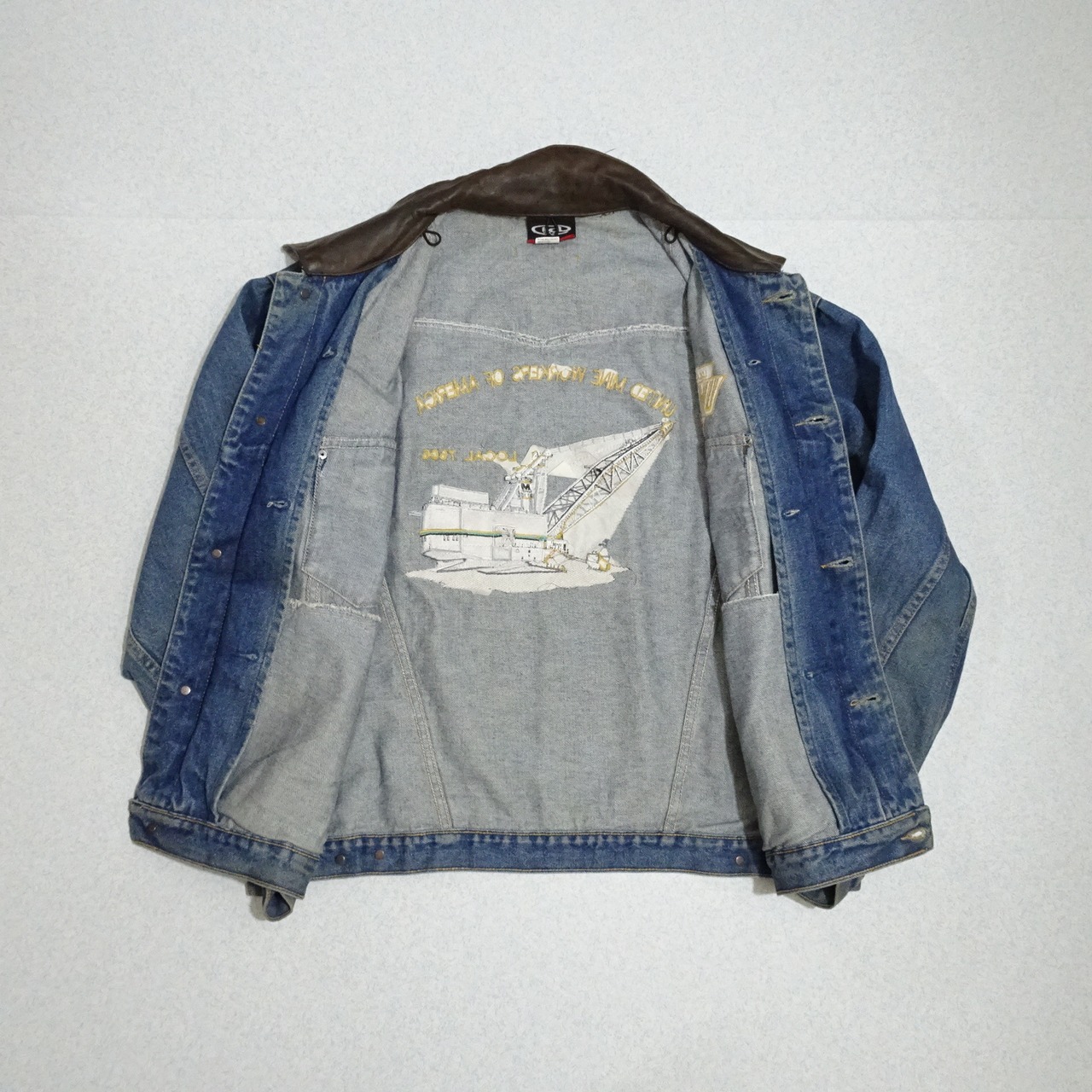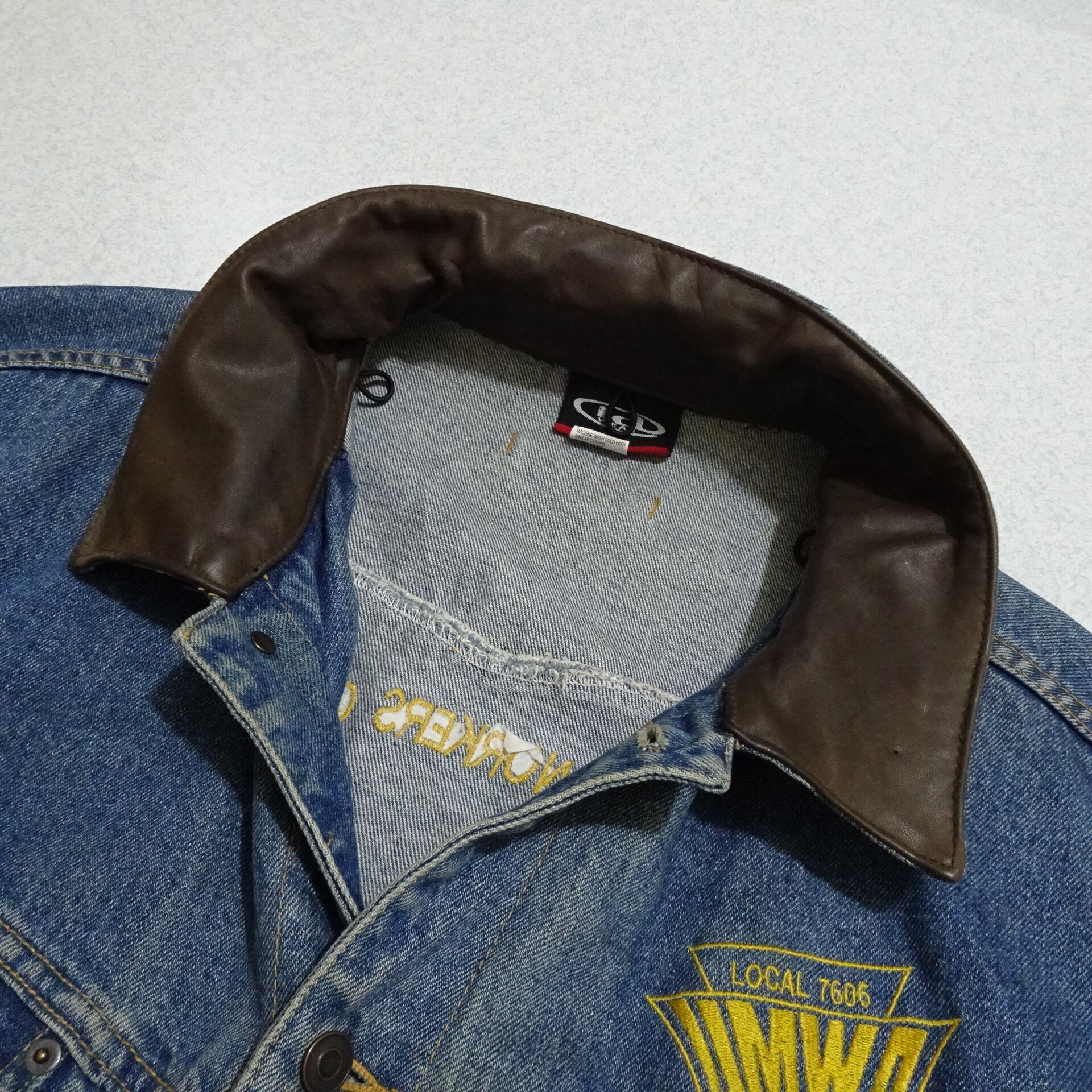 90s カナダ製 id WEAR デニムジャケット UMWA レザー襟 背面刺繍 90年代~ ブルー系
