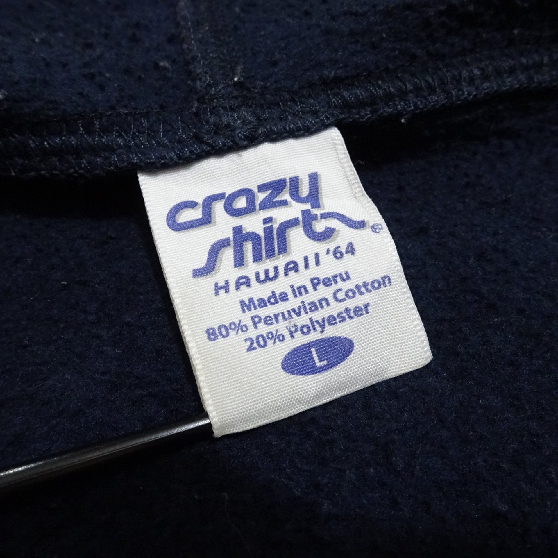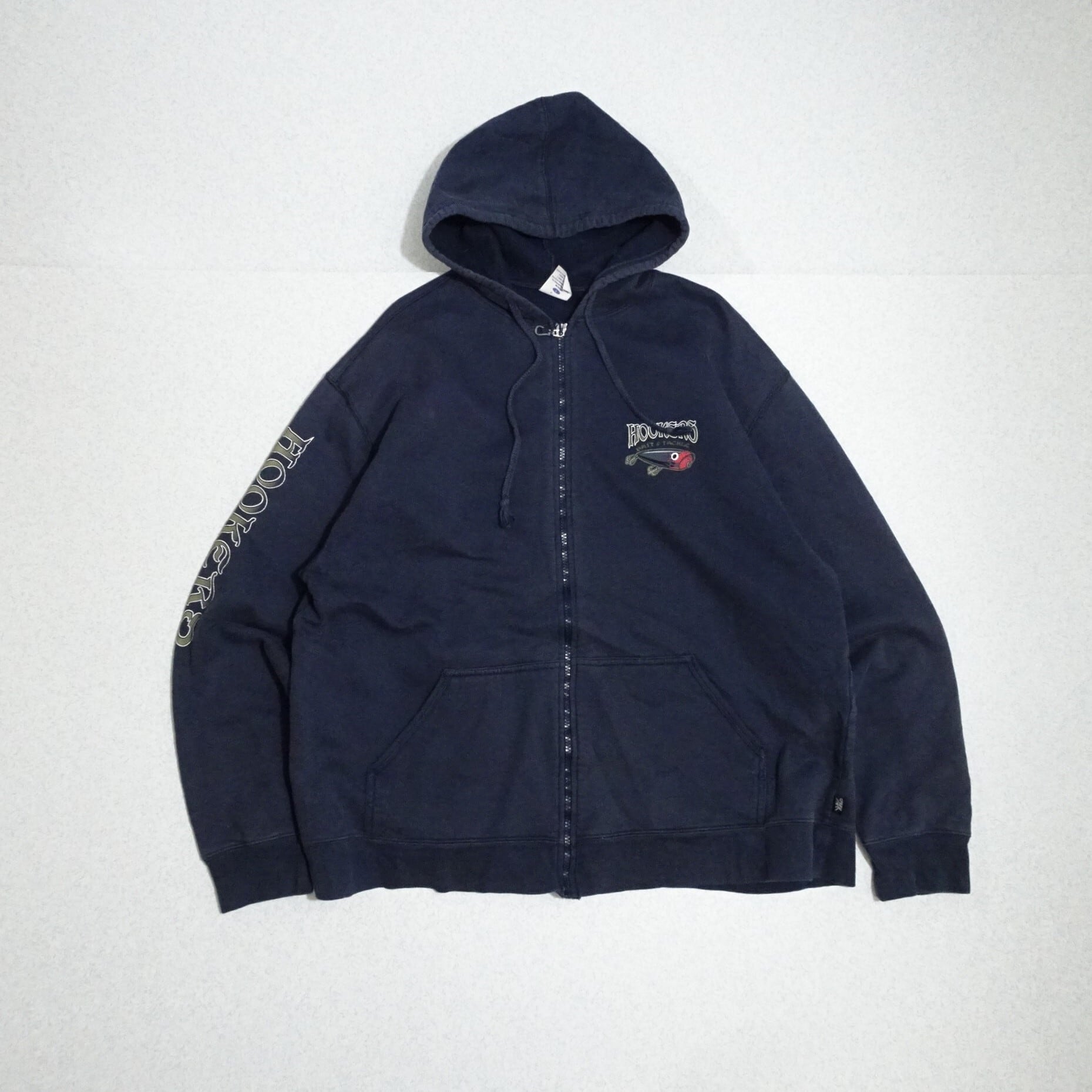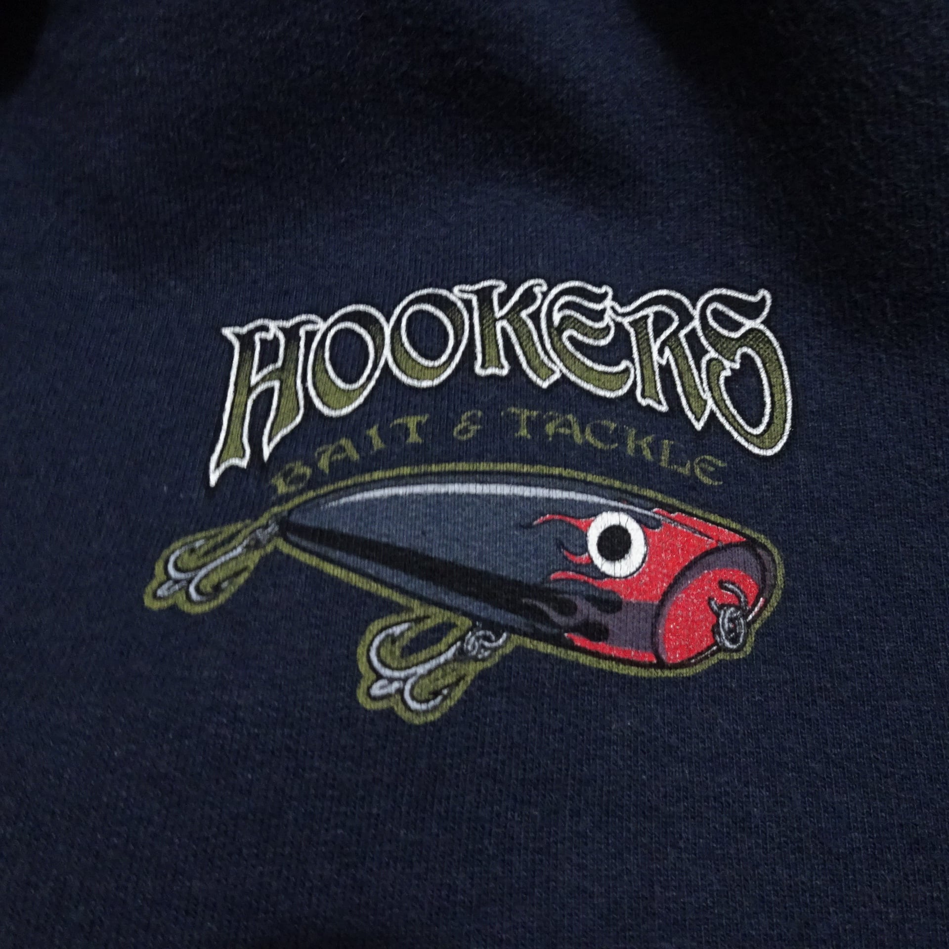 90s- ペルー製 crezy shirt クレイジーシャツ 長袖ジップパーカー HOOKERS 釣り ルアー 90年代~ ネイビー
