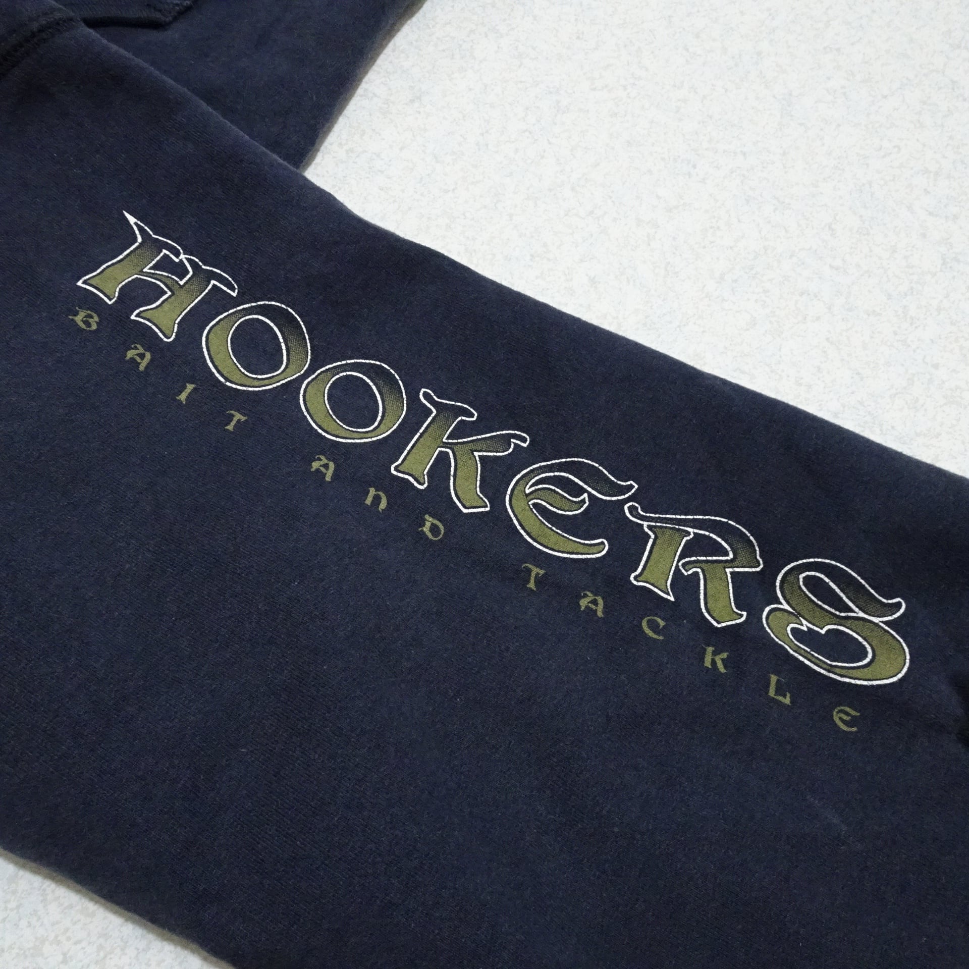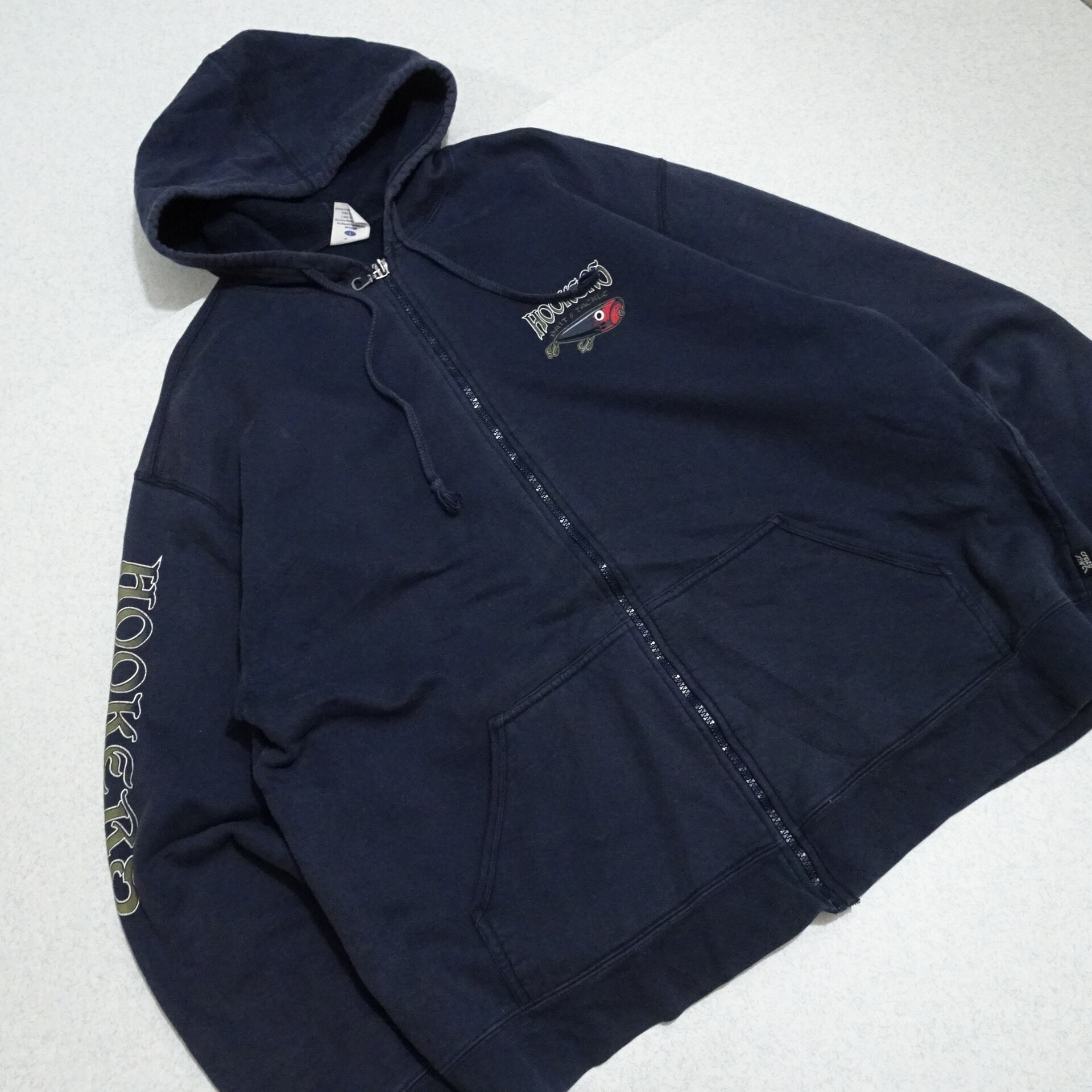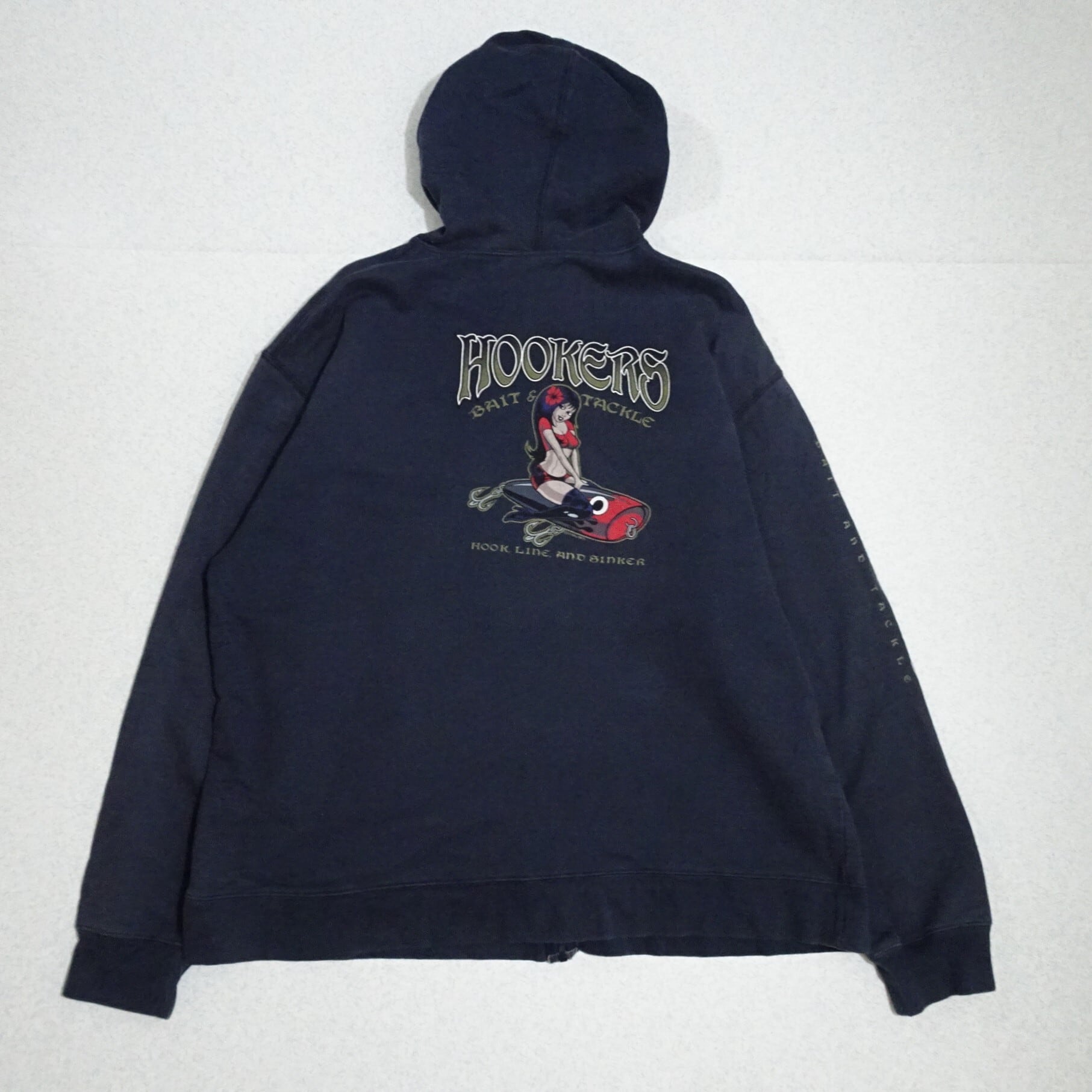 90s- ペルー製 crezy shirt クレイジーシャツ 長袖ジップパーカー HOOKERS 釣り ルアー 90年代~ ネイビー