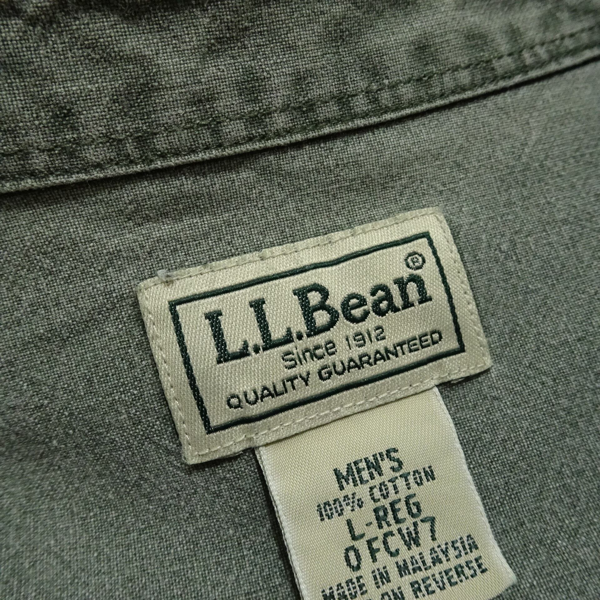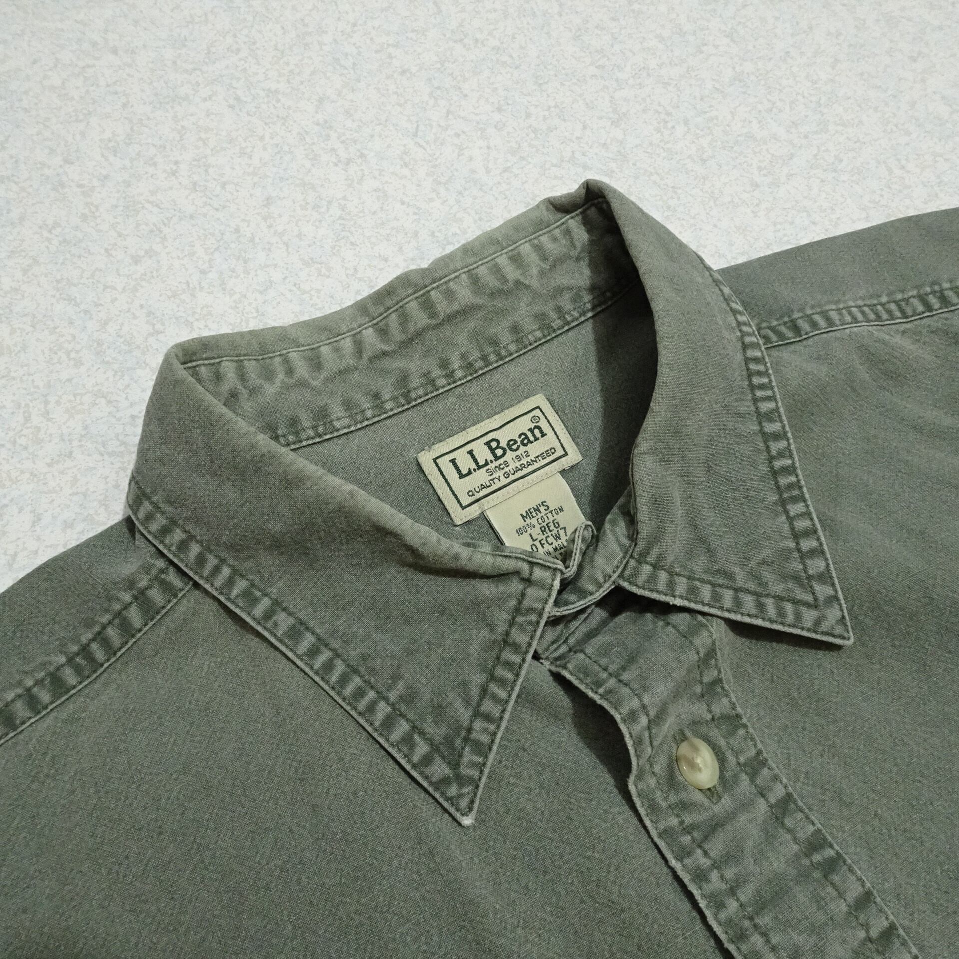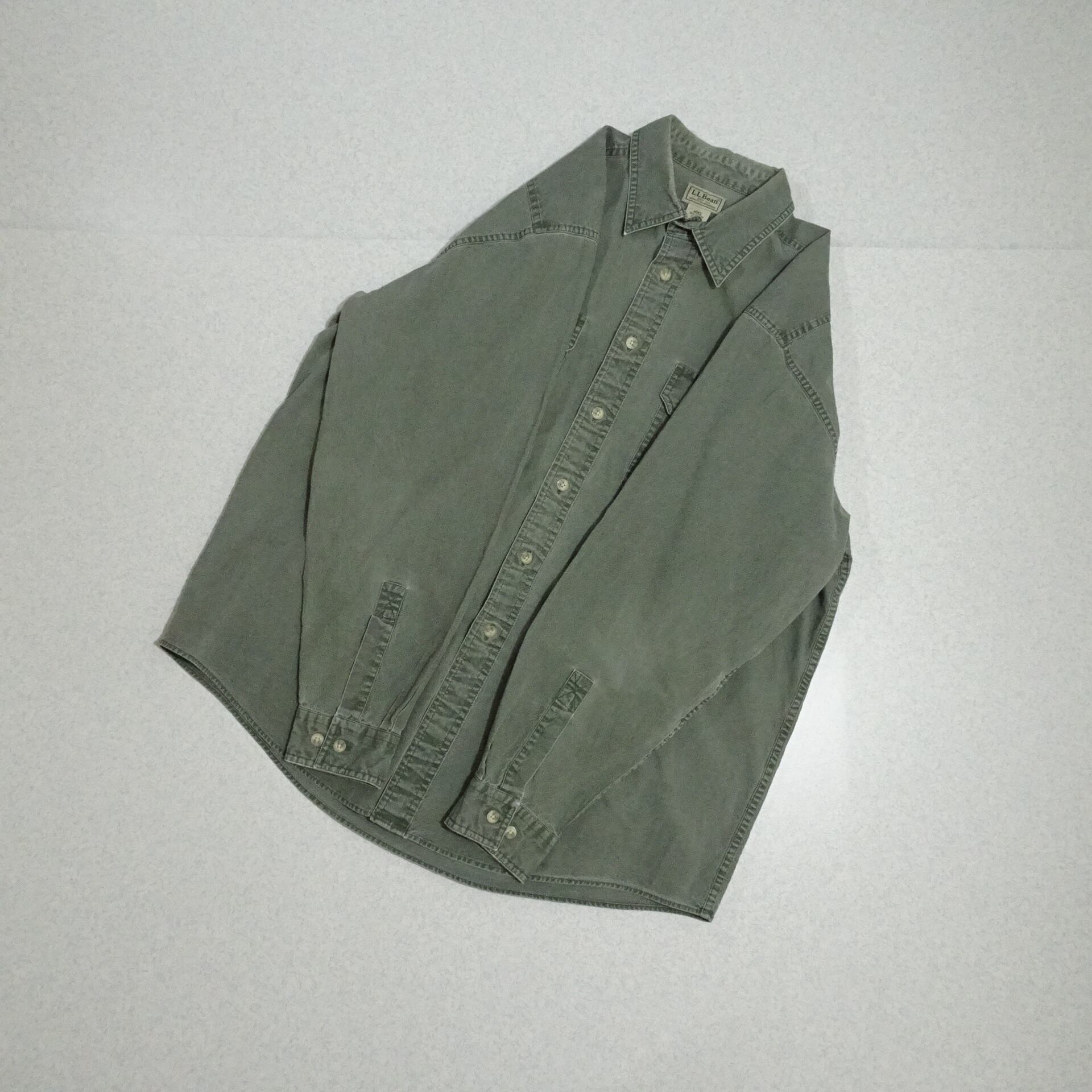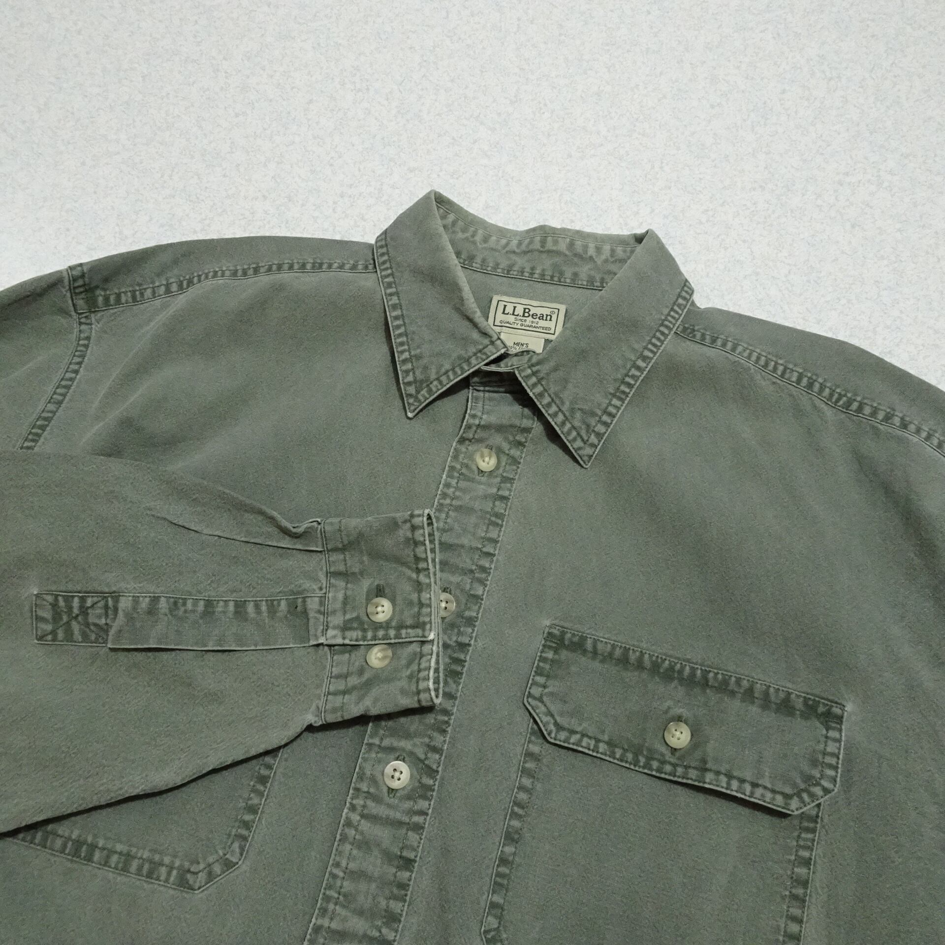90s L.L.Bean エルエルビーン 長袖ワークシャツ ガーメントダイ シャンブレー 90年代 グリーン系