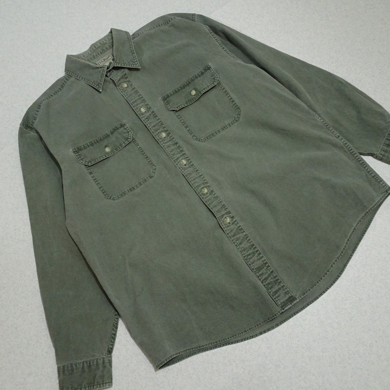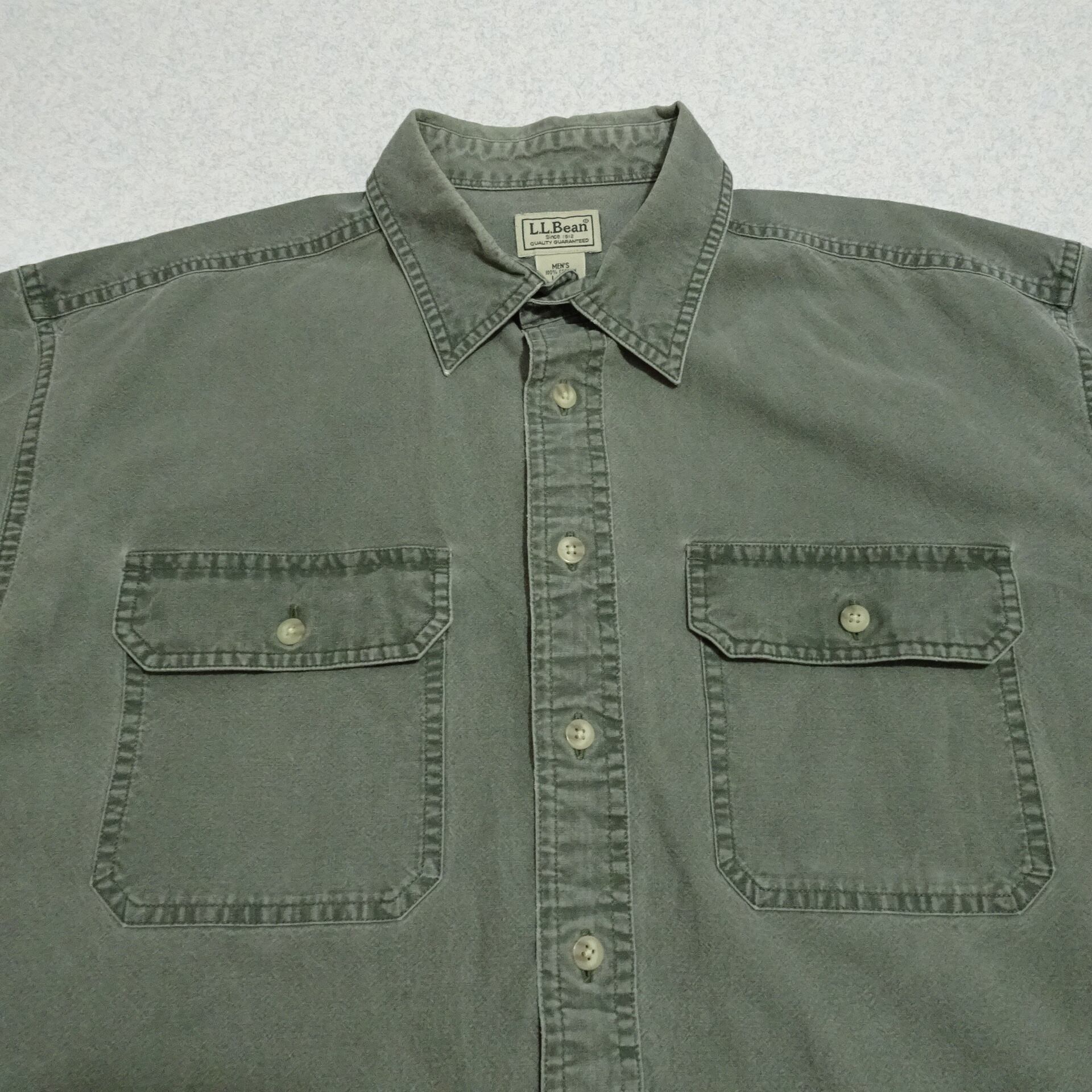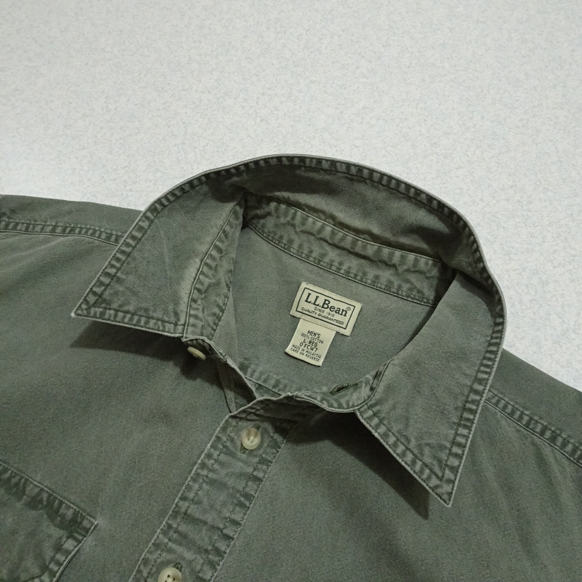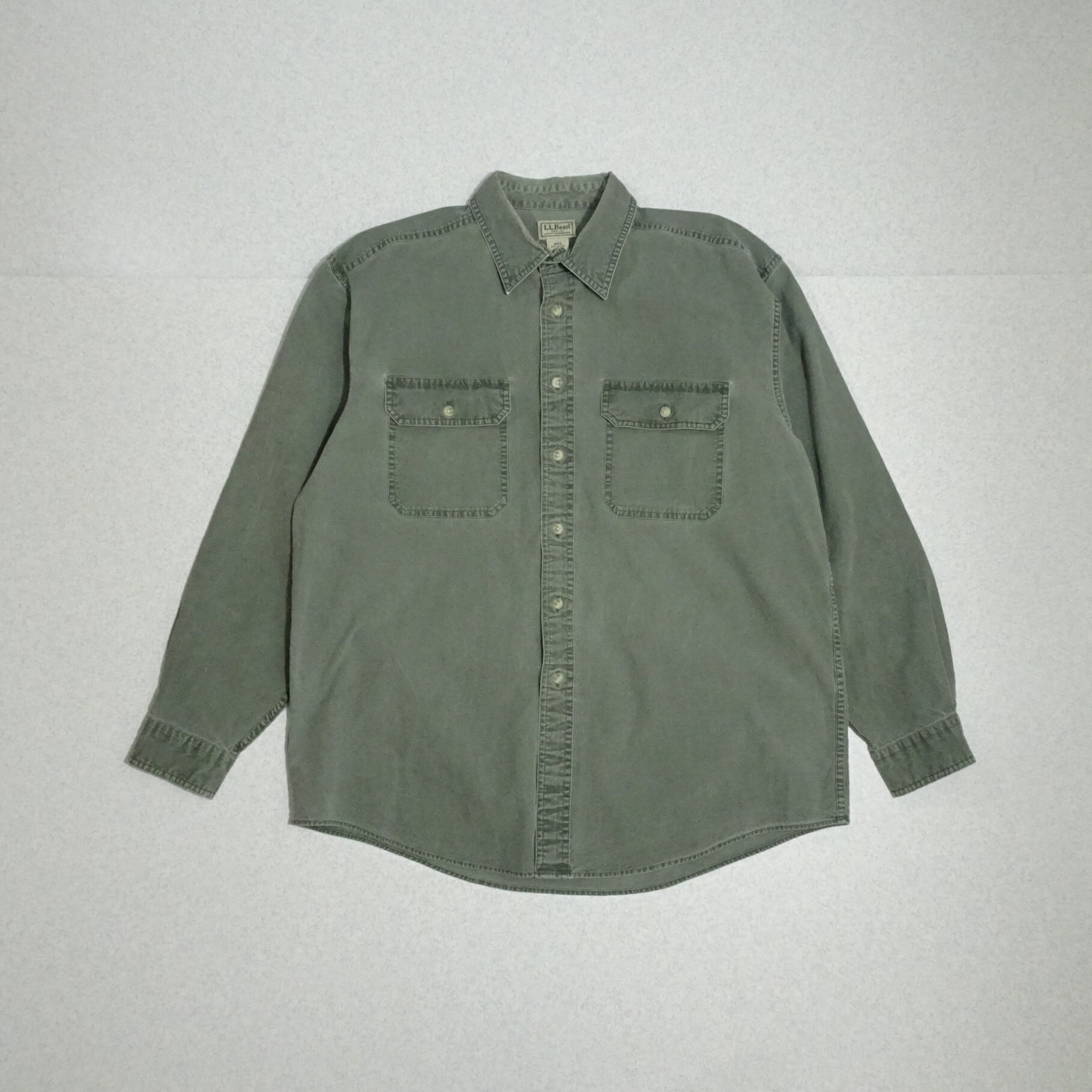 90s L.L.Bean エルエルビーン 長袖ワークシャツ ガーメントダイ シャンブレー 90年代 グリーン系