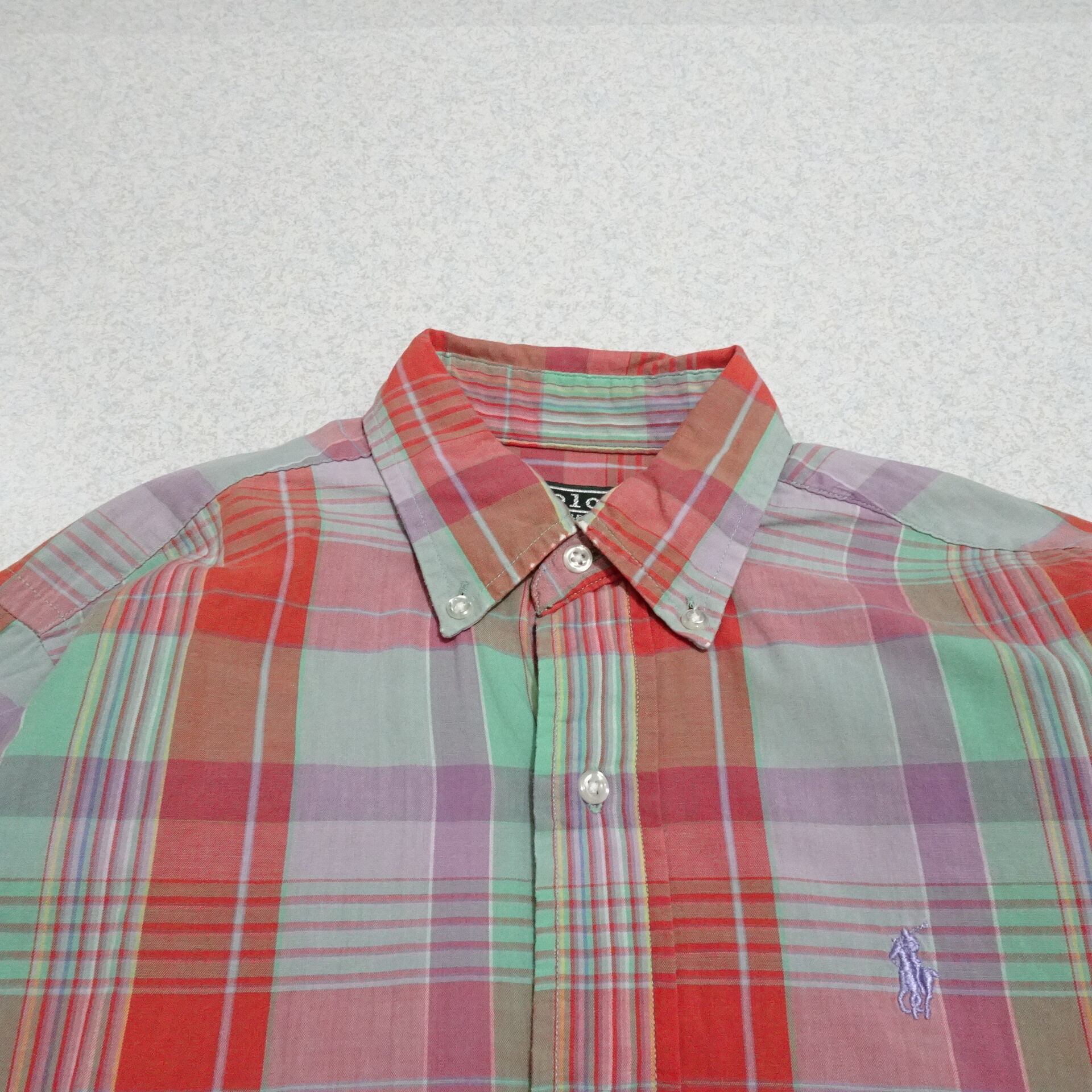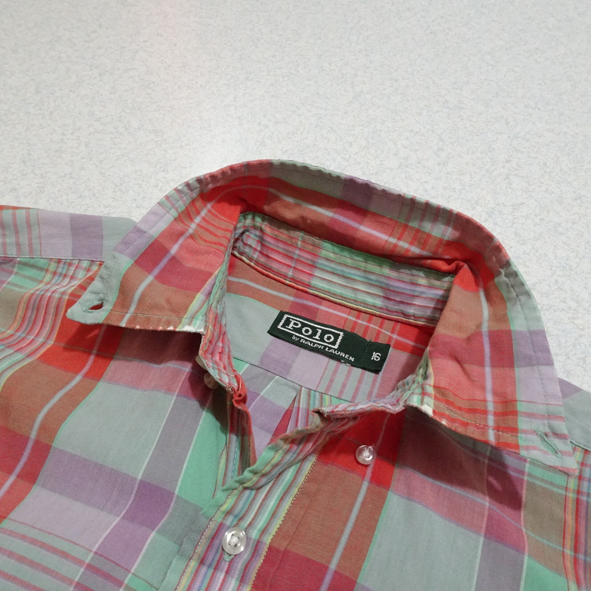90s- キッズ Ralph Lauren ラルフローレン 長袖シャツ チェック柄 90年代~ オレンジ ピンク系