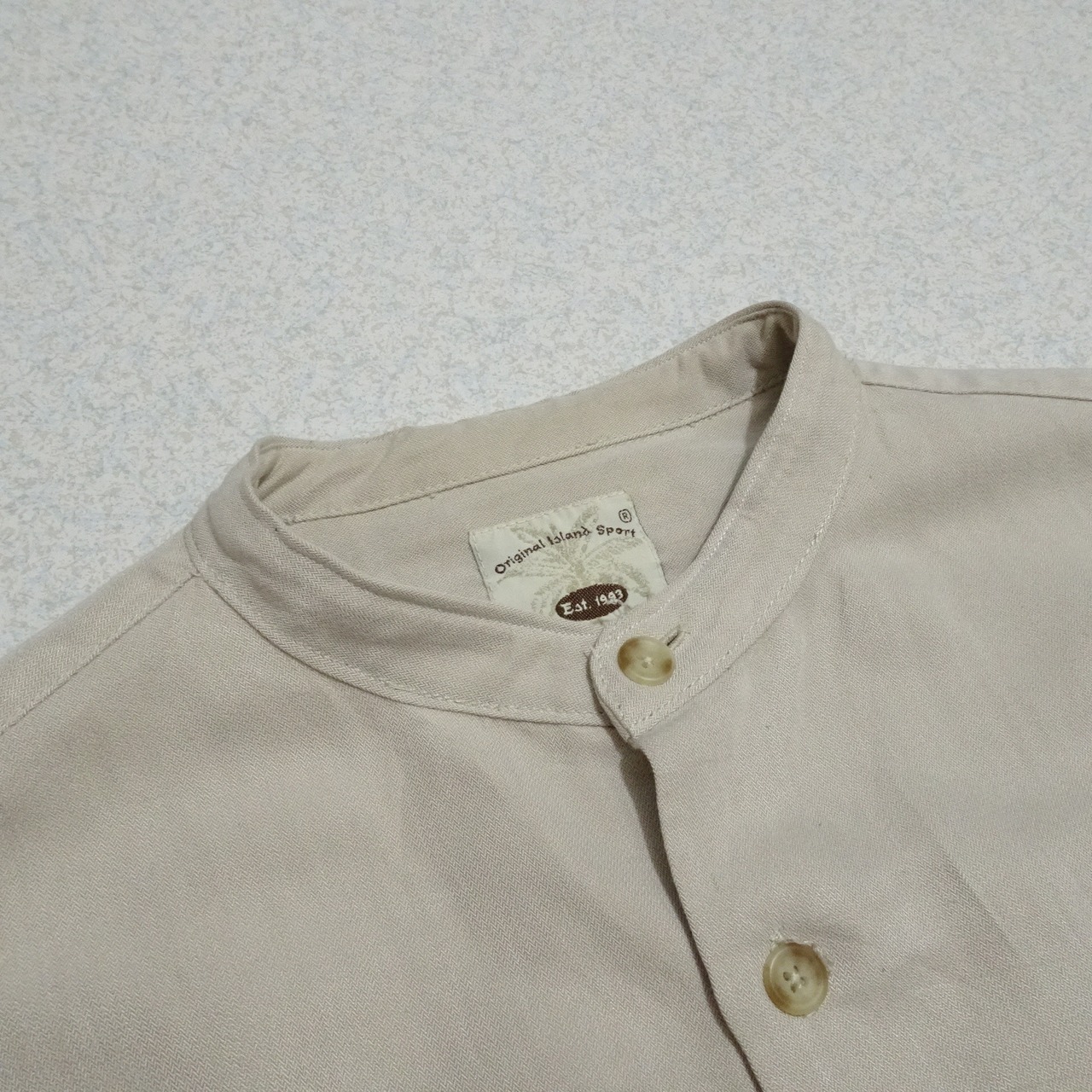 Original Island Sport / Ls Shirt / Rayon / Band Collar / Sand Beige / 90s / Vintage / Made in India
