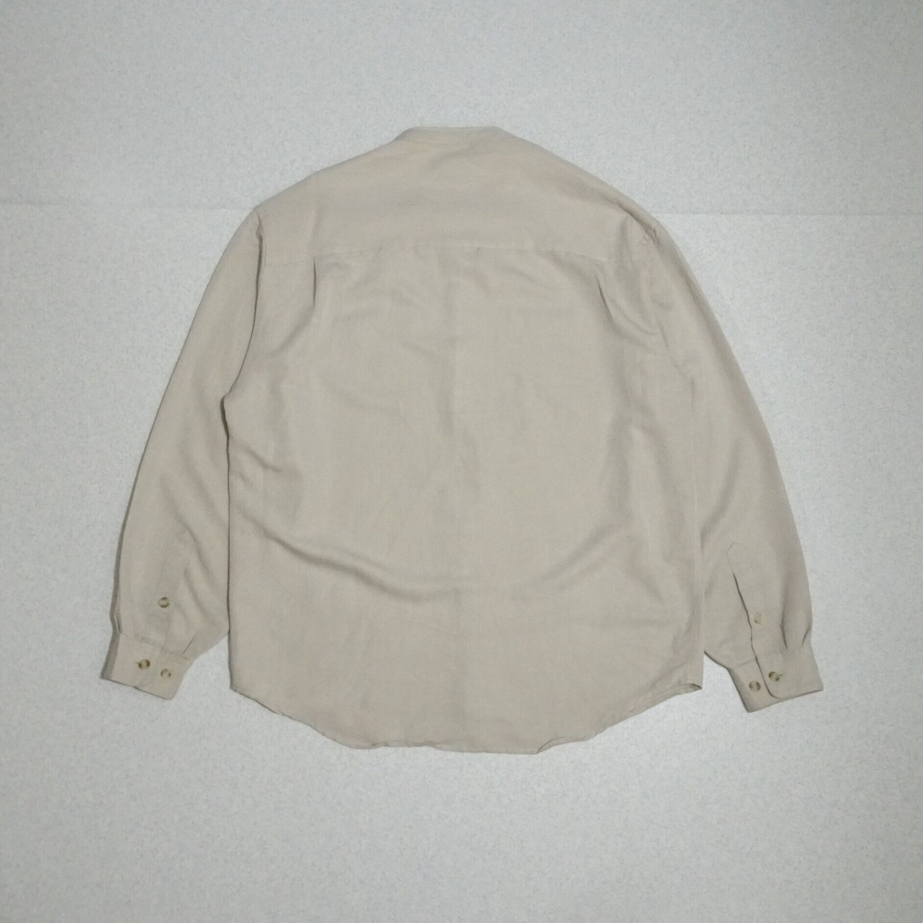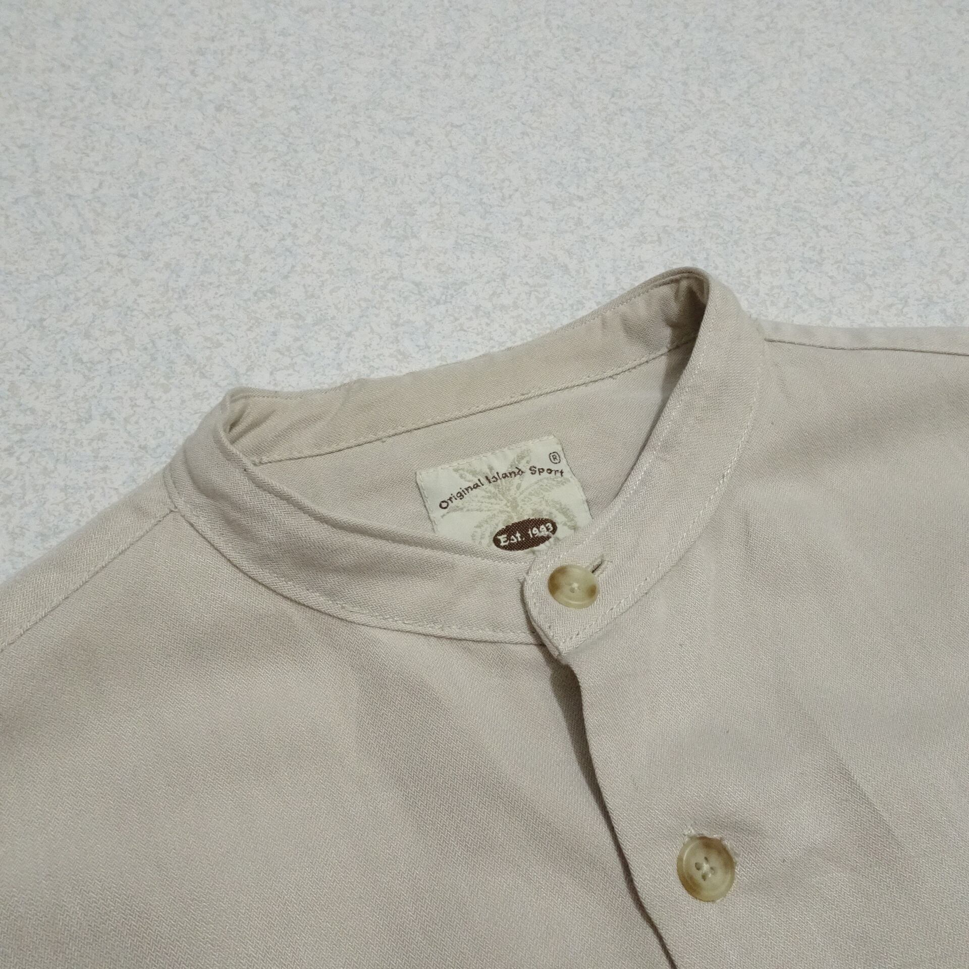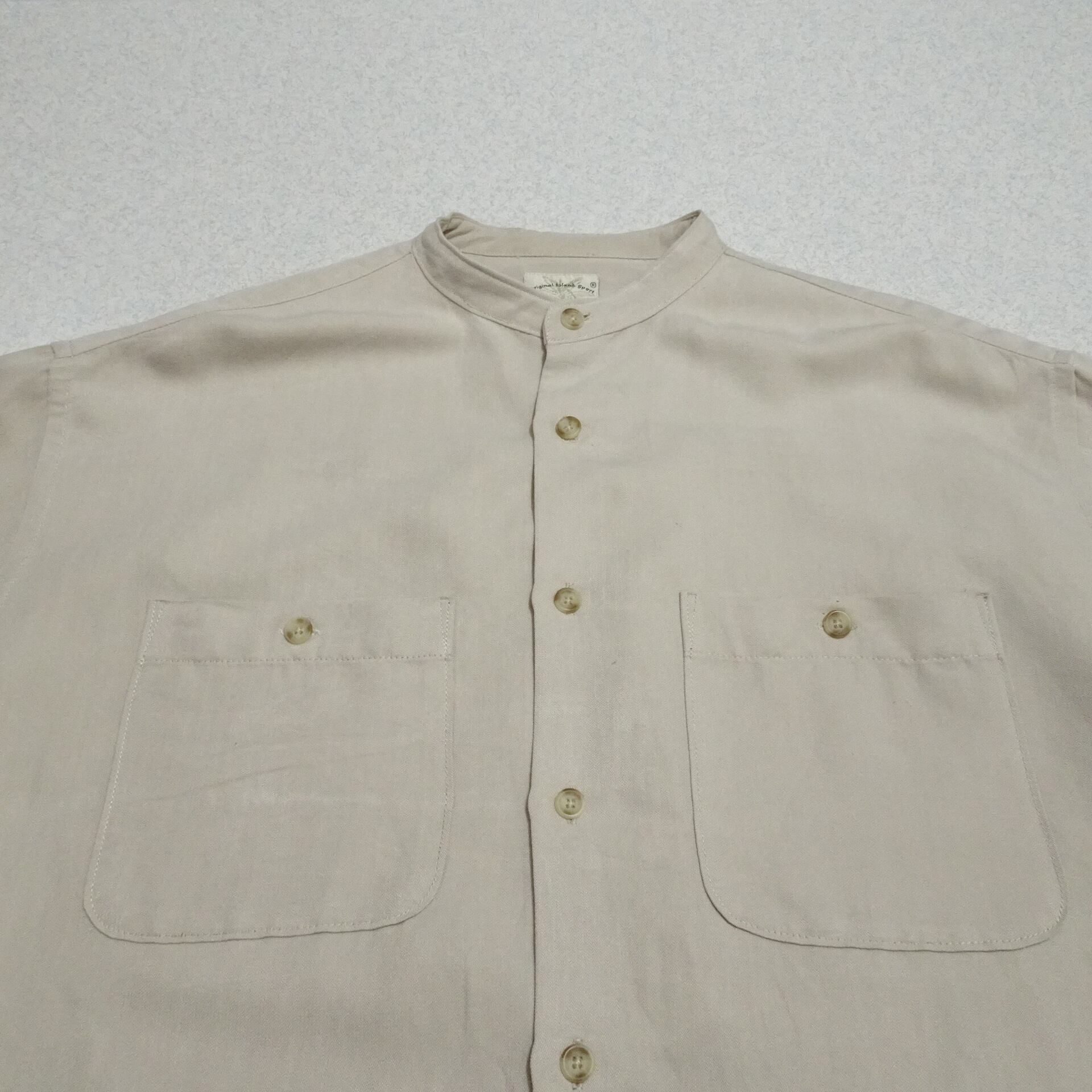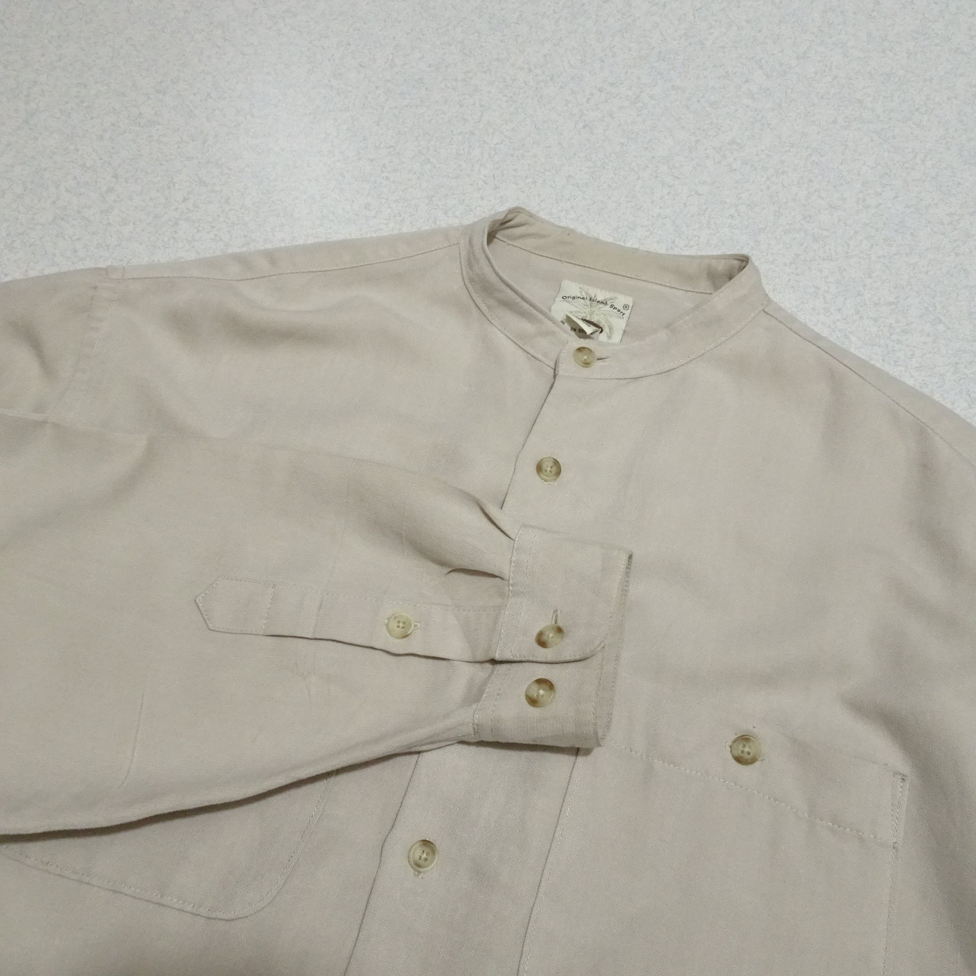 90s 香港製 Original Island Sport オリジナルアイランド スポーツ 長袖シャツ レーヨン混 バンドカラー 90年代 サンドベージュ系