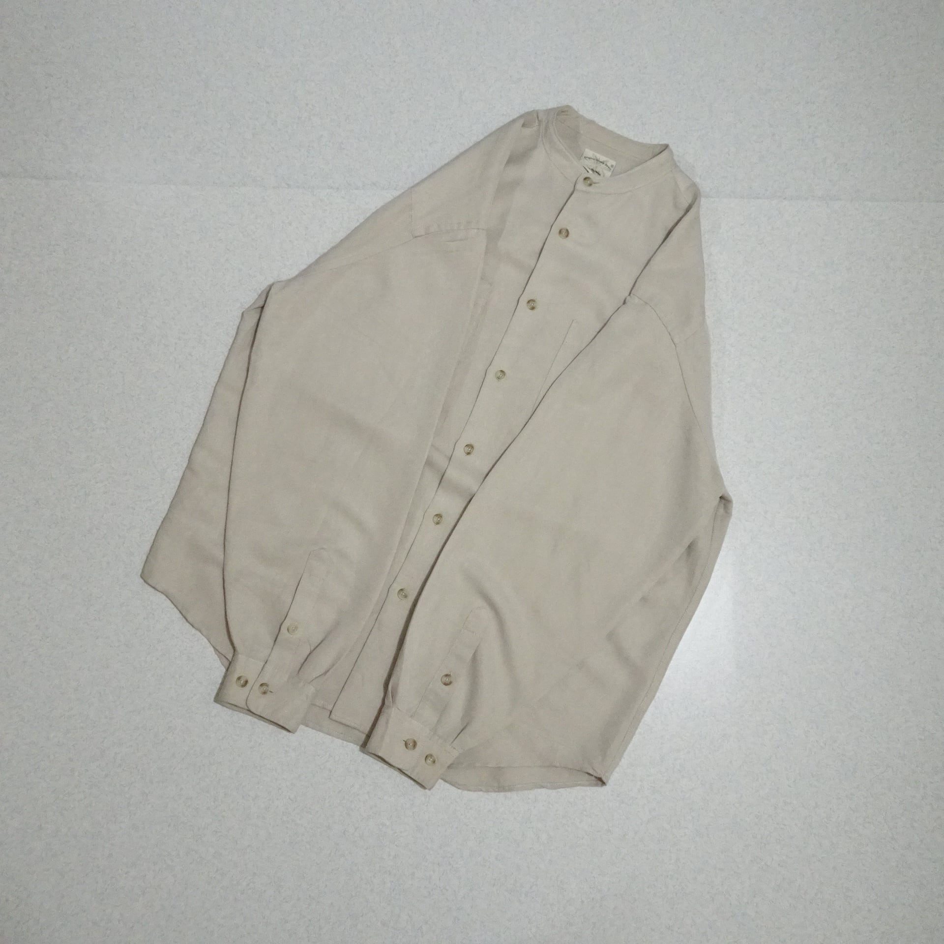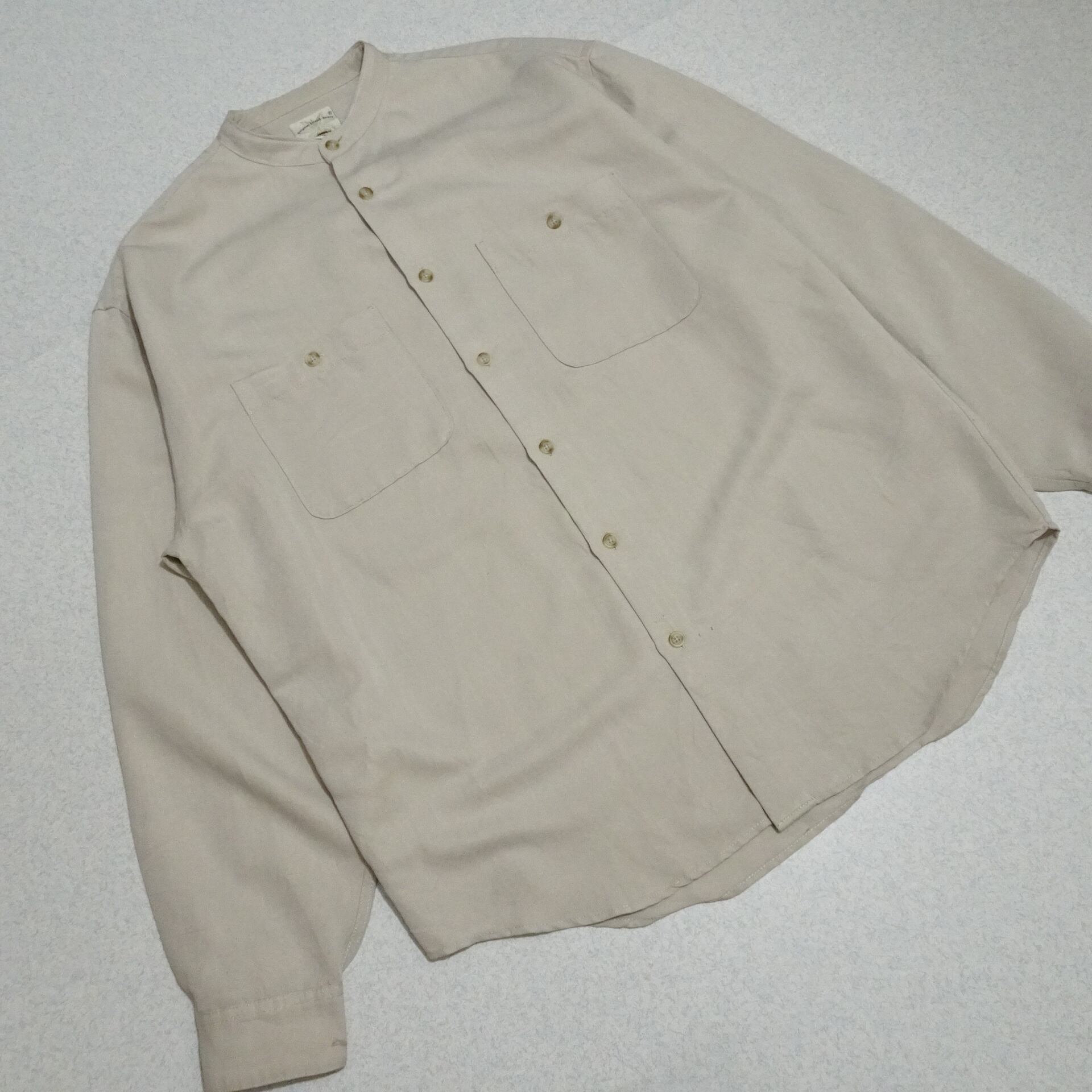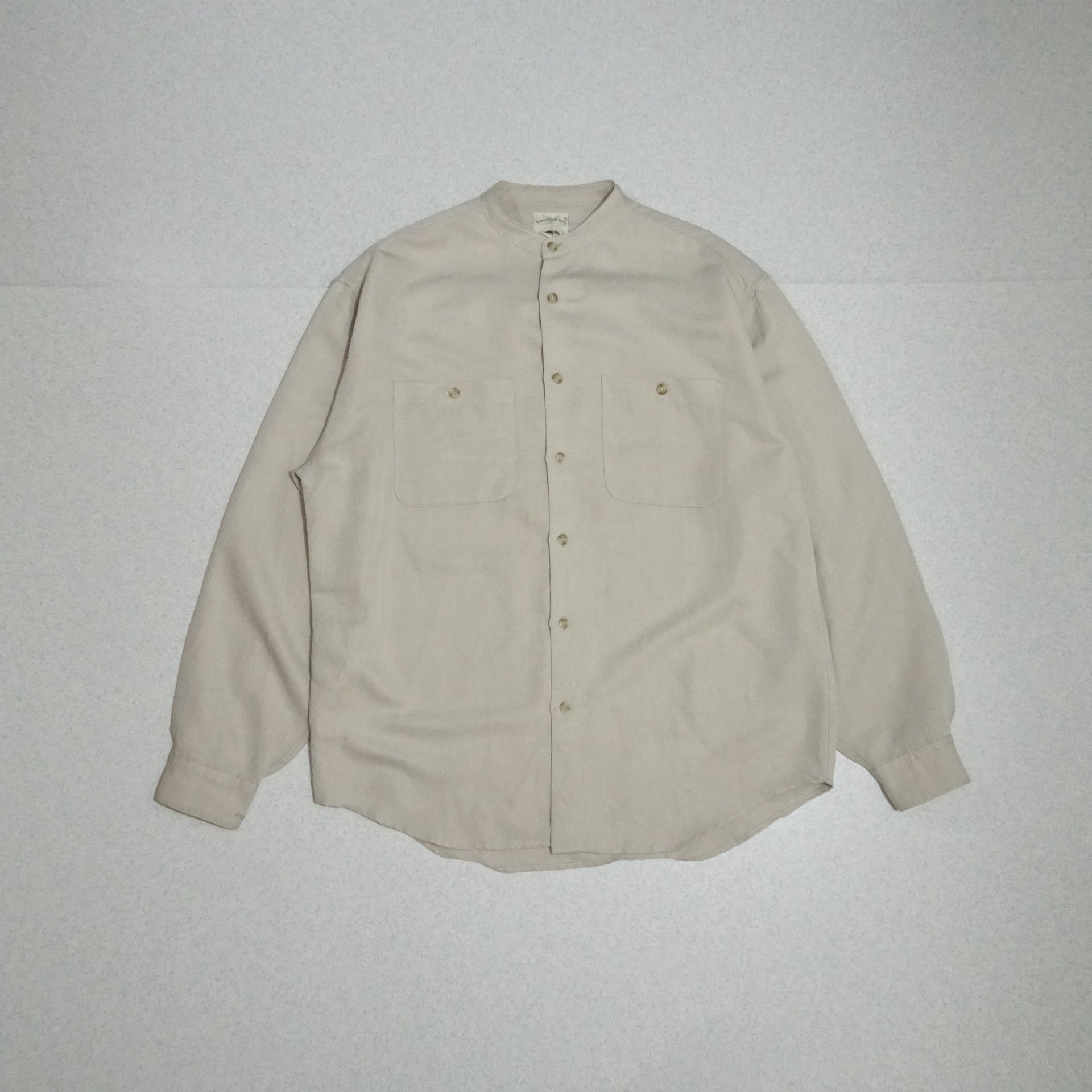 90s 香港製 Original Island Sport オリジナルアイランド スポーツ 長袖シャツ レーヨン混 バンドカラー 90年代 サンドベージュ系