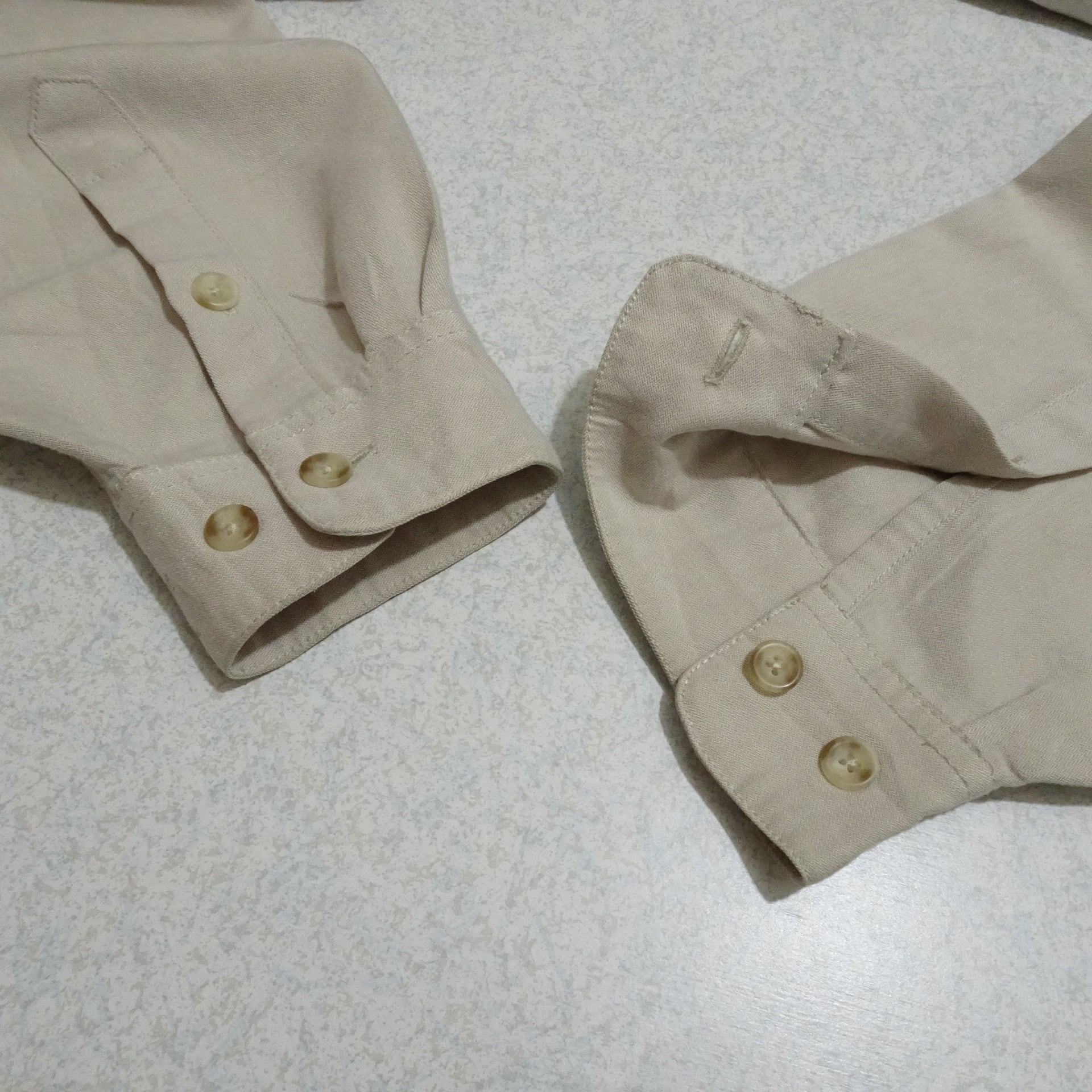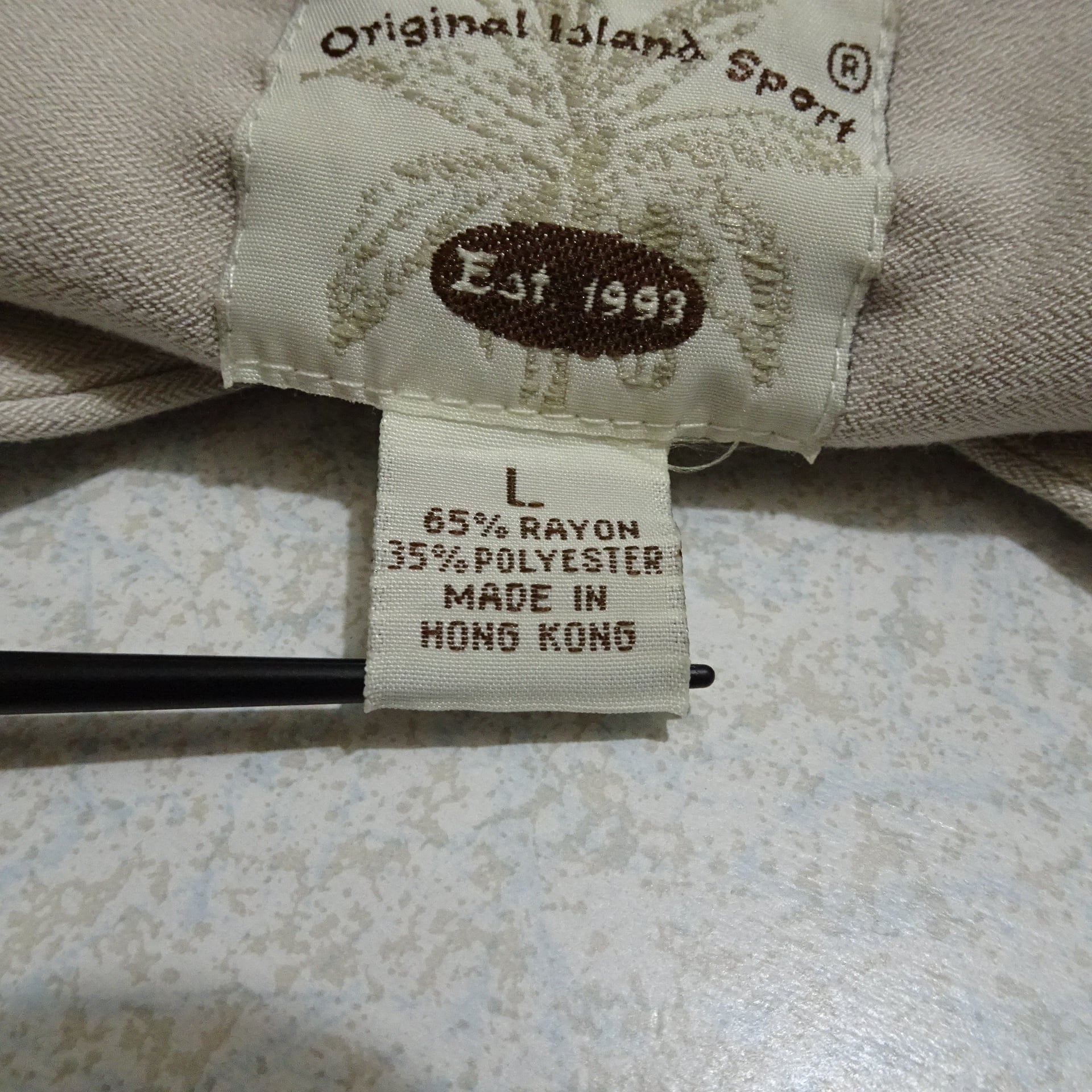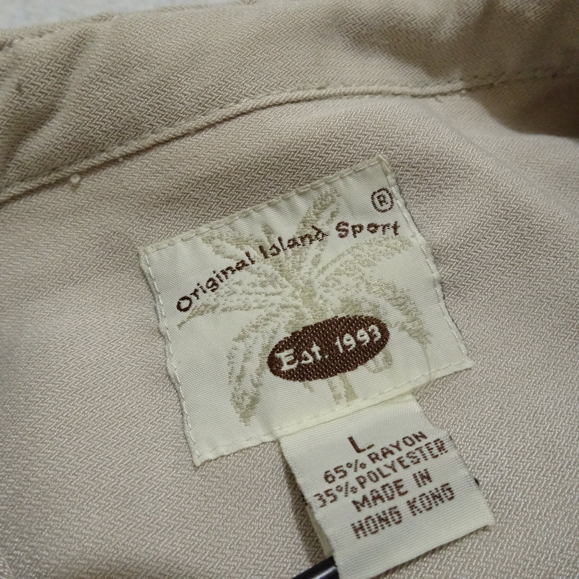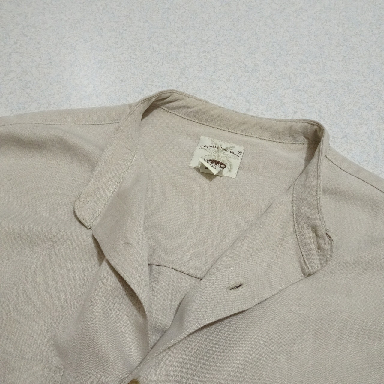 90s 香港製 Original Island Sport オリジナルアイランド スポーツ 長袖シャツ レーヨン混 バンドカラー 90年代 サンドベージュ系