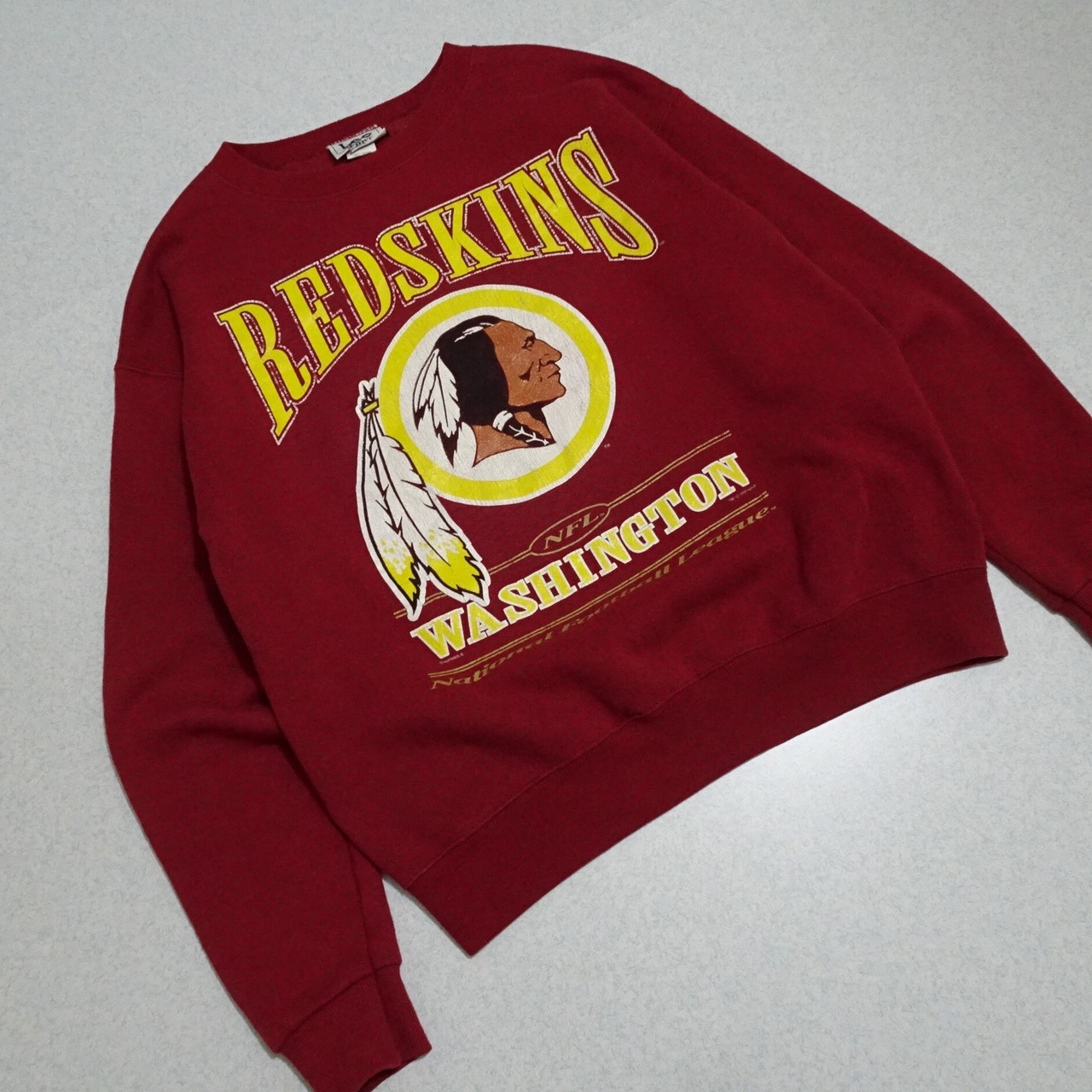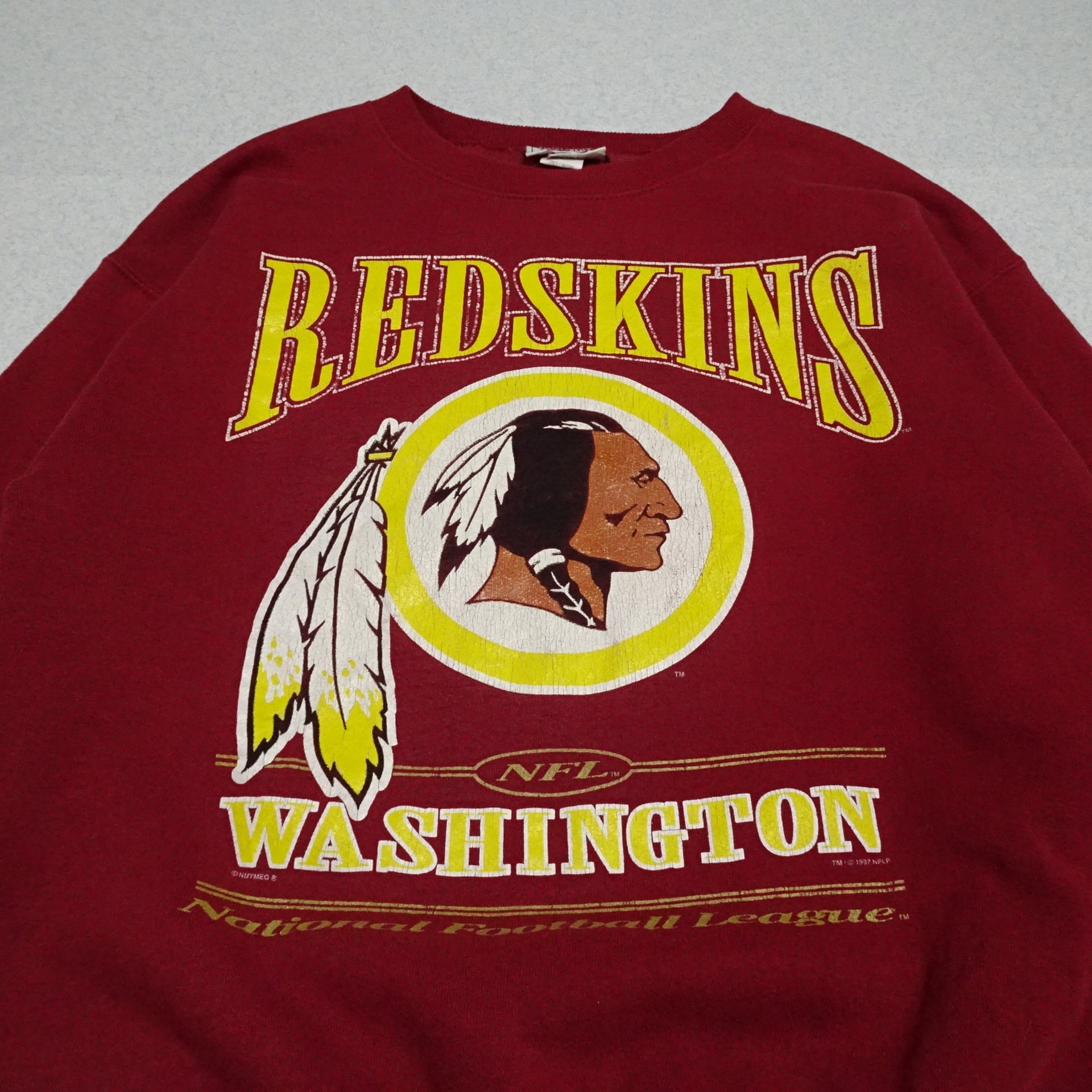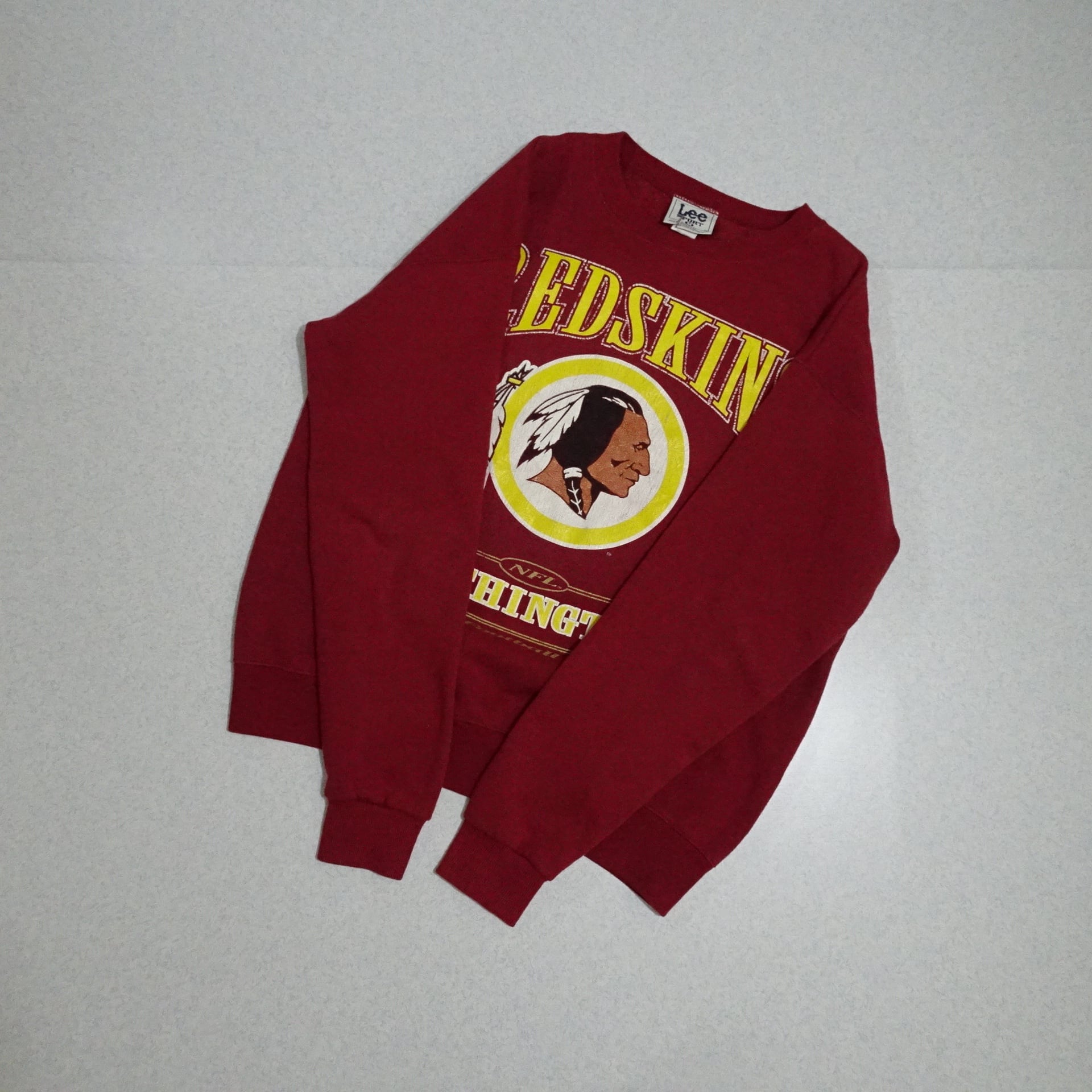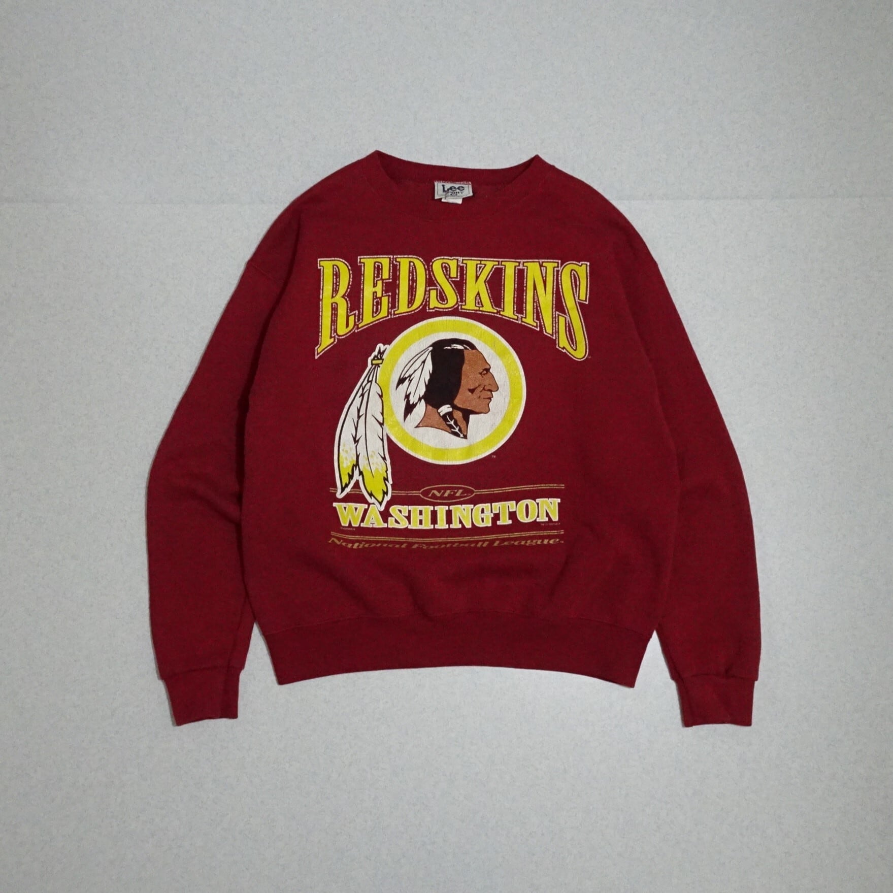 90s USA製 NFL Redskins レッドスキンズ 長袖スウェット Lee リー NATMEG ナツメグ プリント 90年代 レッド・ボルドー系