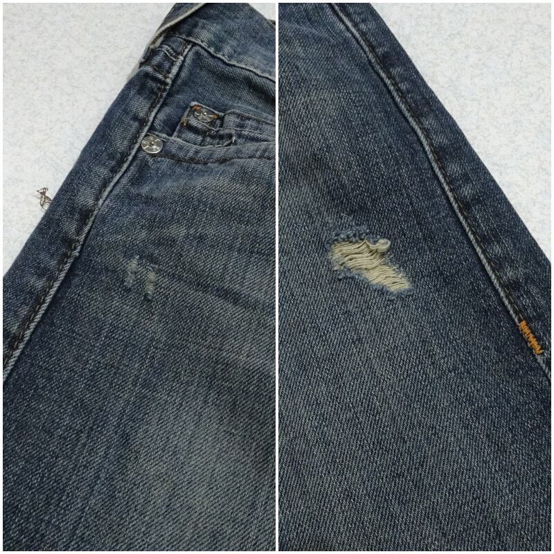 ステッチにほつれなどありますが、ヒゲや縦落ち感もあり雰囲気も良い一本です。