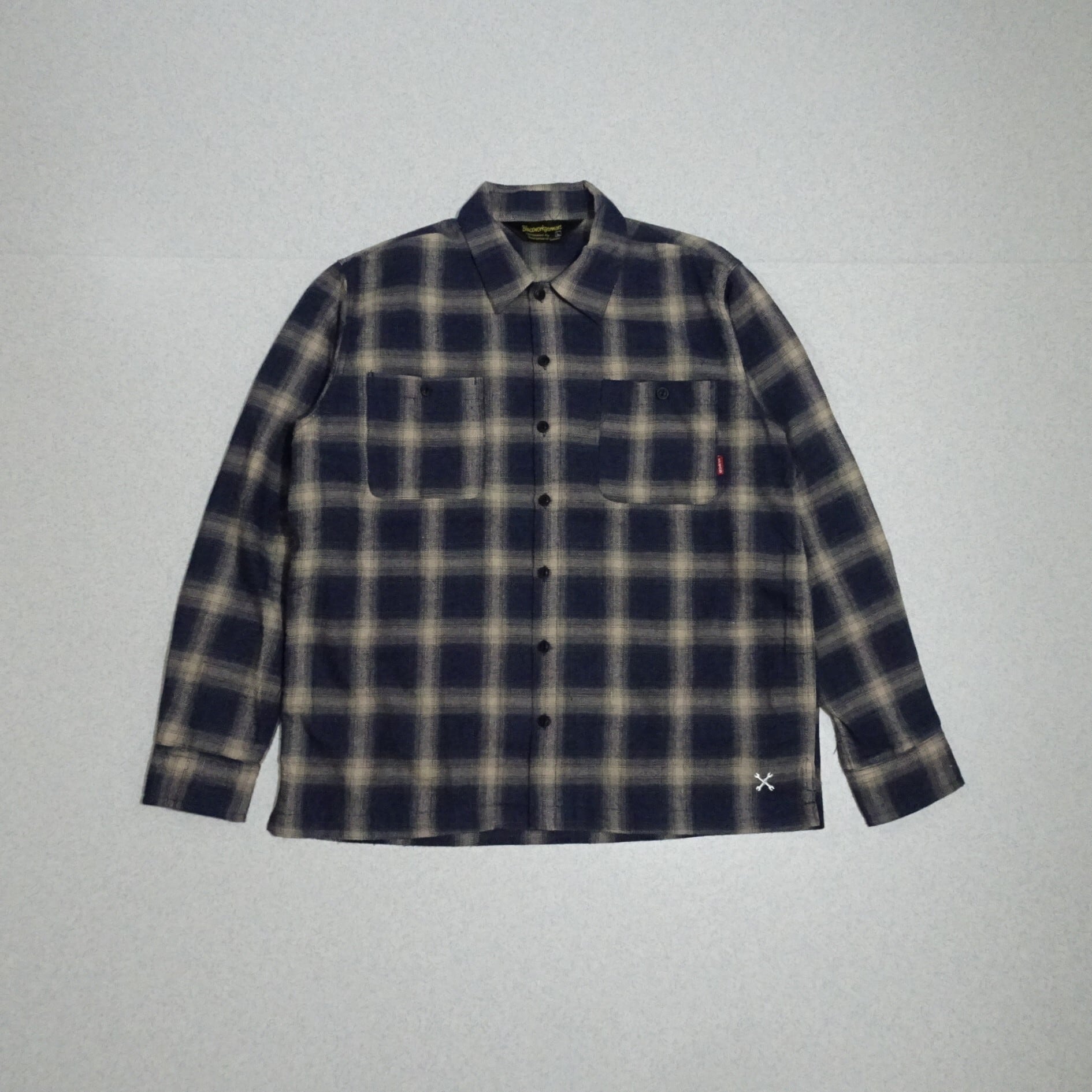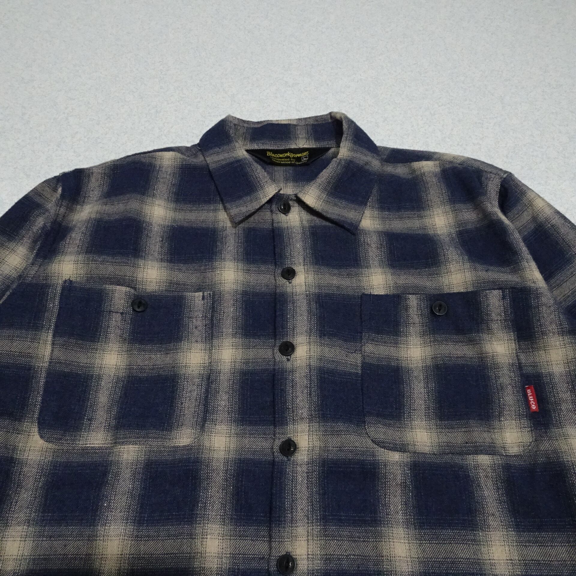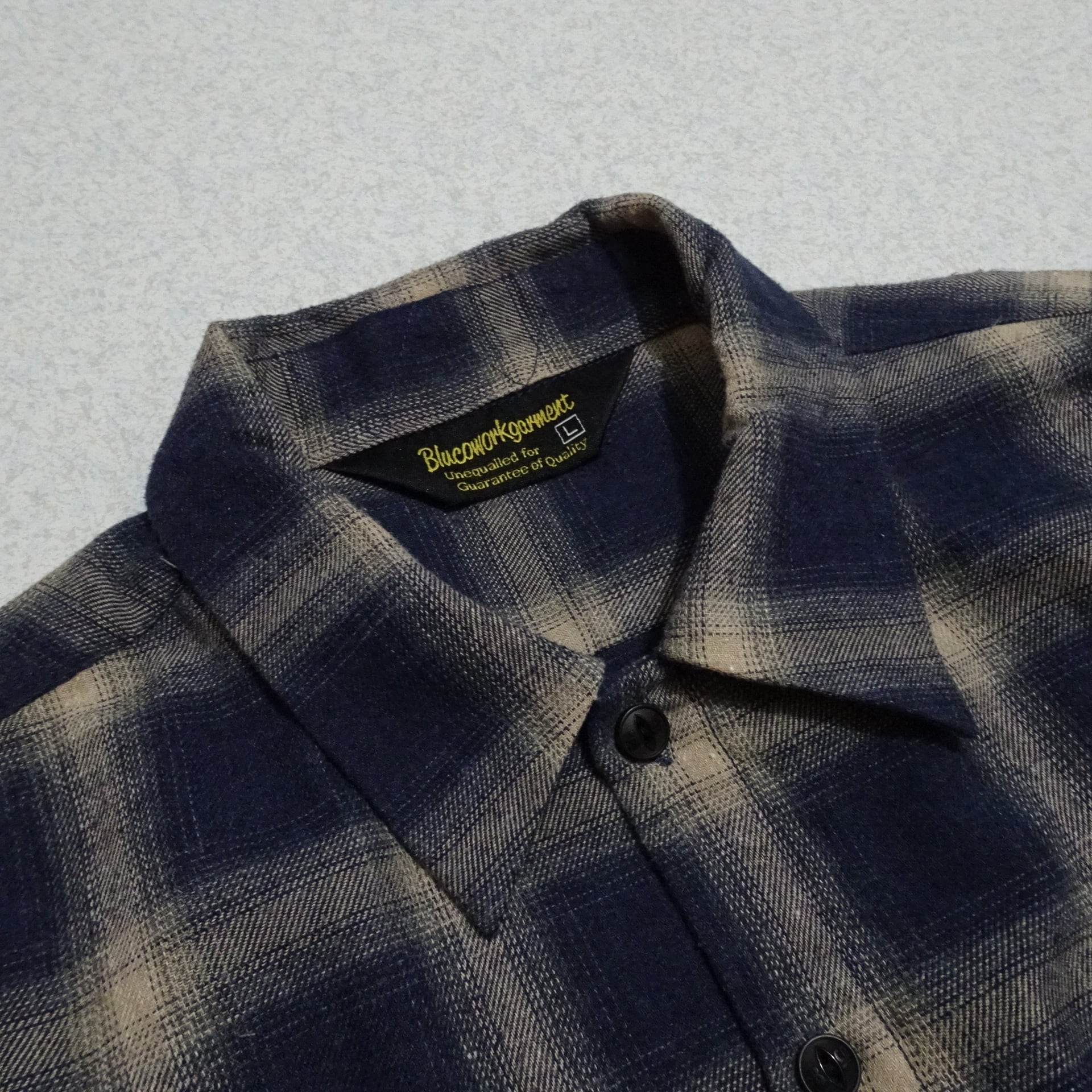Bluco Work Garment / Ls Shirt / Open Collar / Ombre Check / Work / Blue / 00s / Vintage