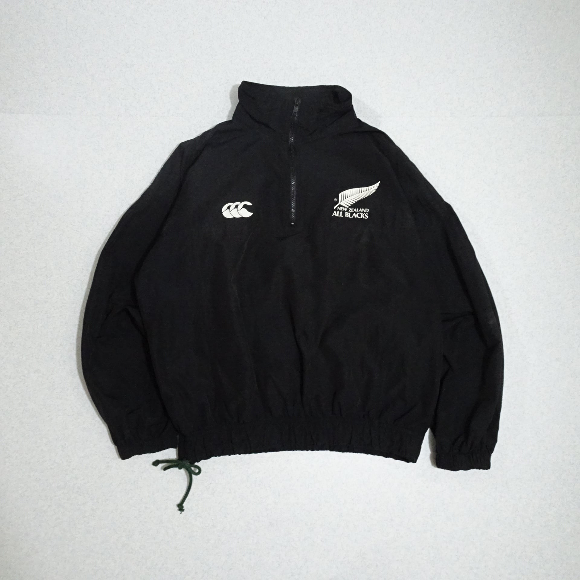 90s ニュージーランド製 Canterbury カンタベリー オールブラックス ナイロンジャケット ラグビー ハーフジップ 90年代 ブラック系