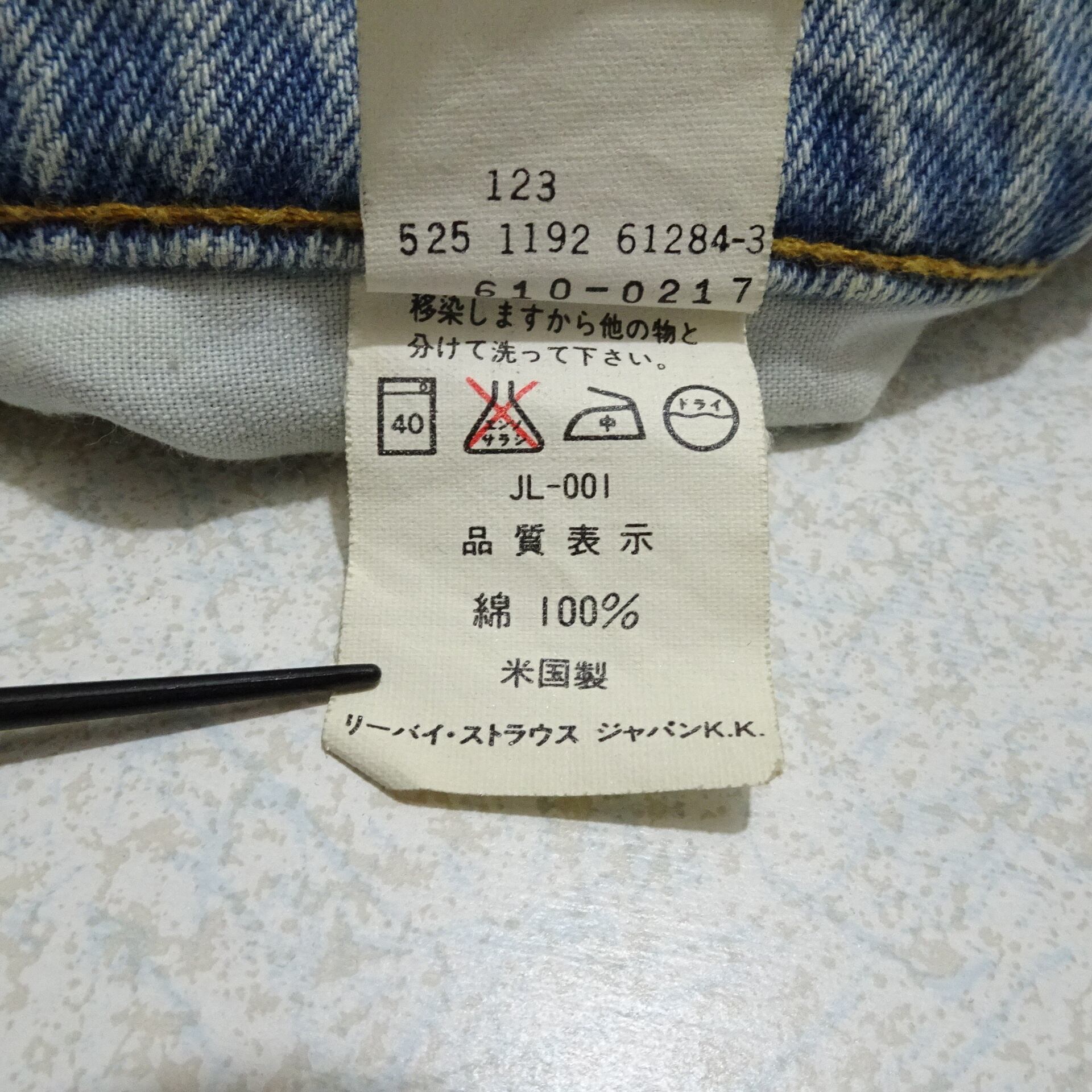 こちらはアメリカ製で、「YKK USA」ジッパー仕様の525工場(エルパソ)。