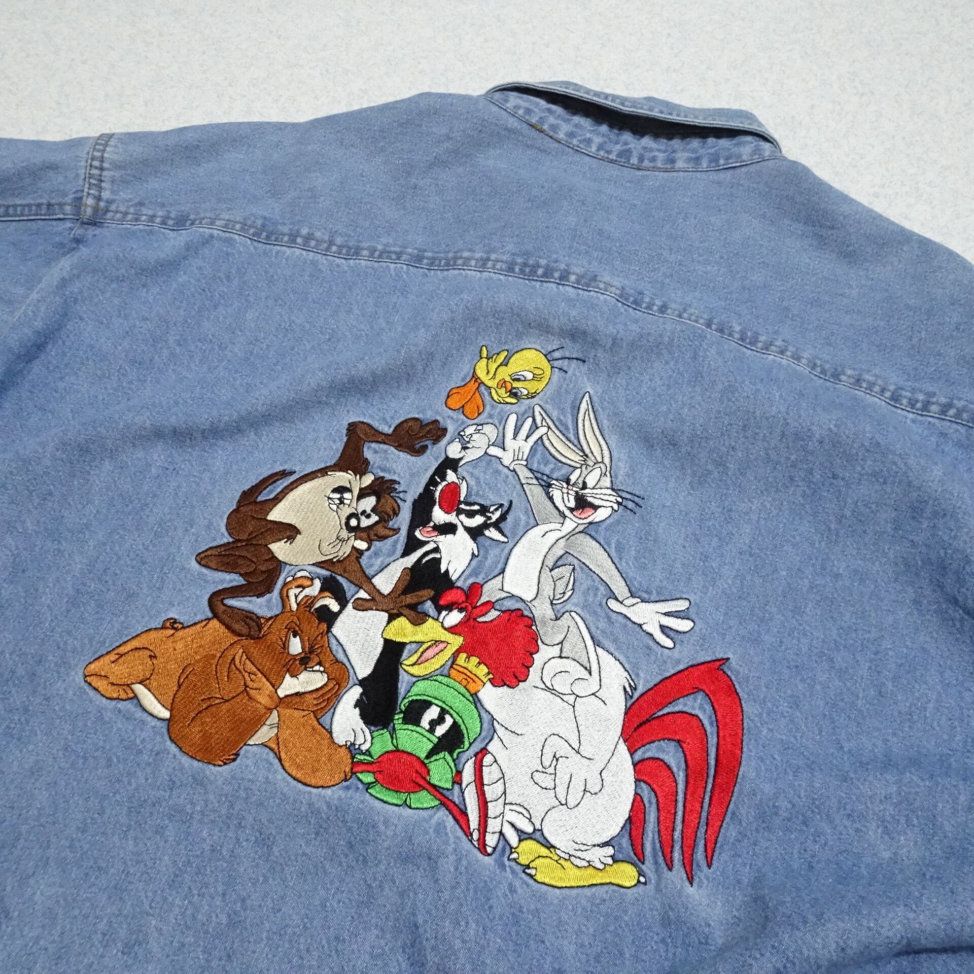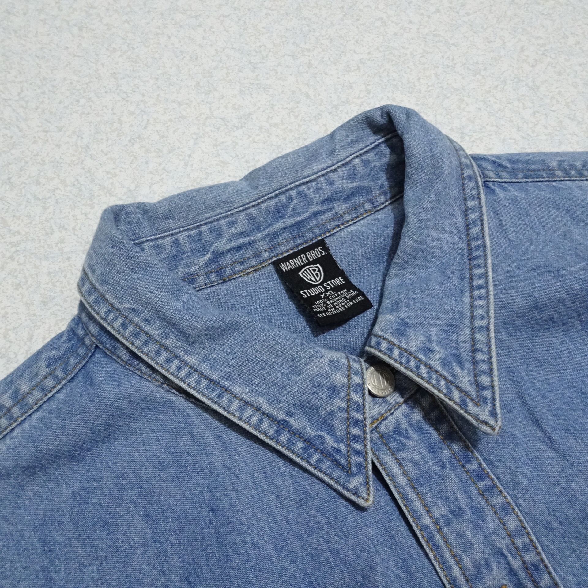 Warner Bros. / Loony Tunes / Ls Shirt / Metal Button / Denim / Blue / 90s / Vintage / Made in Hong Kong