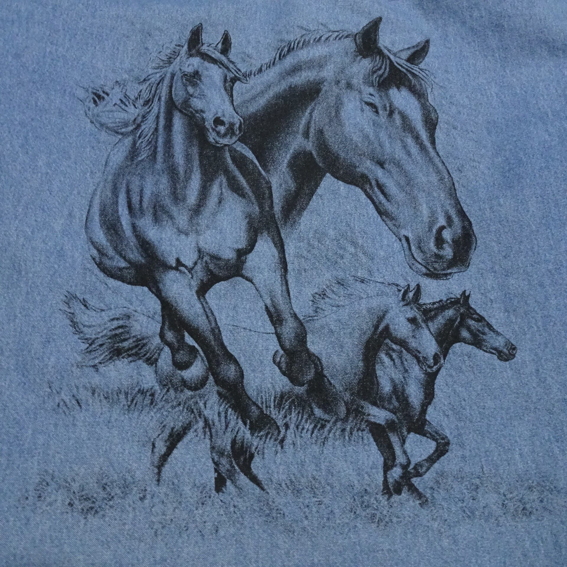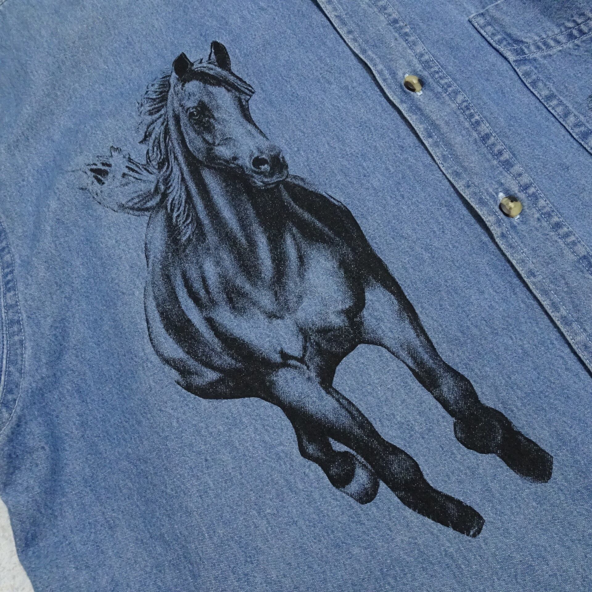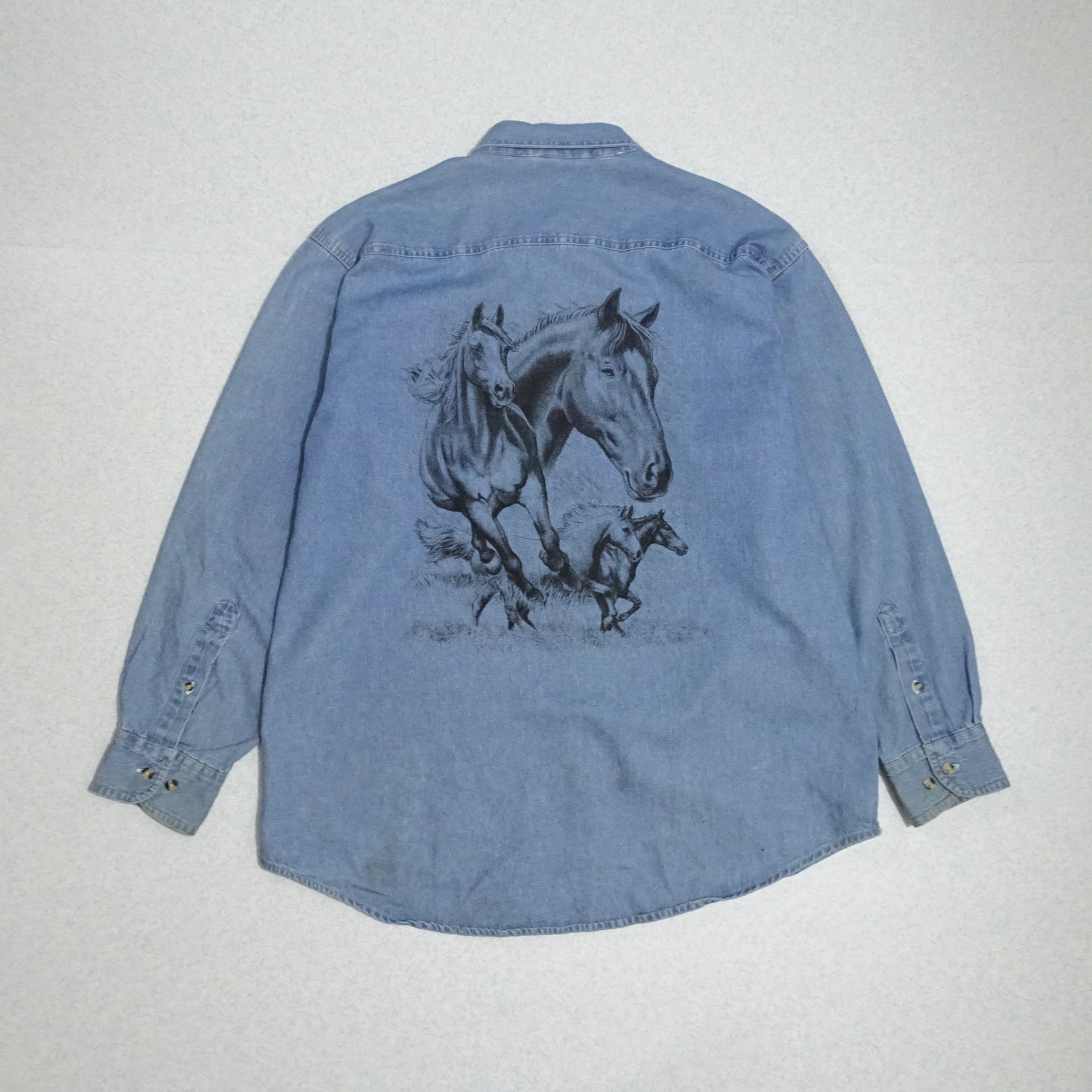 Outrageous sports / Ls Shirt / Horse Print / Denim / Blue / 90s / Vintage