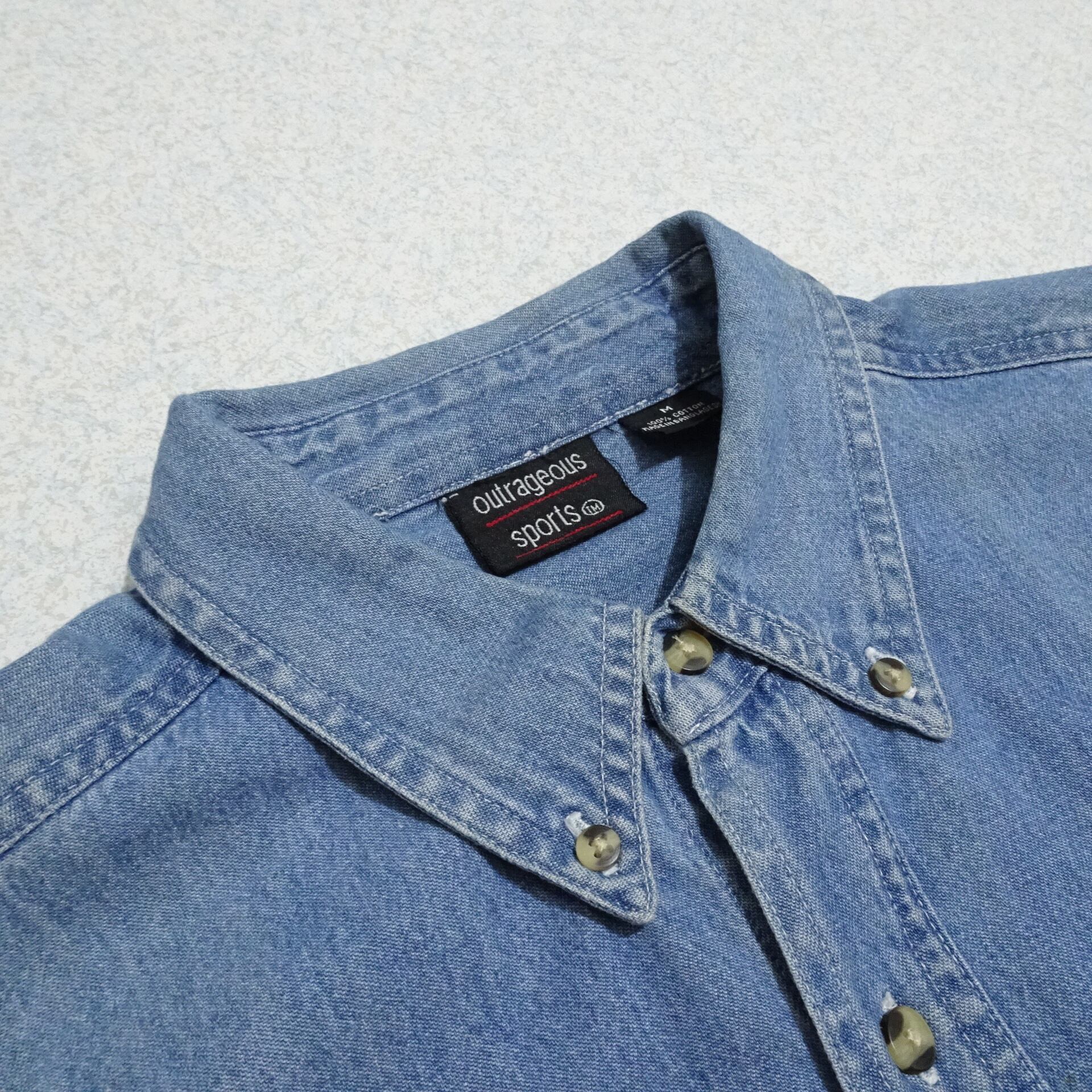 90年代ヴィンテージ、Outrageous sportsの長袖デニムシャツです。