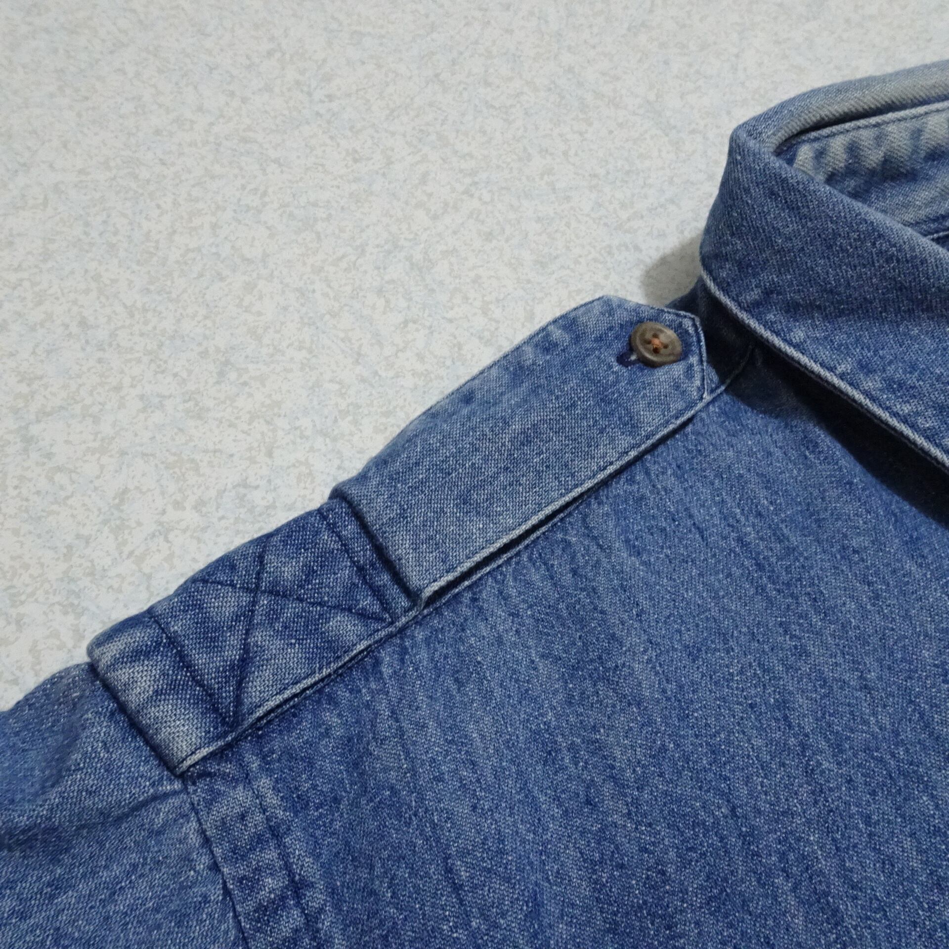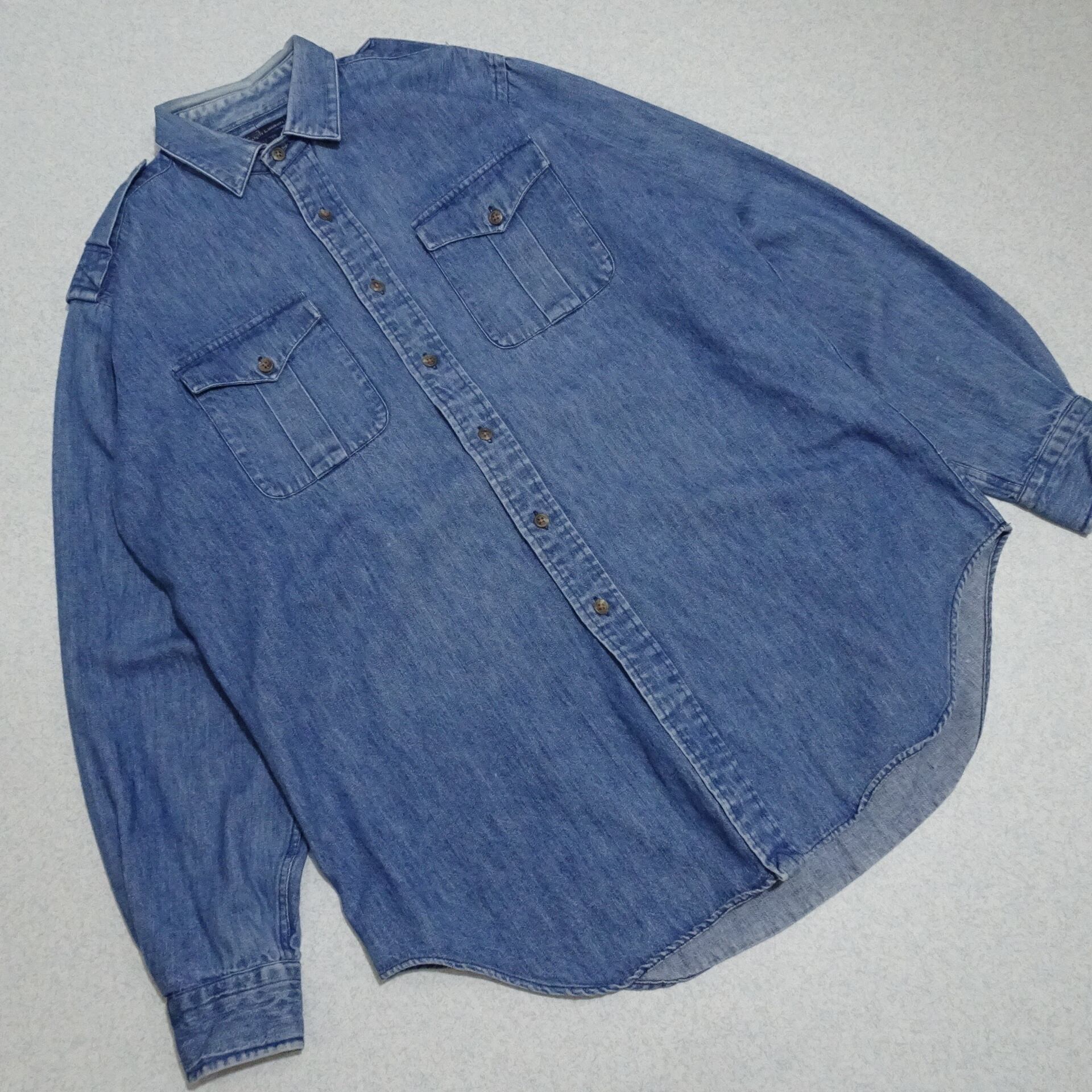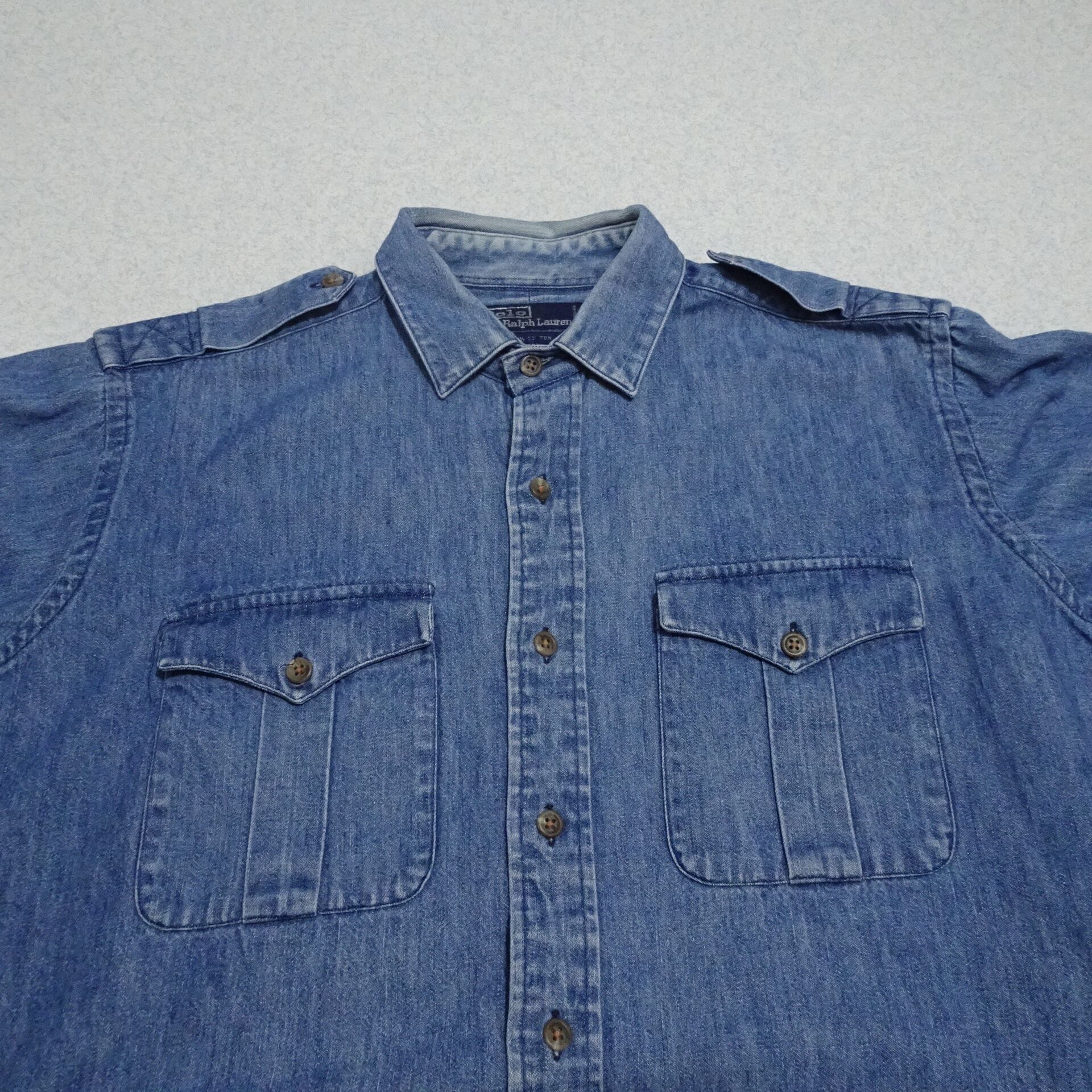 90s 香港製 Ralph Lauren ラルフローレン 長袖デニムシャツ ダブルポケット エポレット 希少 90年代 ブルー系