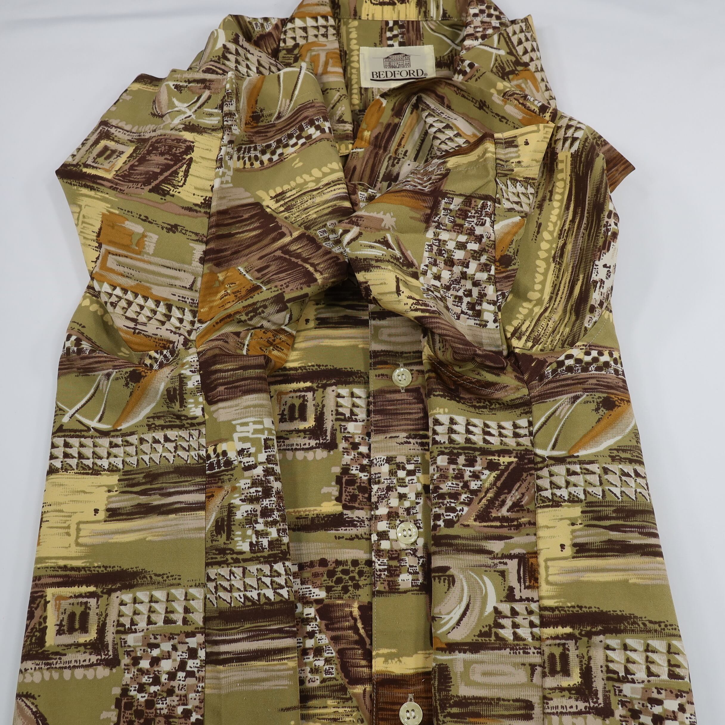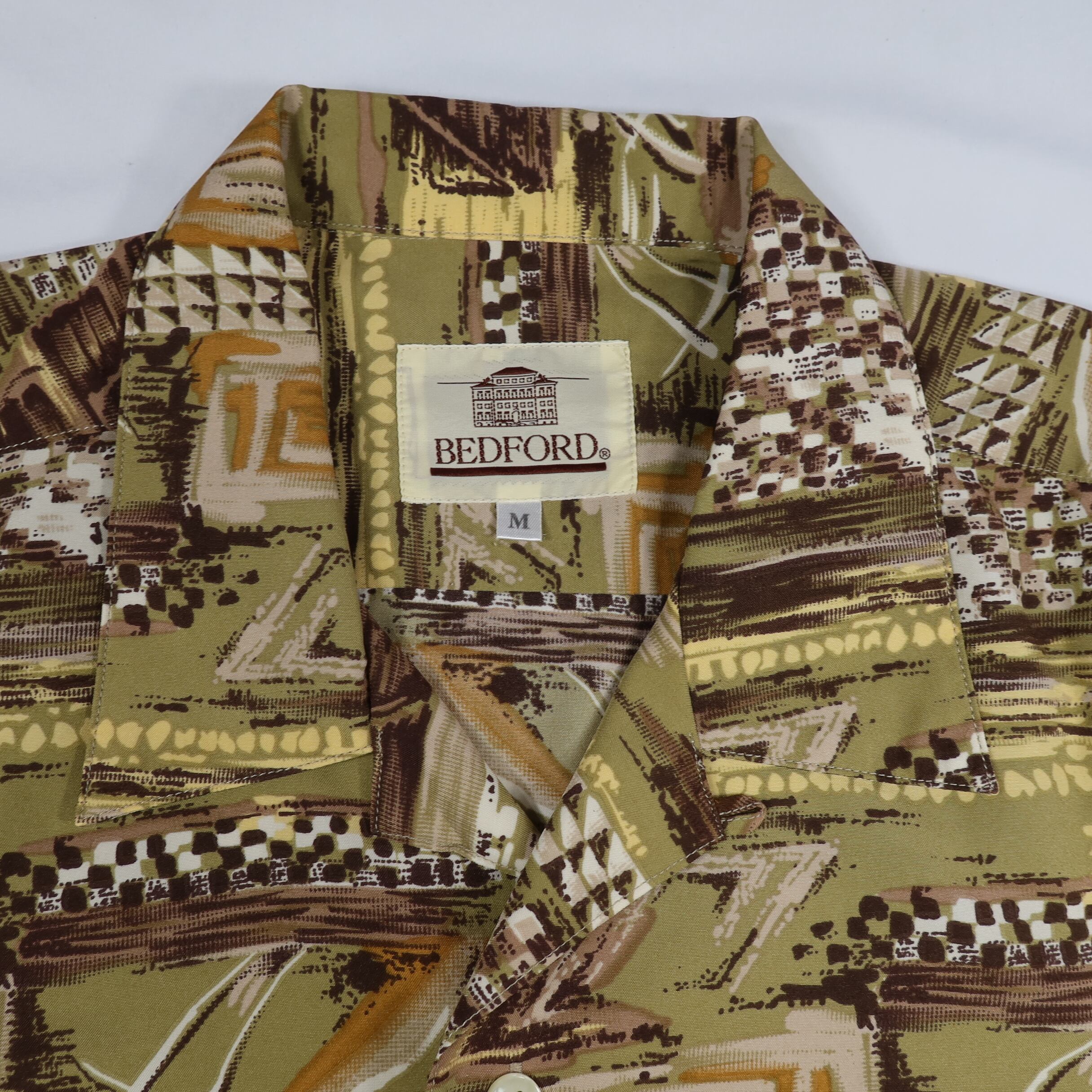 90s Vintage US古着☆BEDFORD ベッドフォード 半袖 総柄 シャツ レトロ オールド SIZE M イエロー 90's 90年代