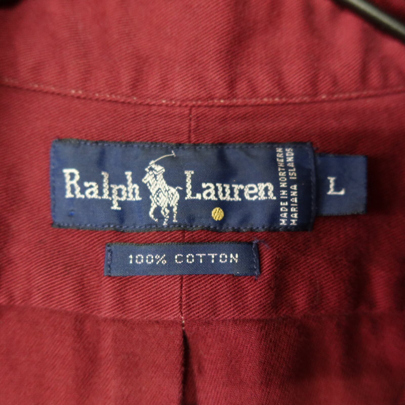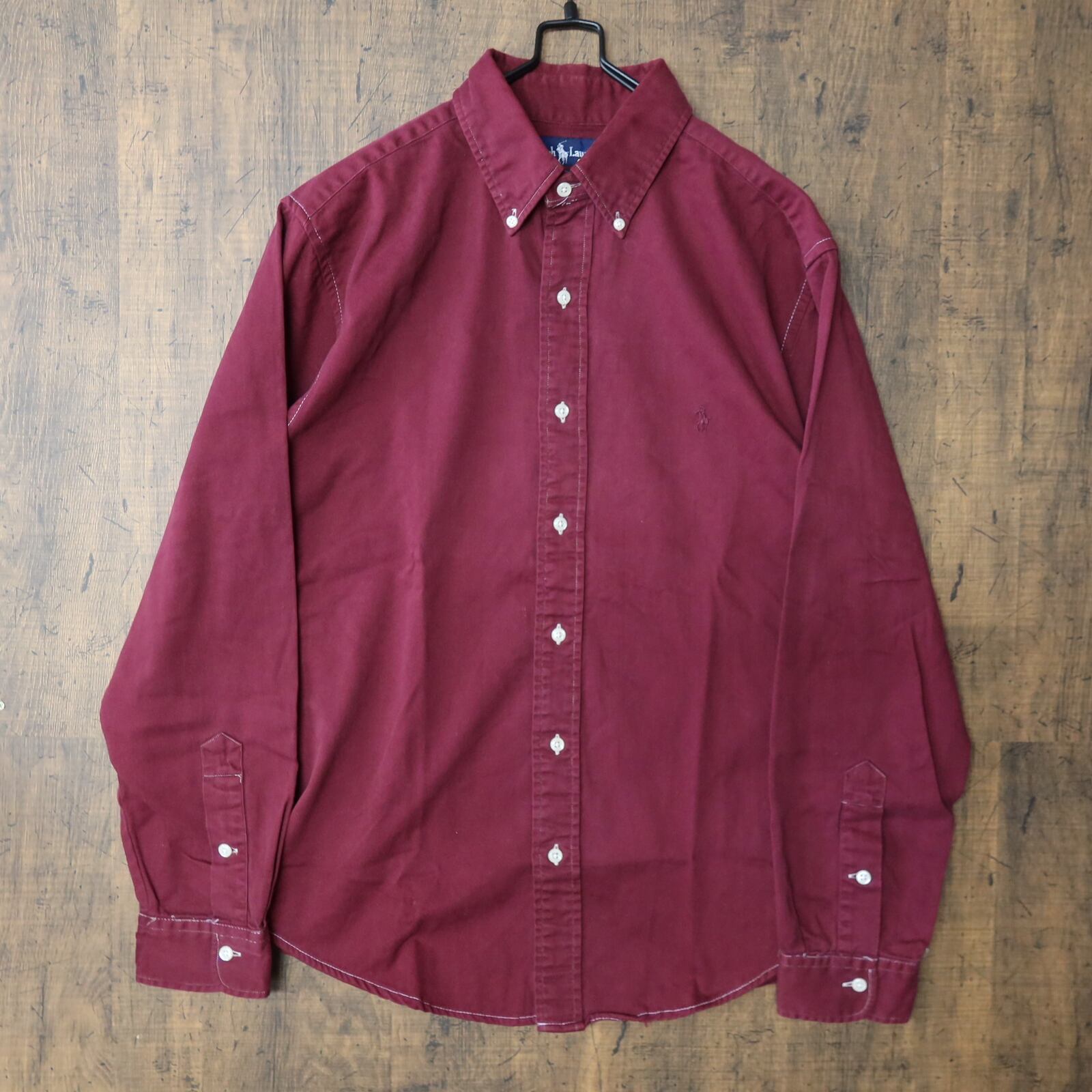 90s Vintage US古着☆Ralph Lauren ラルフローレン 長袖 シャツ 単色 SIZE L エンジ 90's 90年代