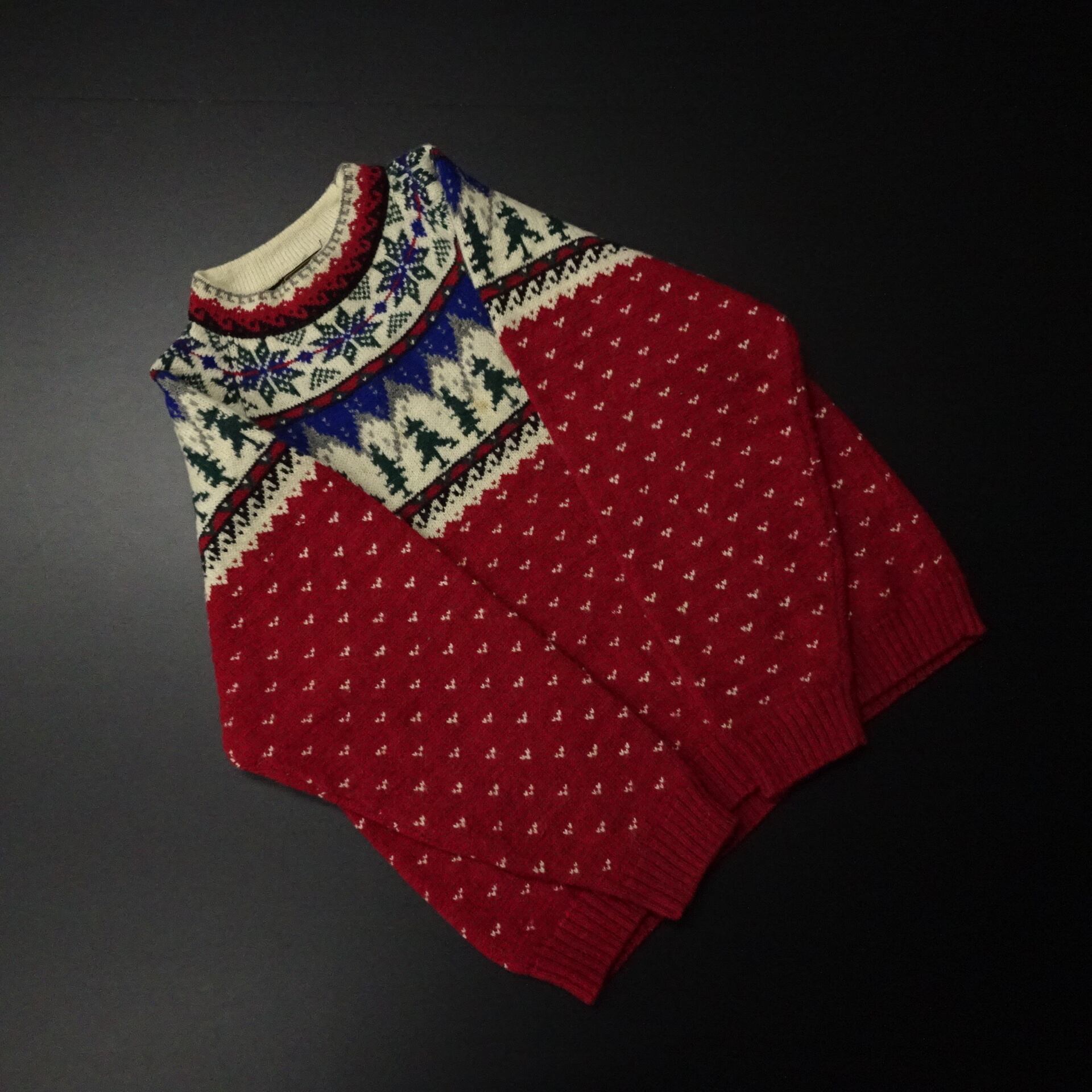 90s 香港製 Eddie Bauer エディーバウアー 長袖セーター 黒タグ 山タグ アウトドア 90年代 レッド