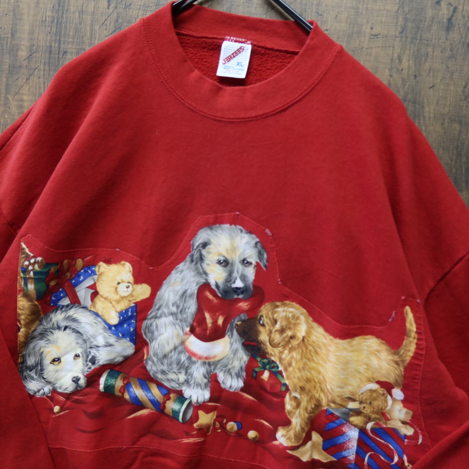 90s US古着☆ジャージーズ LS スウェット 激かわ 犬 SIZE XL