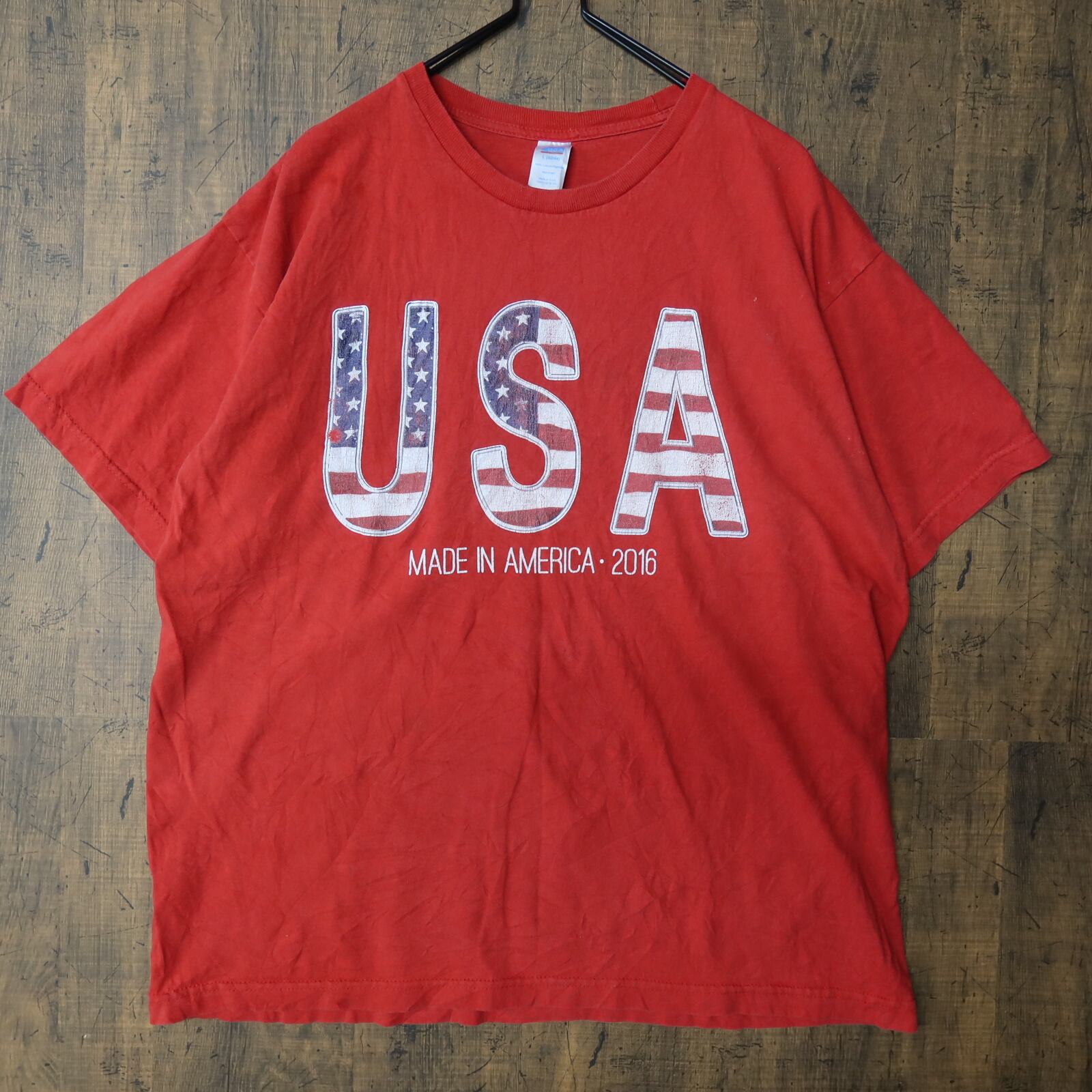 US古着☆USA アメリカ 半袖 プリント T シャツ USA製 SIZE L レッド ロゴ 星条旗