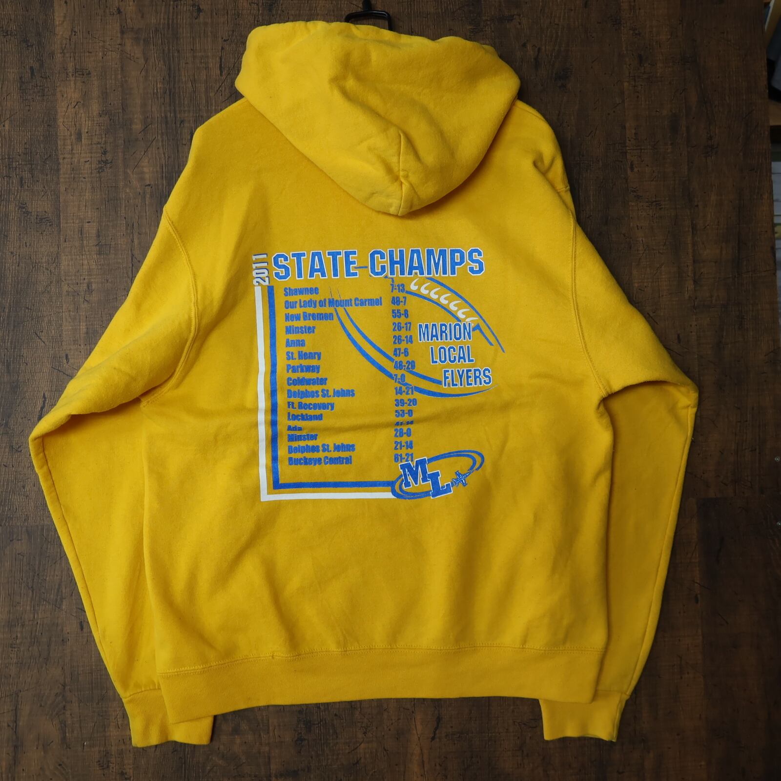 US古着 グッドデザイン☆MARION LOCAL FLYERS マリオン ローカル フライヤーズ 2011 チャンピオン SIZE M イエロー
