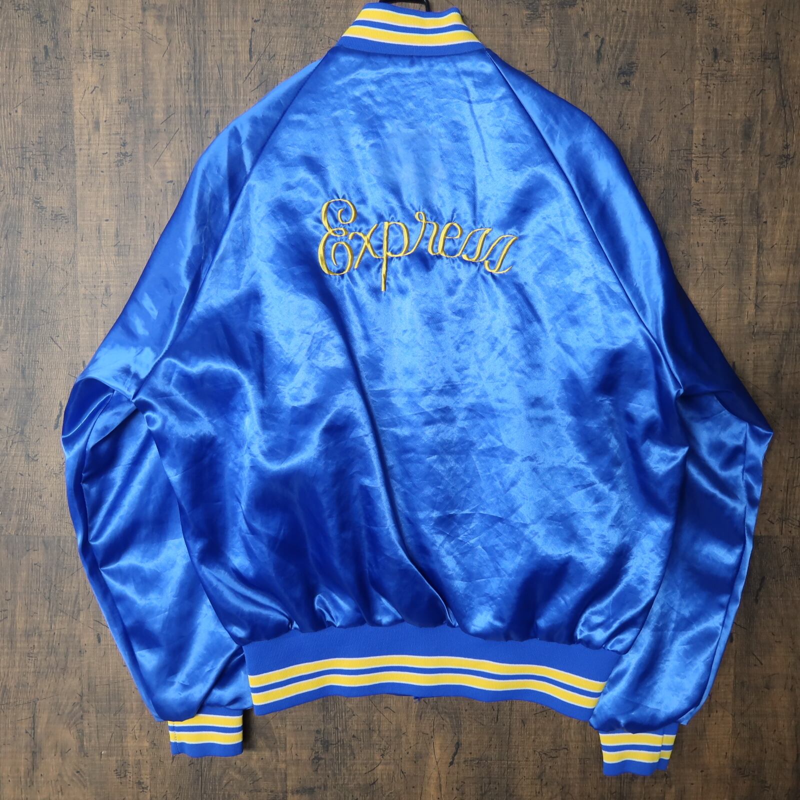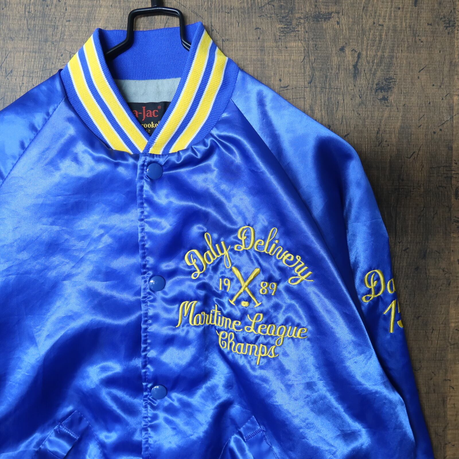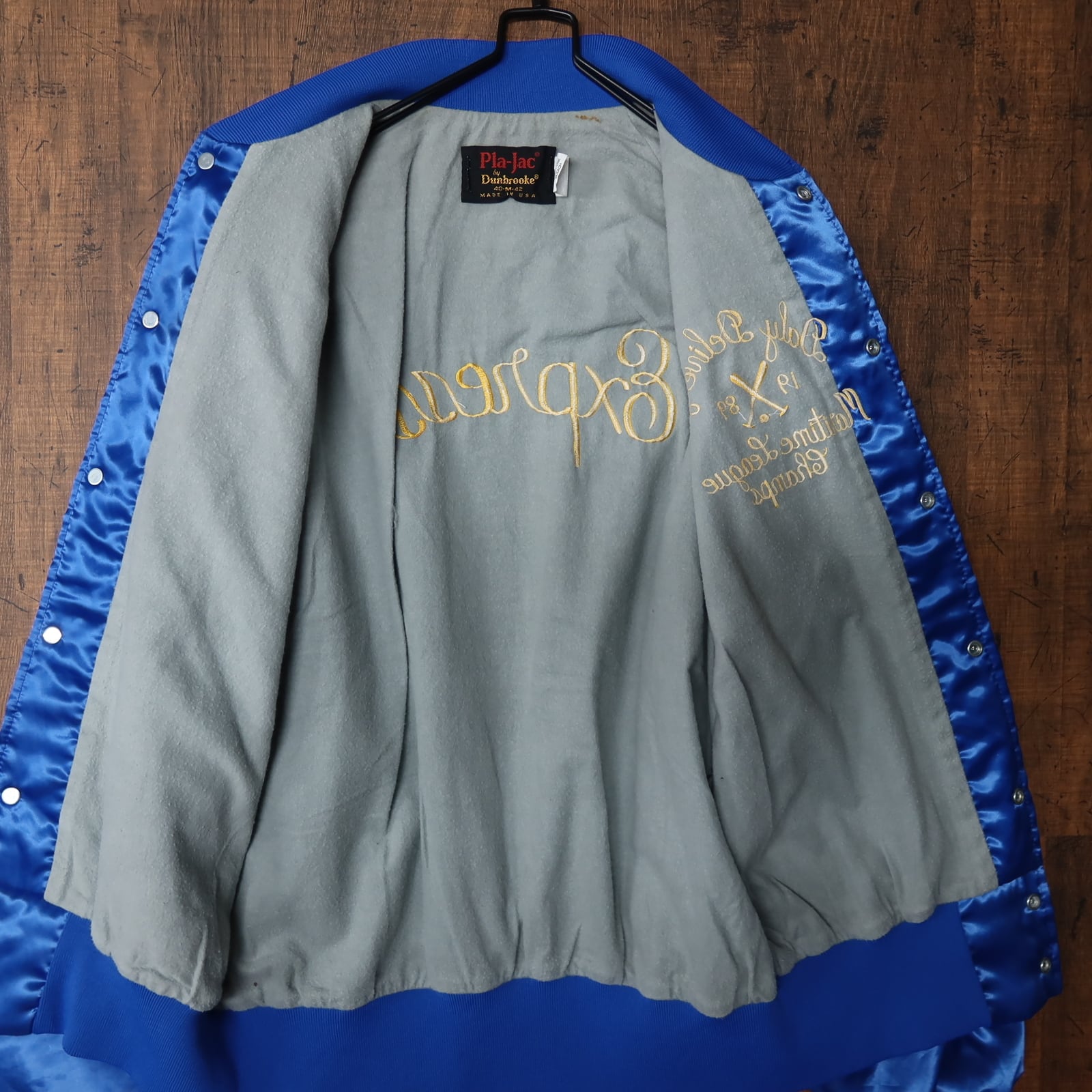 80s Vintage US古着☆Pla-Jac スタジャン Dunbrooke 刺繍 USA製 SIZE M ブルー 80's 80年代 グッドデザイン