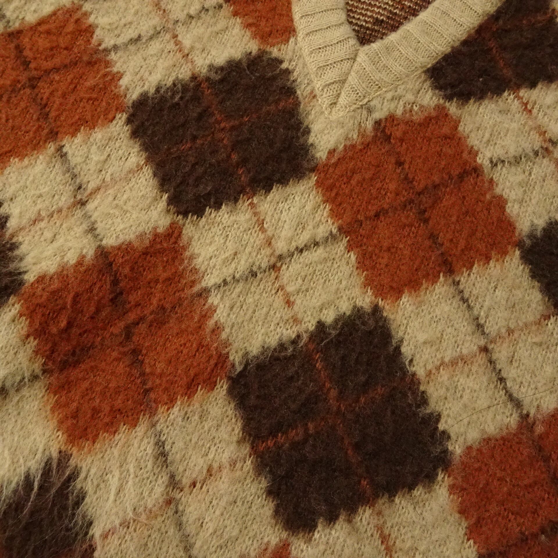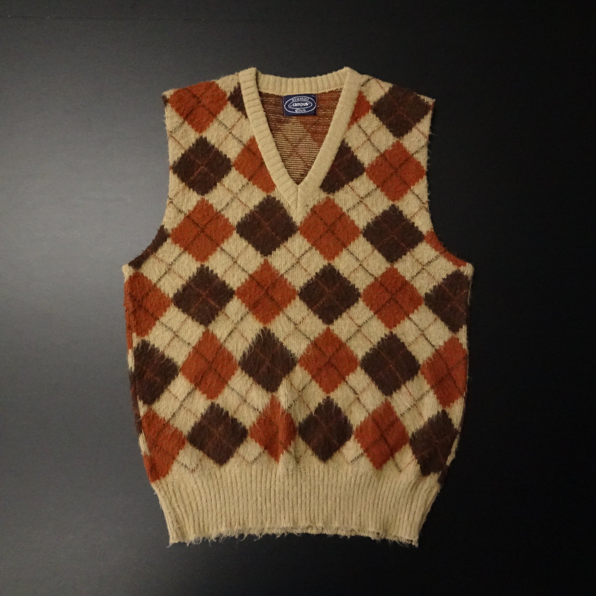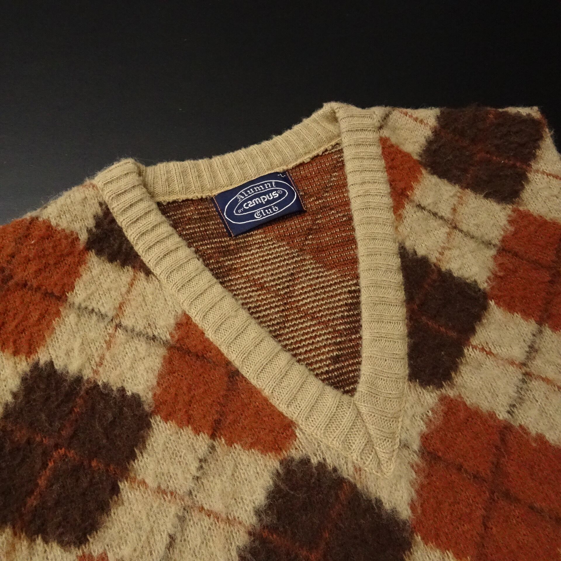 80s- USA製 Campus キャンパス ニットベスト モヘア調 アーガイル 根タグ 80年代~ ブラウン