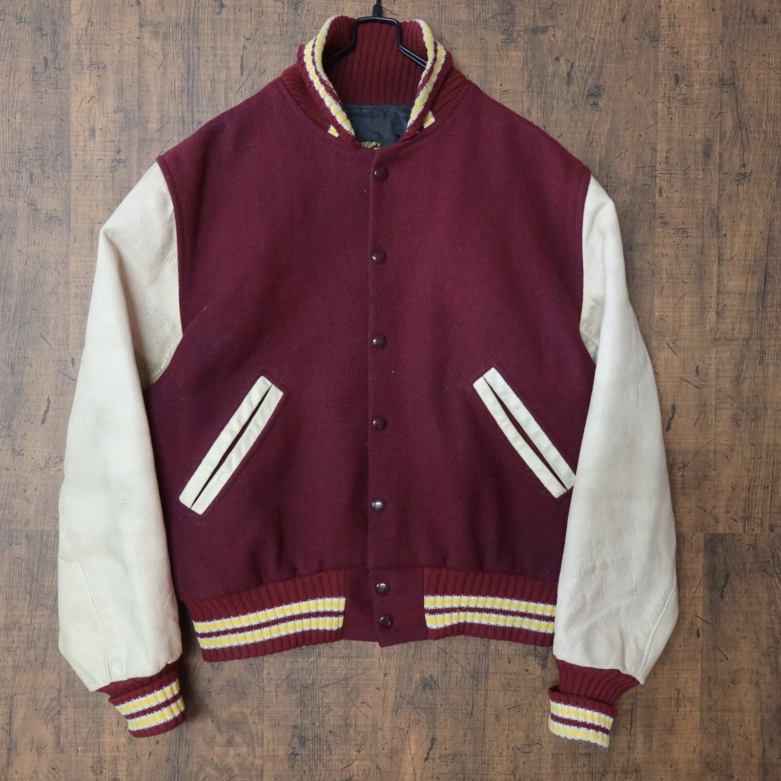 Vintage US古着☆Allion アリオン AWARD JACKET アワードジャケット 袖レザー USA製 SIZE 38 エンジ