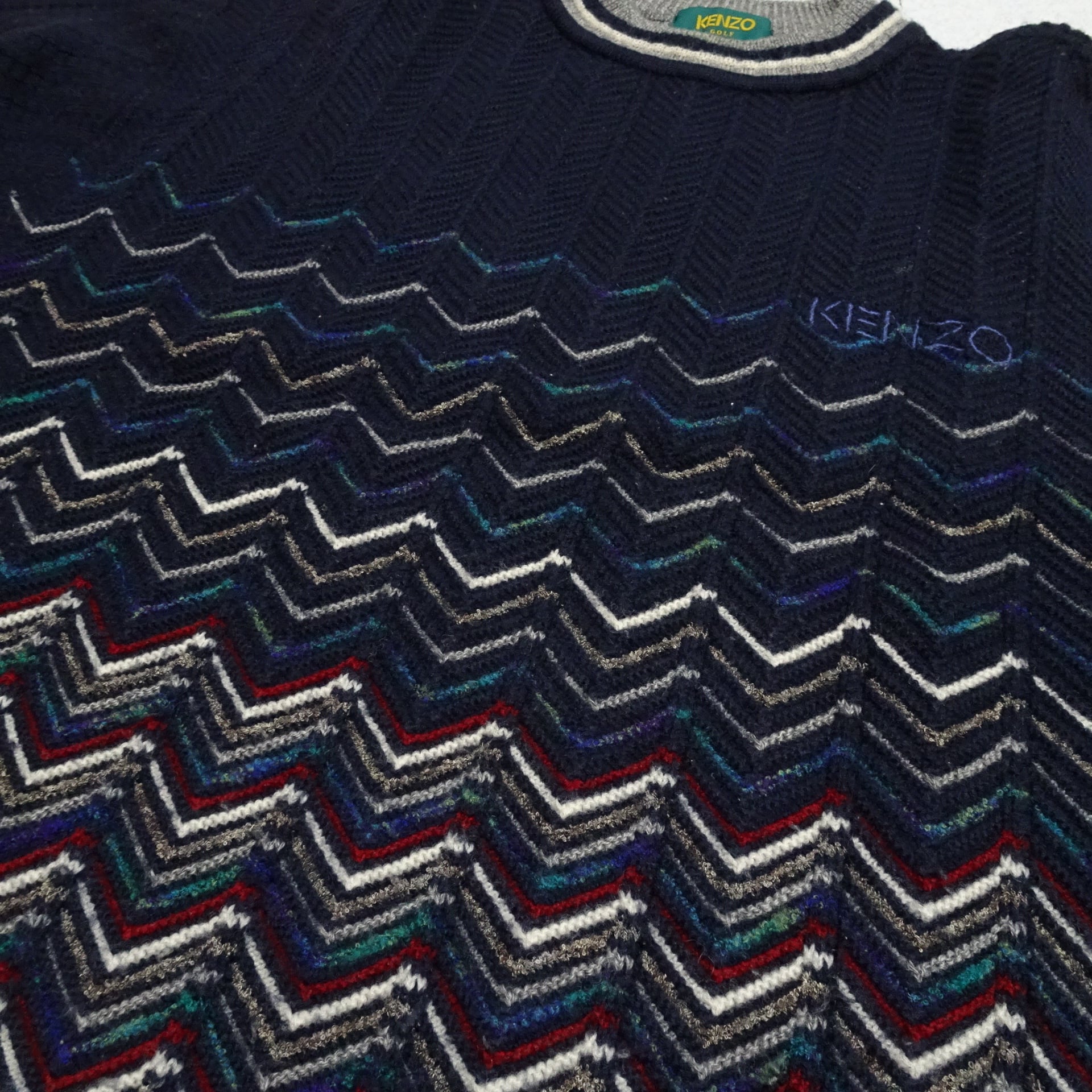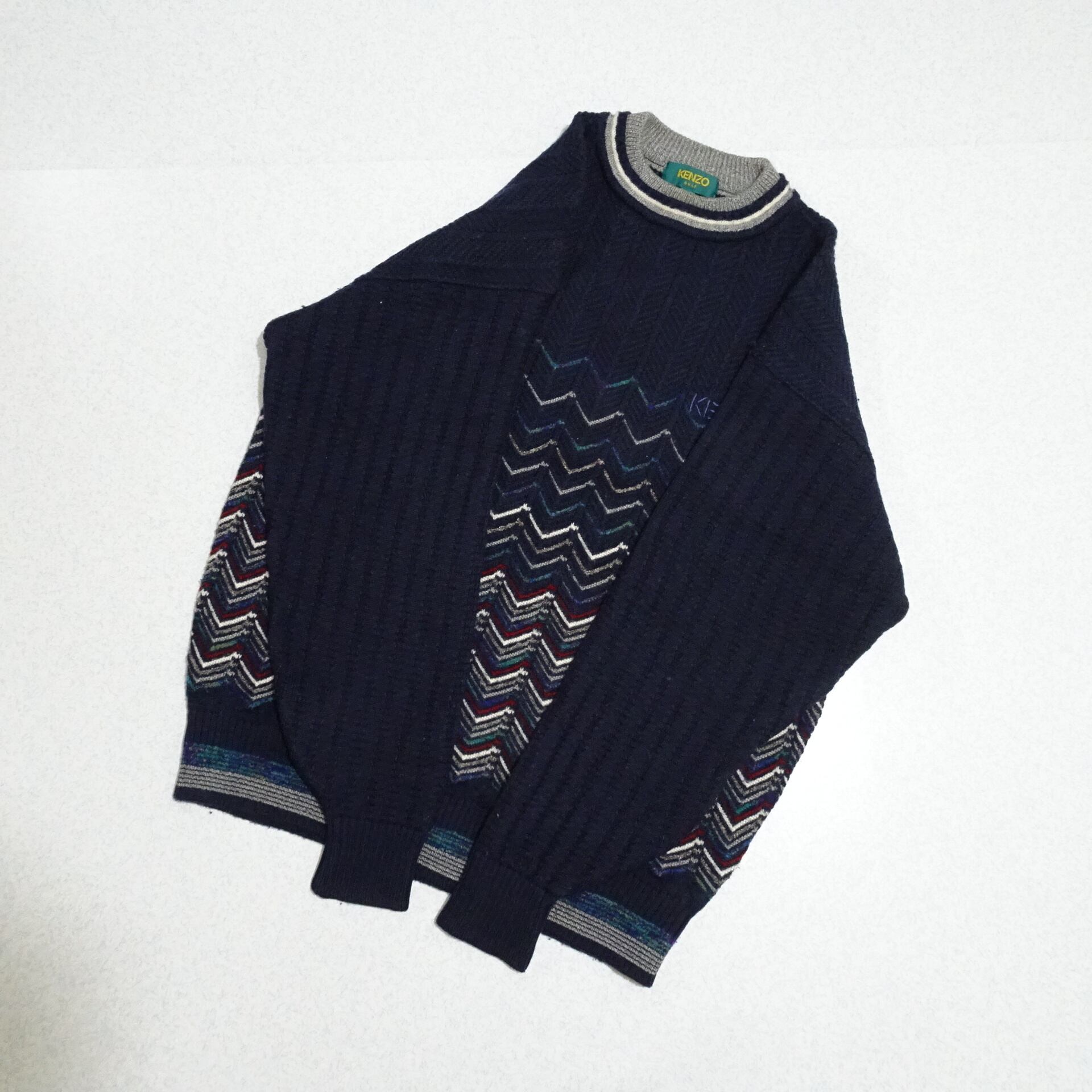 90s 日本製 KENZO ケンゾー 長袖セーター GOLF ゴルフ オールド 希少デザイン 90年代 ネイビー