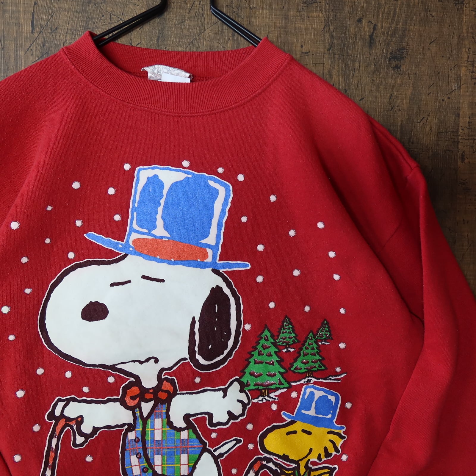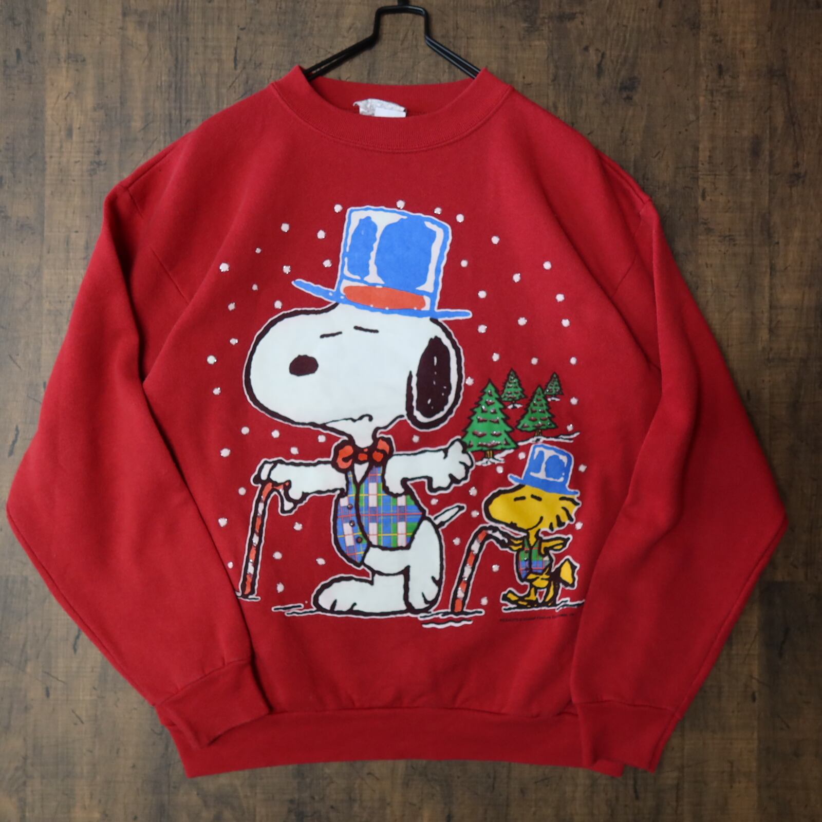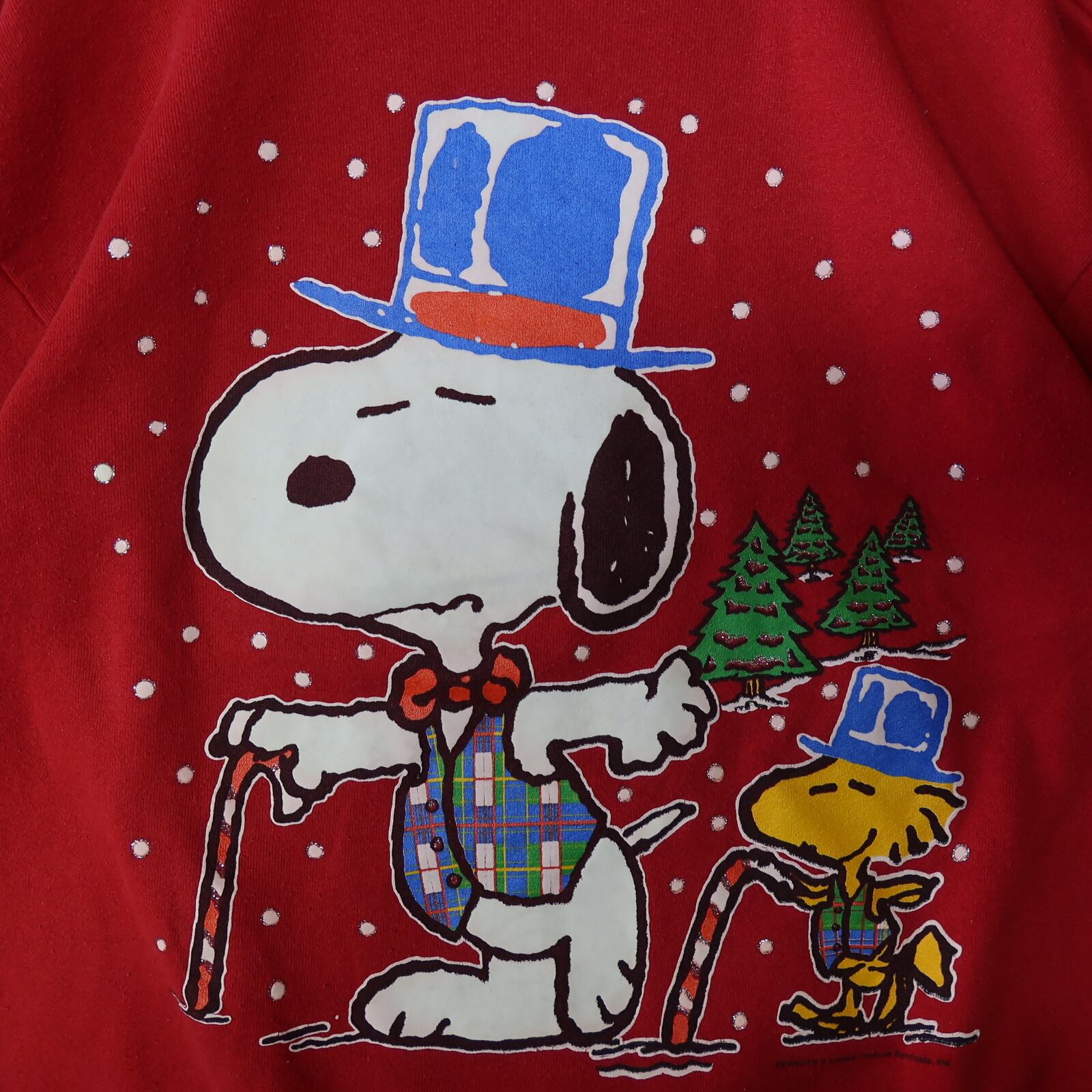 90s Vintage US古着☆PEANUTS ピーナッツ 長袖スウェット スヌーピー スノー USA製 SIZE L レッド 90's 90年代 希少デザイン