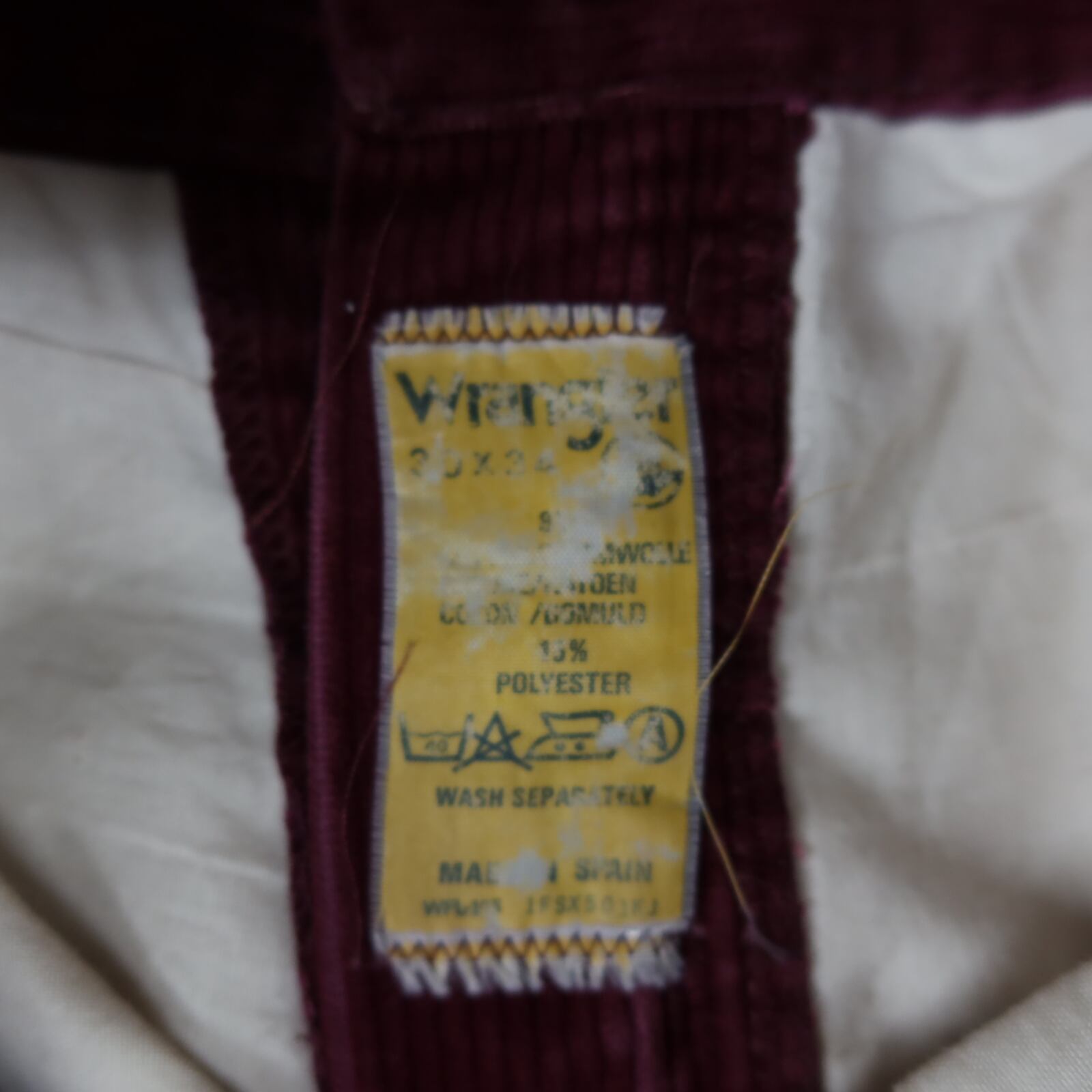 80s~ Vintage US古着☆Wrangler ラングラー コーデュロイパンツ 太畝 スペイン製 AREITIOジップ SIZE W30 ワインレッド 80's 80年代 希少アイテム